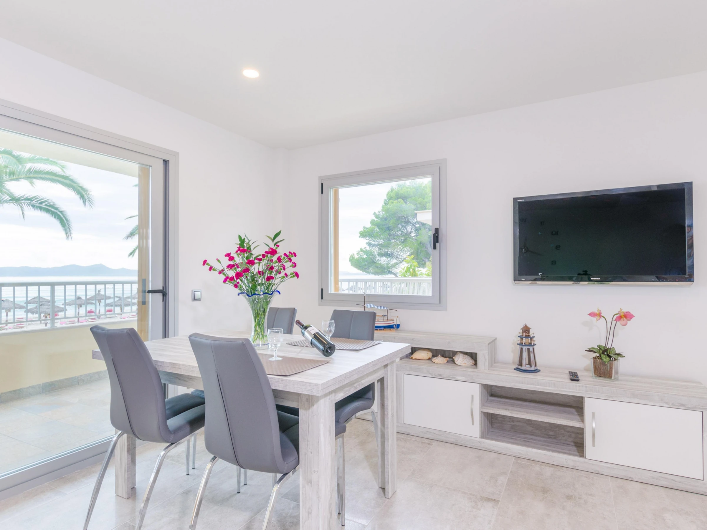 Luxurious apartment on the seafront of the beach of Puerto de Alcudia that can accommodate up to 6 guests.