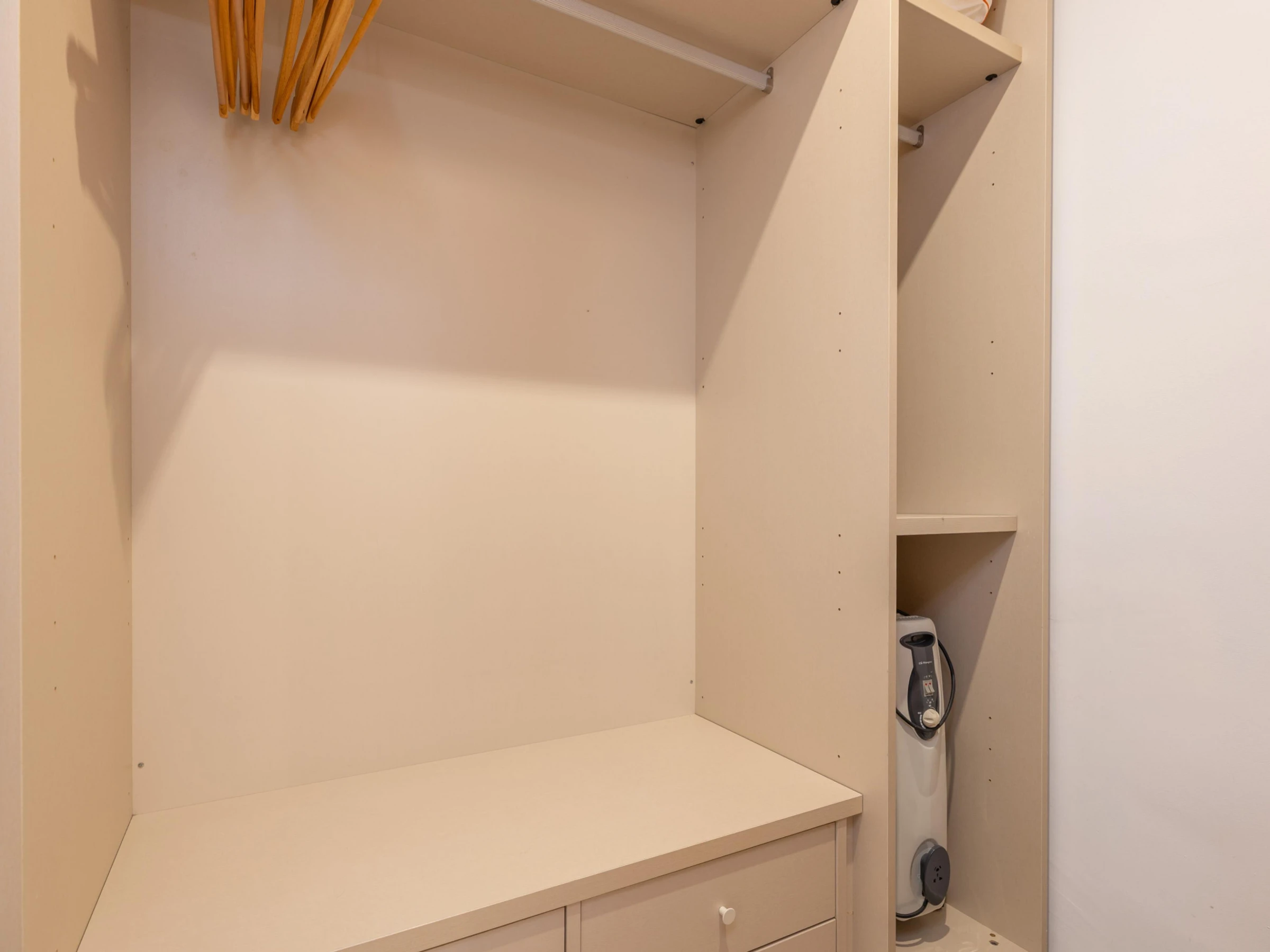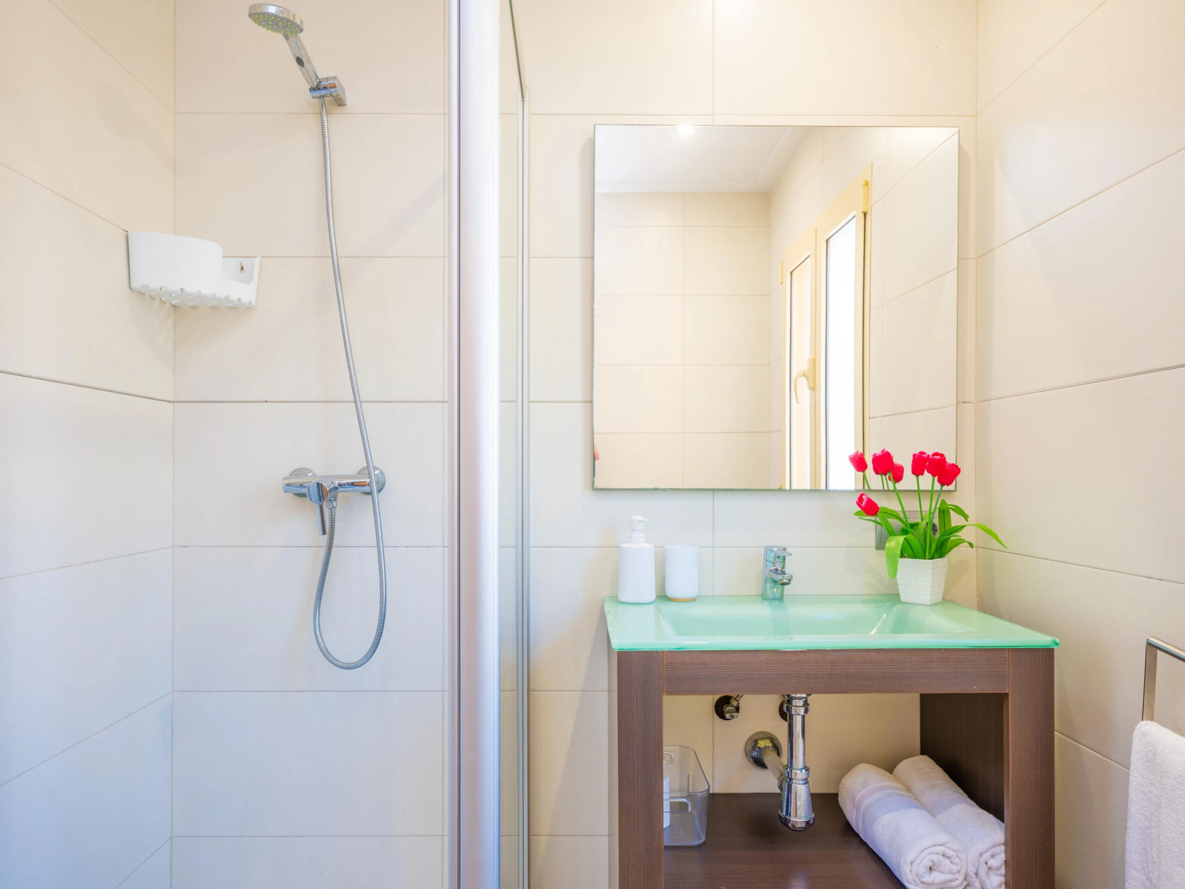 The exterior of the apartment is defined by its beautiful private terrace — a perfect spot to unwind, read, or enjoy meals while taking in the endless blue of the horizon. With its privileged seaside position, it offers uninterrupted views of the Mediterranean and a soothing atmosphere, ideal for anyone wishing to disconnect and reconnect with nature.