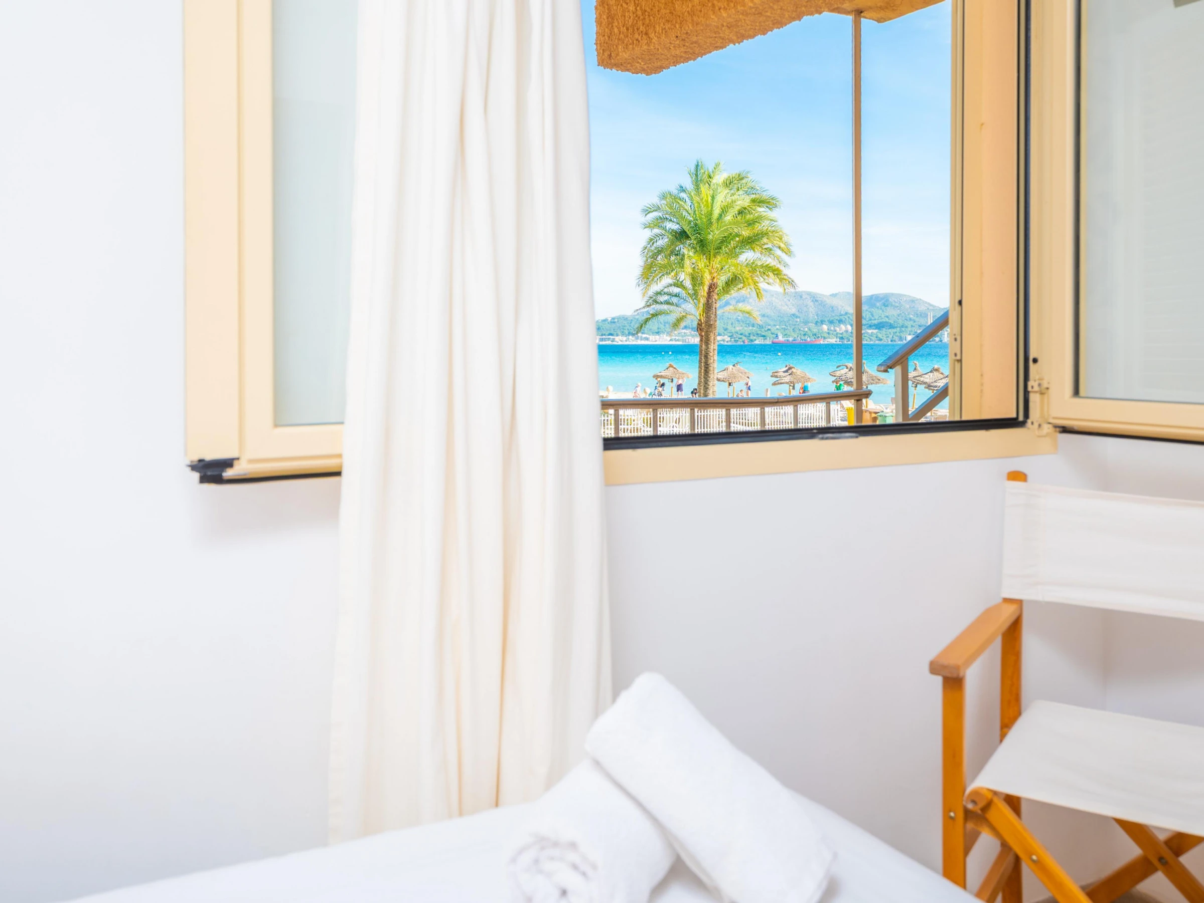 Overlooking the sea and with direct access to the beach, this bright seafront apartment on Platja d’Alcúdia offers an exceptional Mediterranean experience. Situated on the first floor of a building without a lift, it can accommodate up to four guests – the perfect choice for families or couples seeking to enjoy the tranquillity of Alcúdia Bay and its breathtaking sea views.