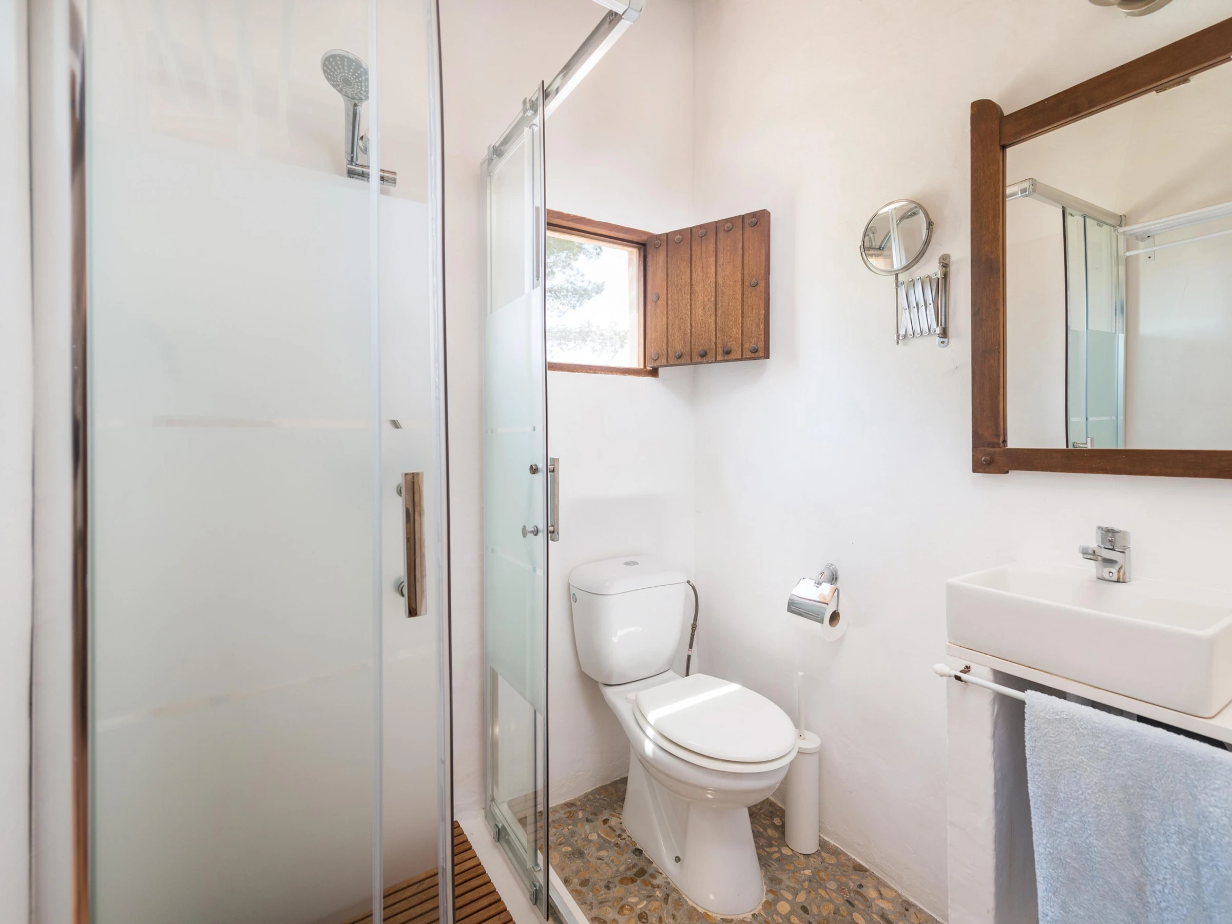 You will know the country life in the island in this magnificent finca. It combines peace and the feeling of well-being and disconnection since it is surrounded by fields full of trees and plants. The varied greenery is all throughout the exterior of the house and every little corner becomes the perfect place to read a book, play with the family little ones or have a walk while breathing in the natural atmosphere. Nevertheless, you surely want to swim in the chlorine pool. It sizes 9 x 4.5 metres and its water depth ranges from 1 to 1.8 metres. It features an exterior shower and up to 6 sun loungers around. After the long swim, you find your place at the great furnished porch and a barbecue available. The plot is fenced and there are some neighbours around.
