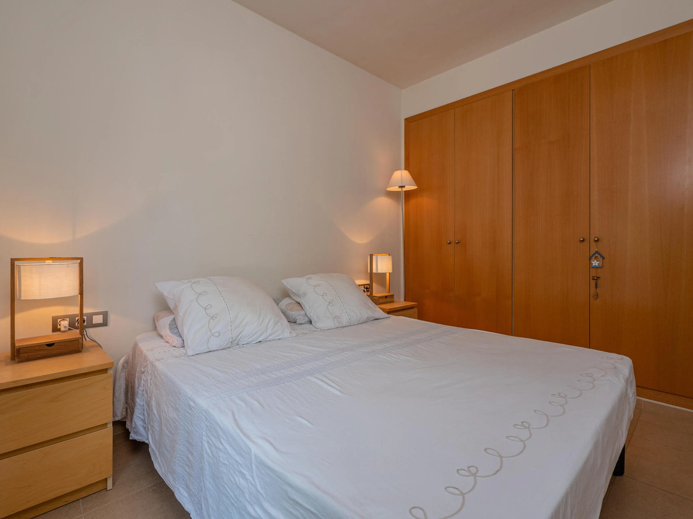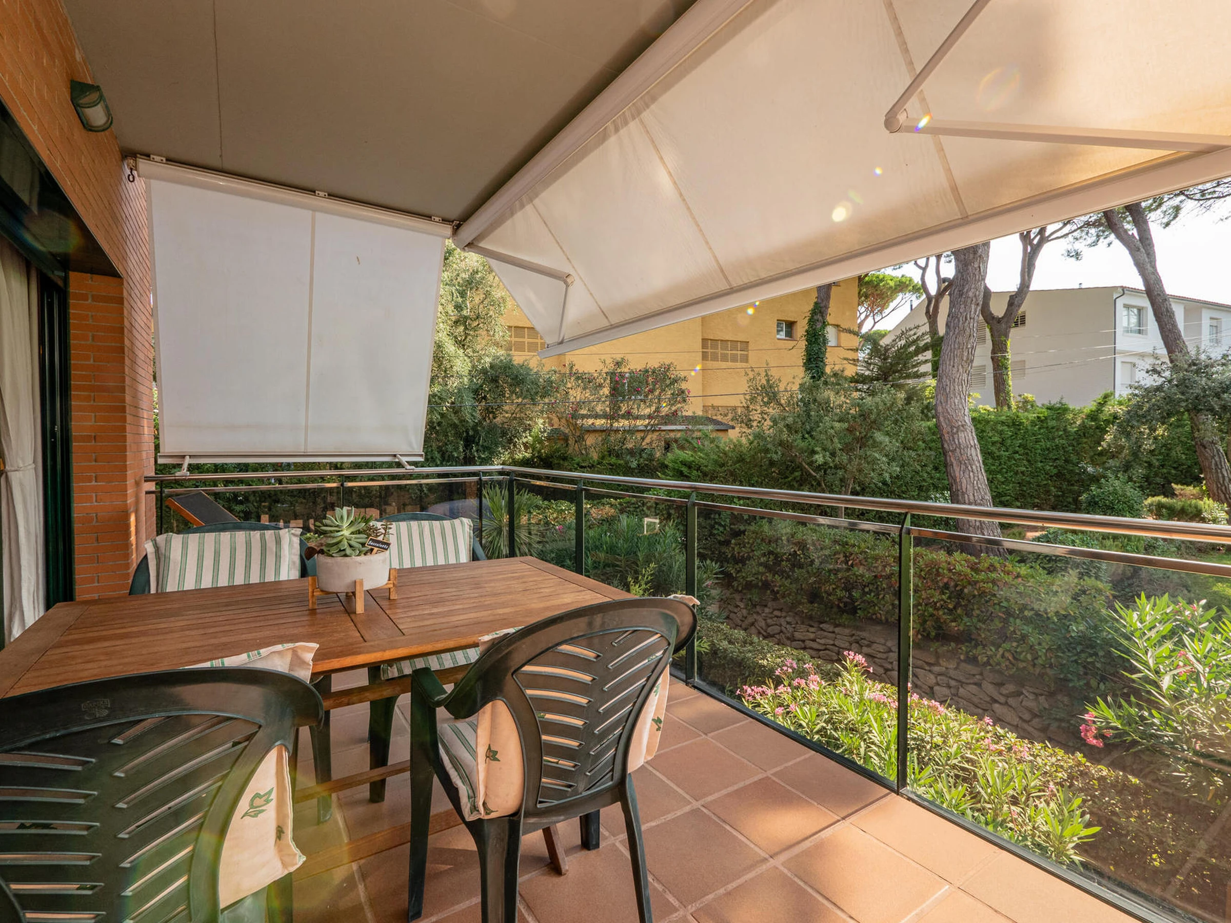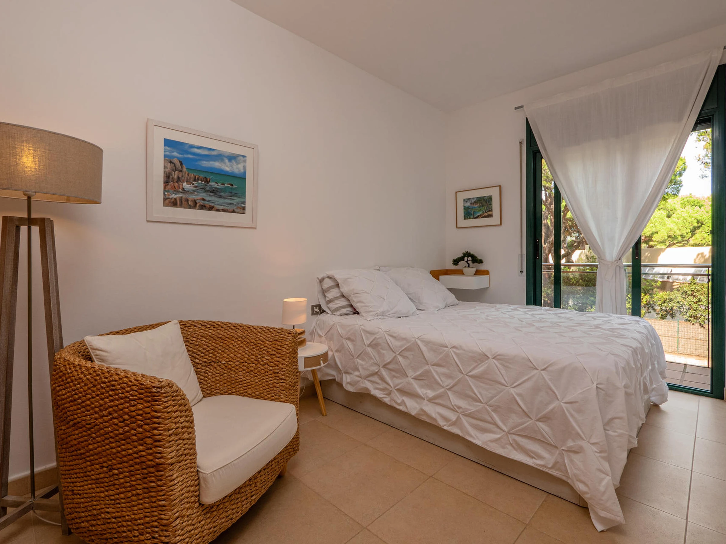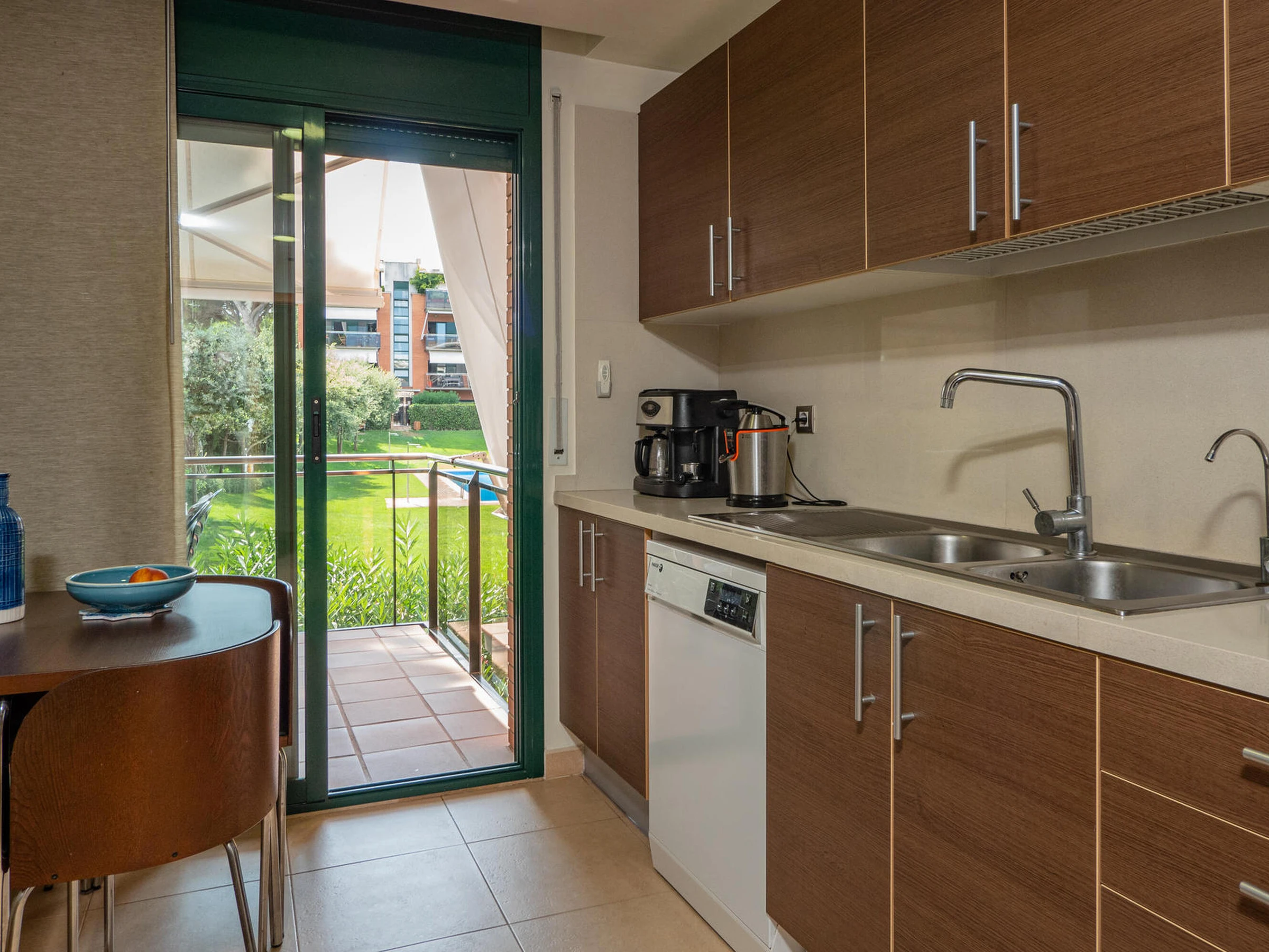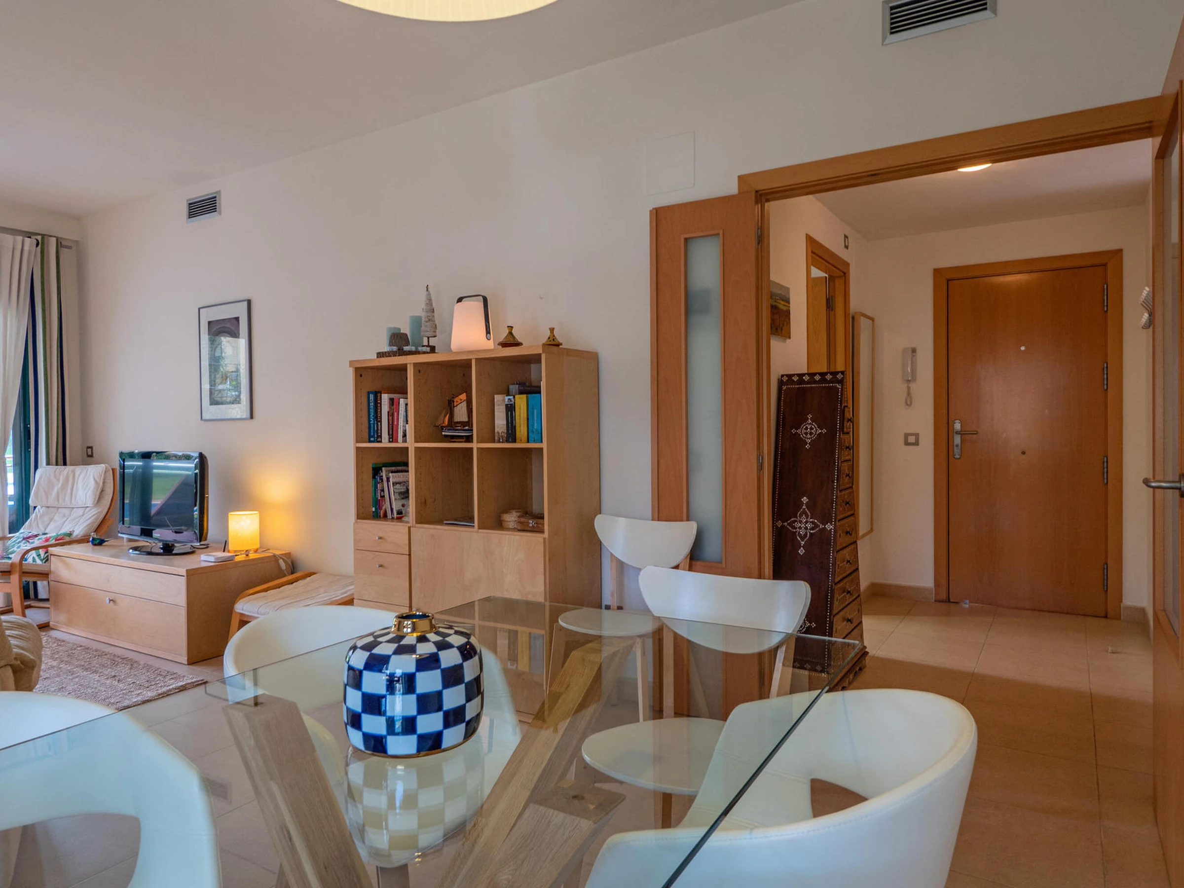 Apartment in perfect condition and with community pool in Pals, Costa Brava. 1km from Pals beach. Capacity for 5 people, 3 rooms Ideal for families, very quiet community. Located in front of the Pals golf course, it has 3 bedrooms, one suite with a double bed and a bathroom with a shower, a double room with double bed and a third room with a trundle bed, both share a bathroom with a shower. Dining room to a large terrace overlooking the pool, fully equipped kitchen also with access to the terrace. The apartment is tastefully decorated and is in perfect condition. It has wifi, elevator and garage for one car in the community. Television service not guaranteed due to poor coverage in the area. For any questions regarding this property, please do not hesitate to contact us.