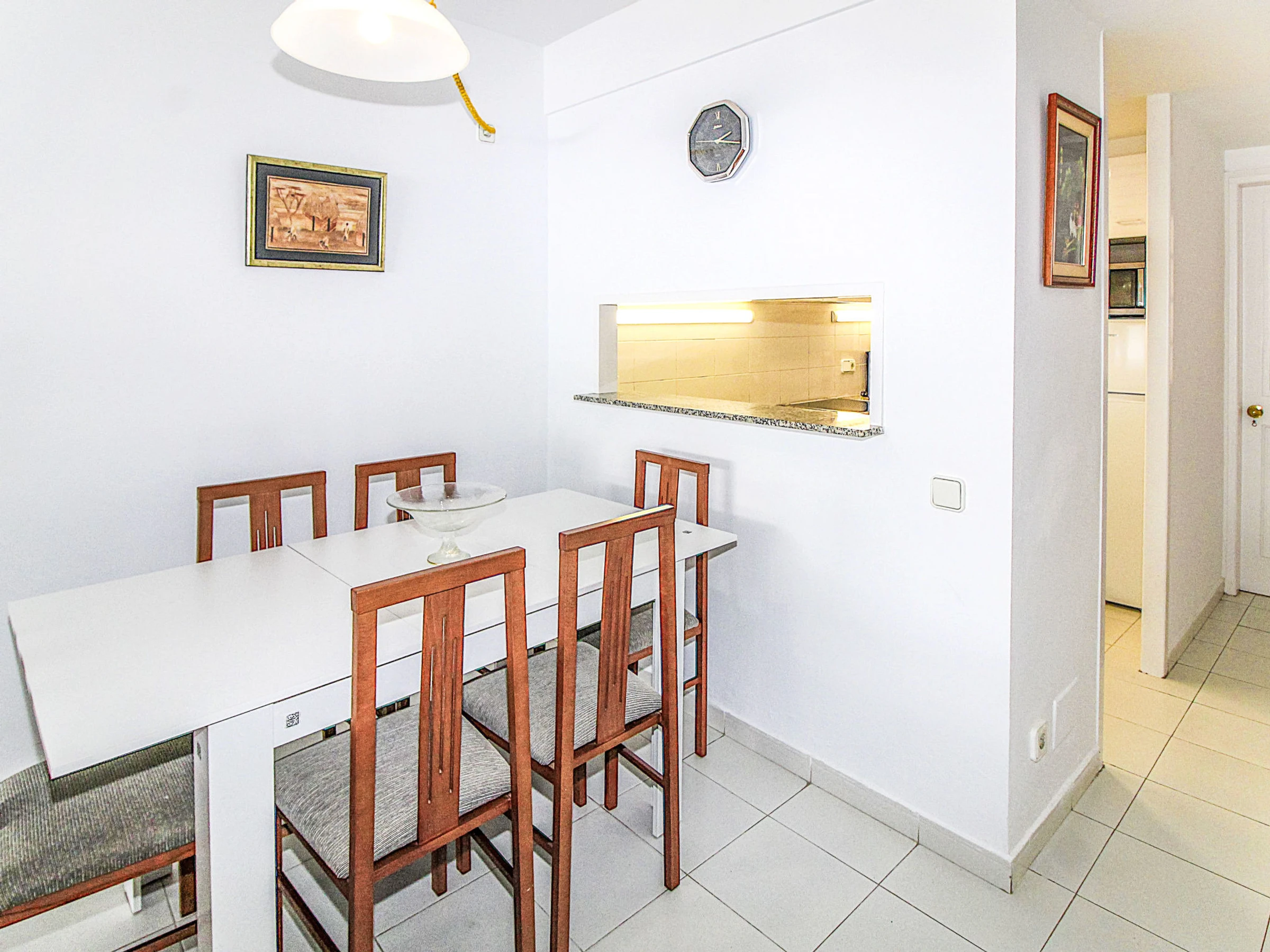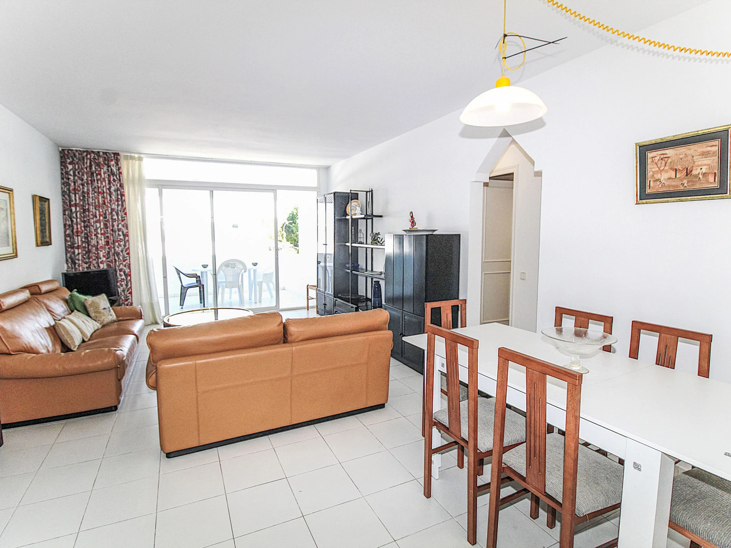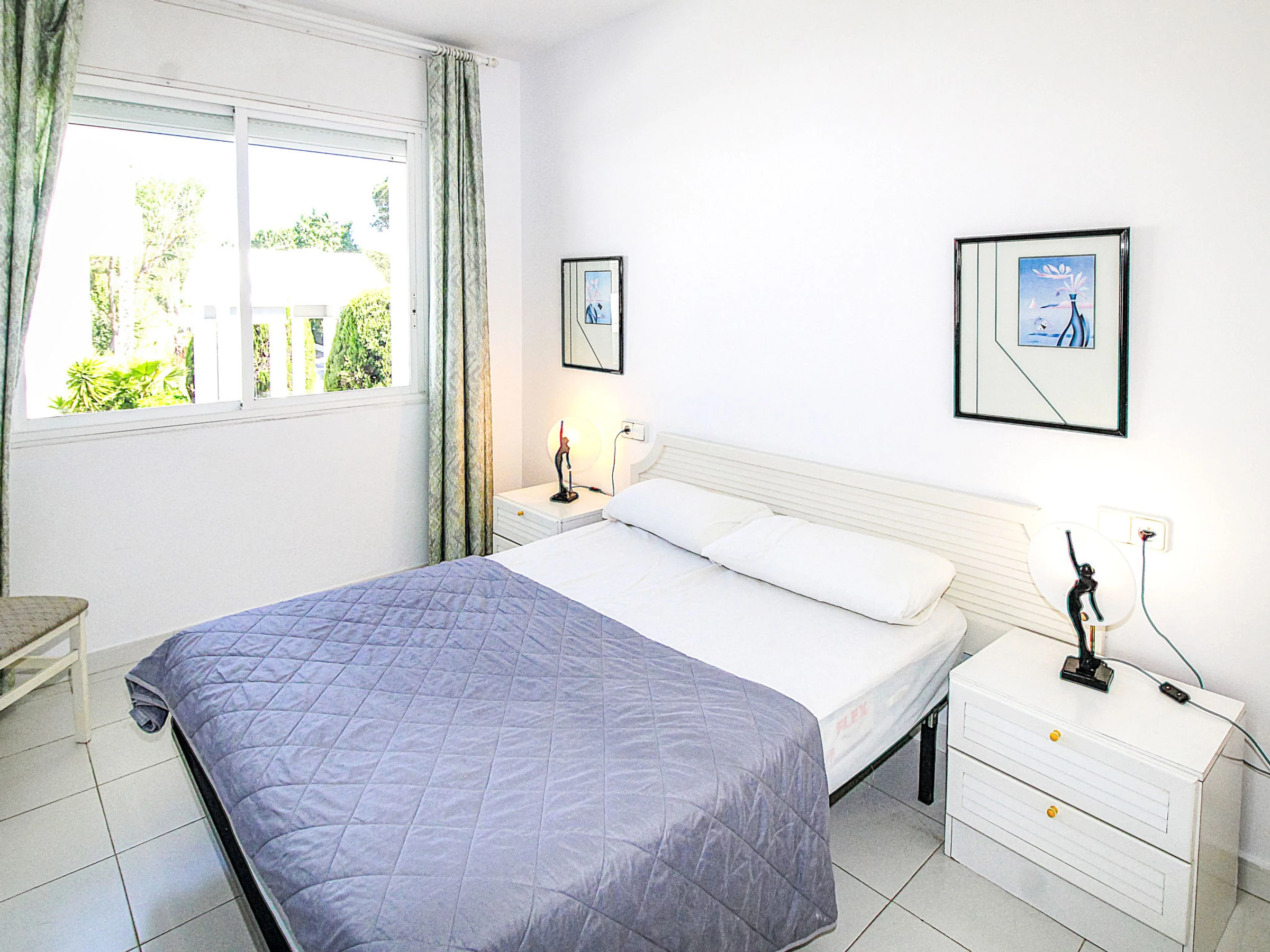 3-room apartment 70 m2. Practical and comfortable furnishings: living/dining room with digital TV. Exit to the terrace. 1 room with 1 french bed (150 cm, length 190 cm), shower/WC. 1 room with 2 beds (90 cm, length 190 cm). Kitchen (oven, dishwasher, toaster, microwave, electric coffee machine). Bath/WC. No heating option. Small terrace. Terrace furniture. Facilities: washing machine. Parking. Please note: maximum 1 small pet/ dog allowed. TV only ES. [hidden]