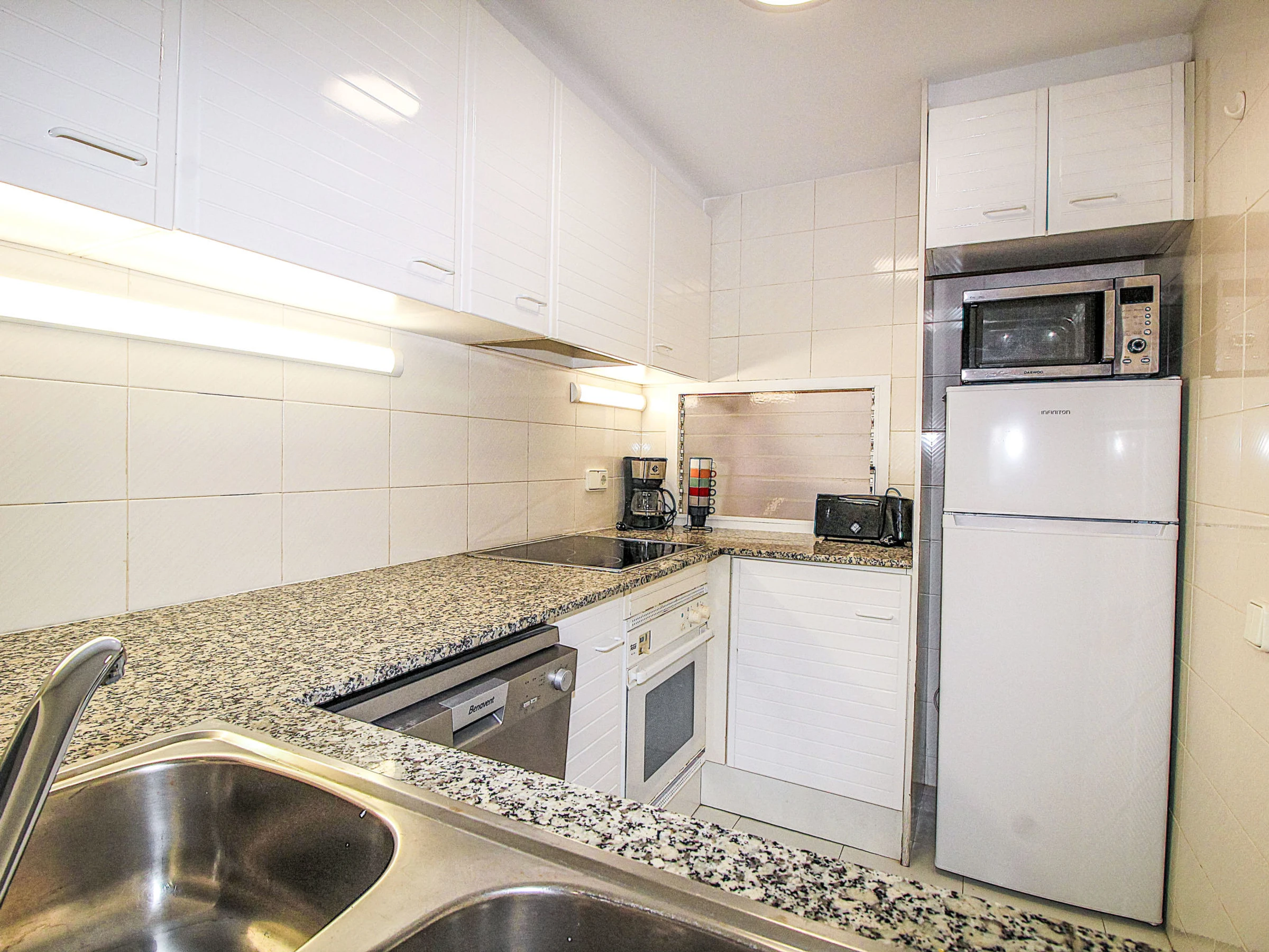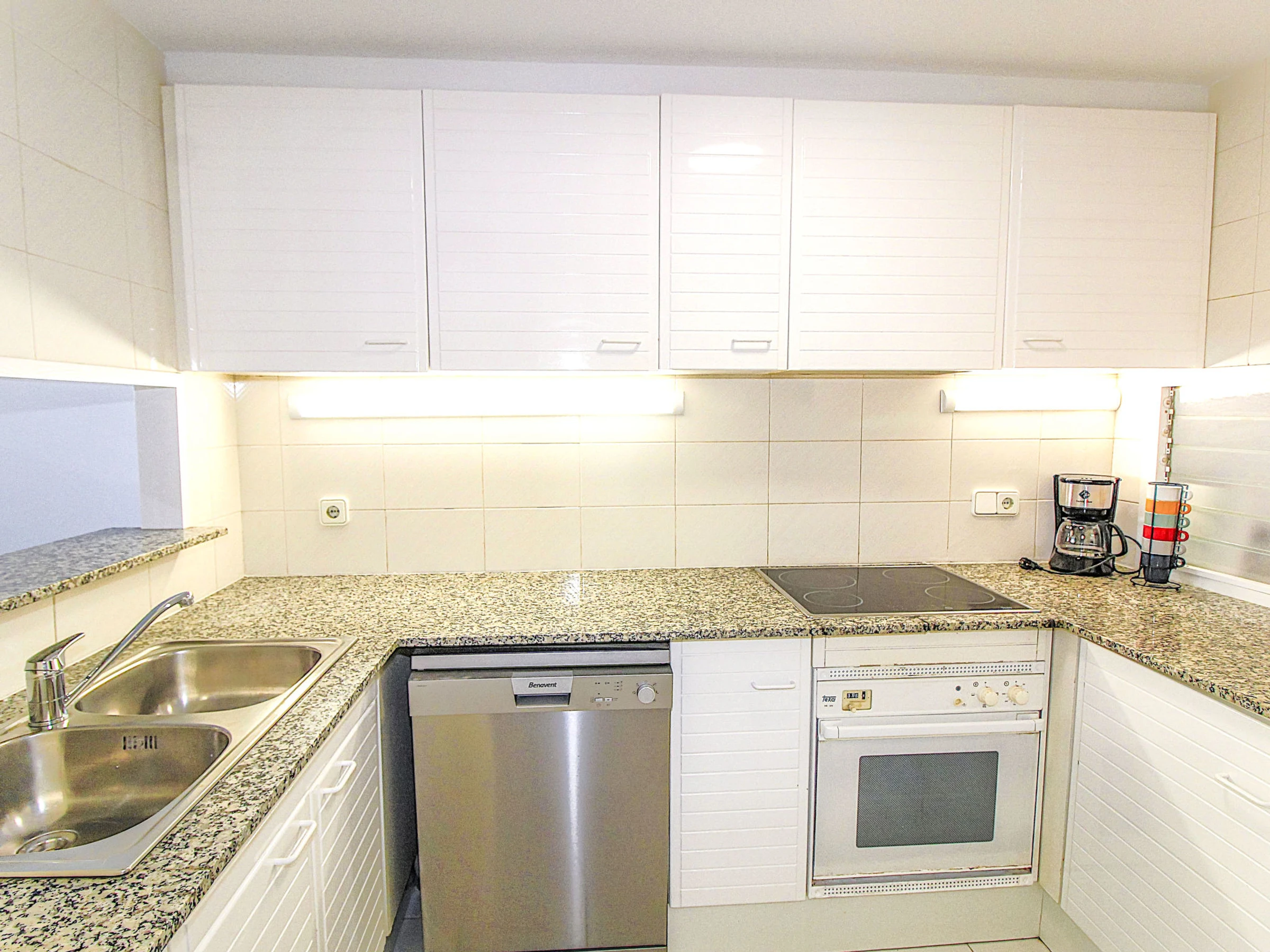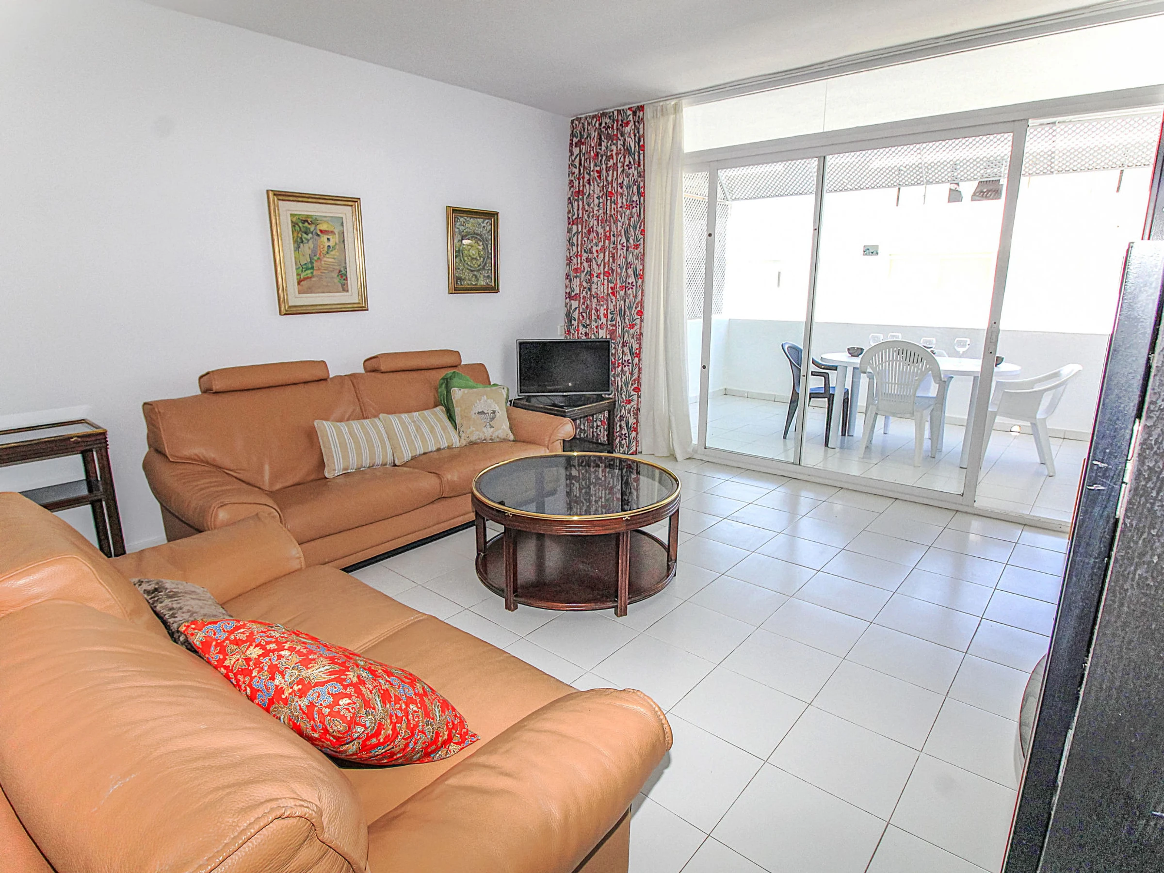 3-room apartment 70 m2. Practical and comfortable furnishings: living/dining room with digital TV. Exit to the terrace. 1 room with 1 french bed (150 cm, length 190 cm), shower/WC. 1 room with 2 beds (90 cm, length 190 cm). Kitchen (oven, dishwasher, toaster, microwave, electric coffee machine). Bath/WC. No heating option. Small terrace. Terrace furniture. Facilities: washing machine. Parking. Please note: maximum 1 small pet/ dog allowed. TV only ES. [hidden]