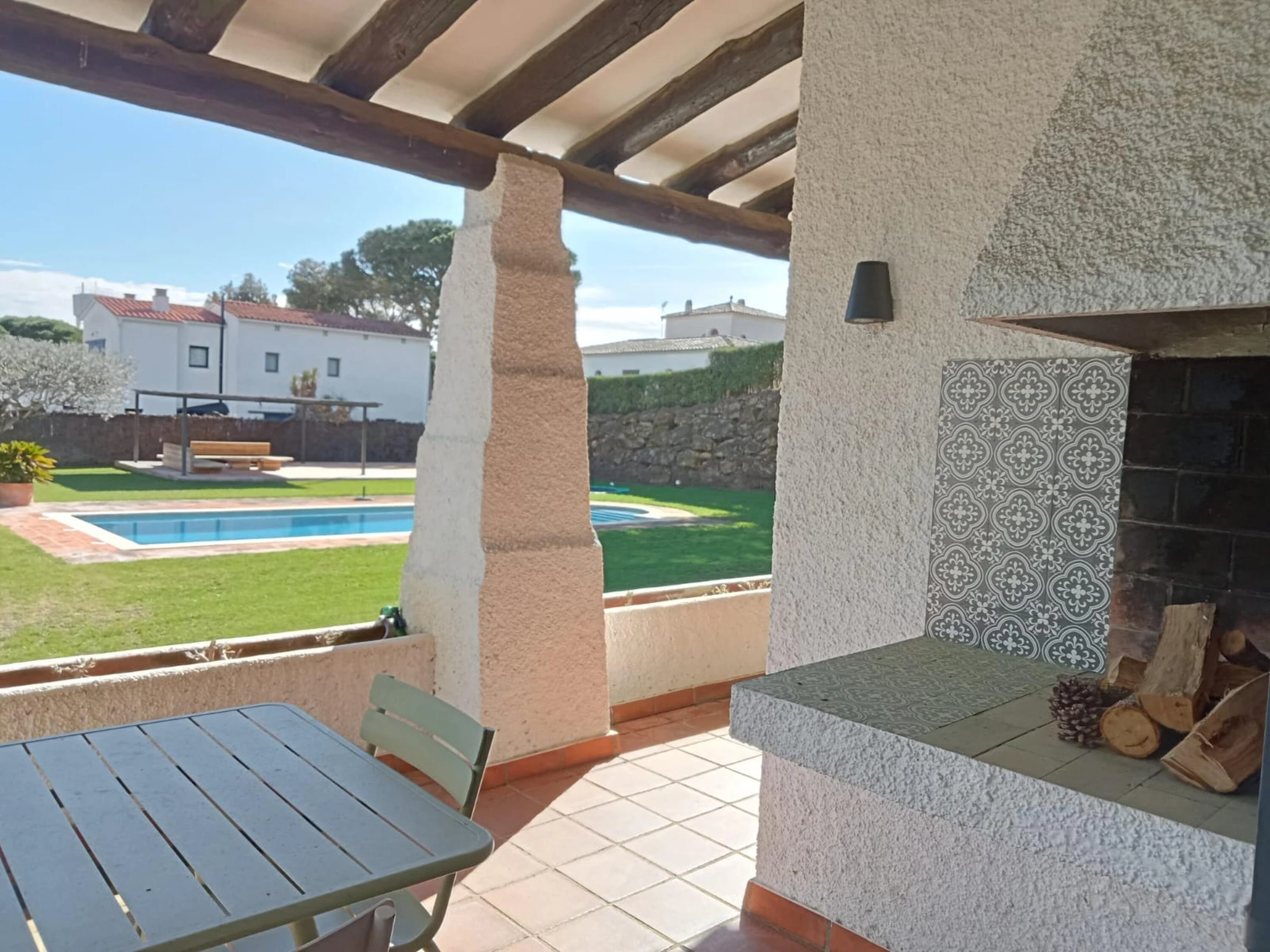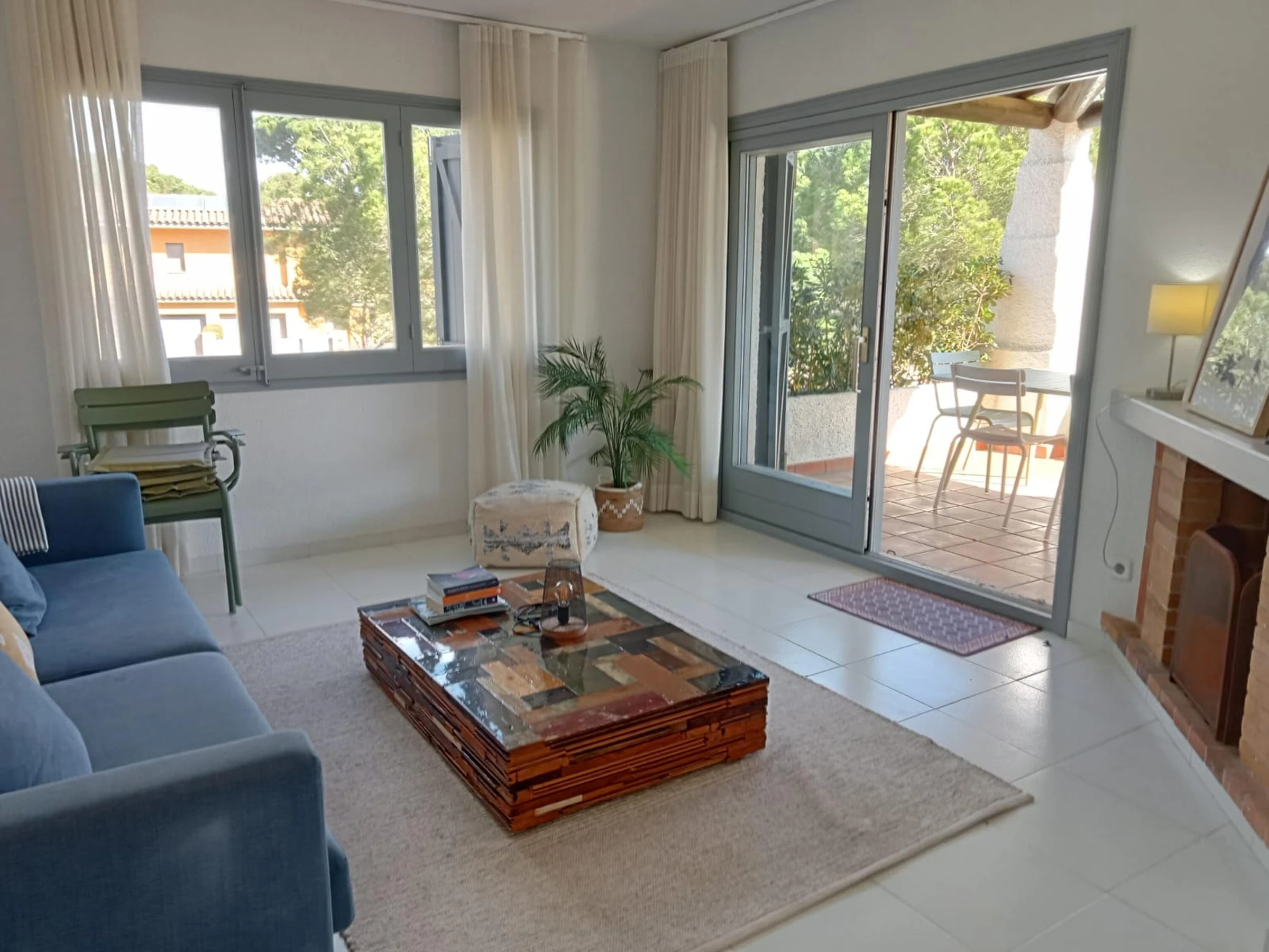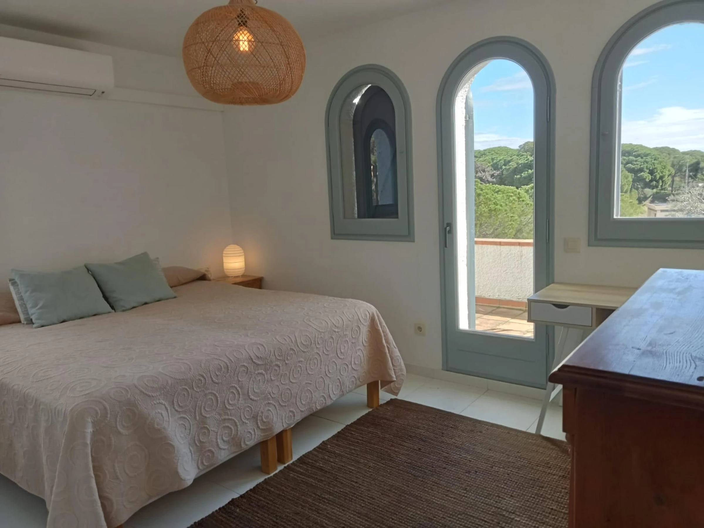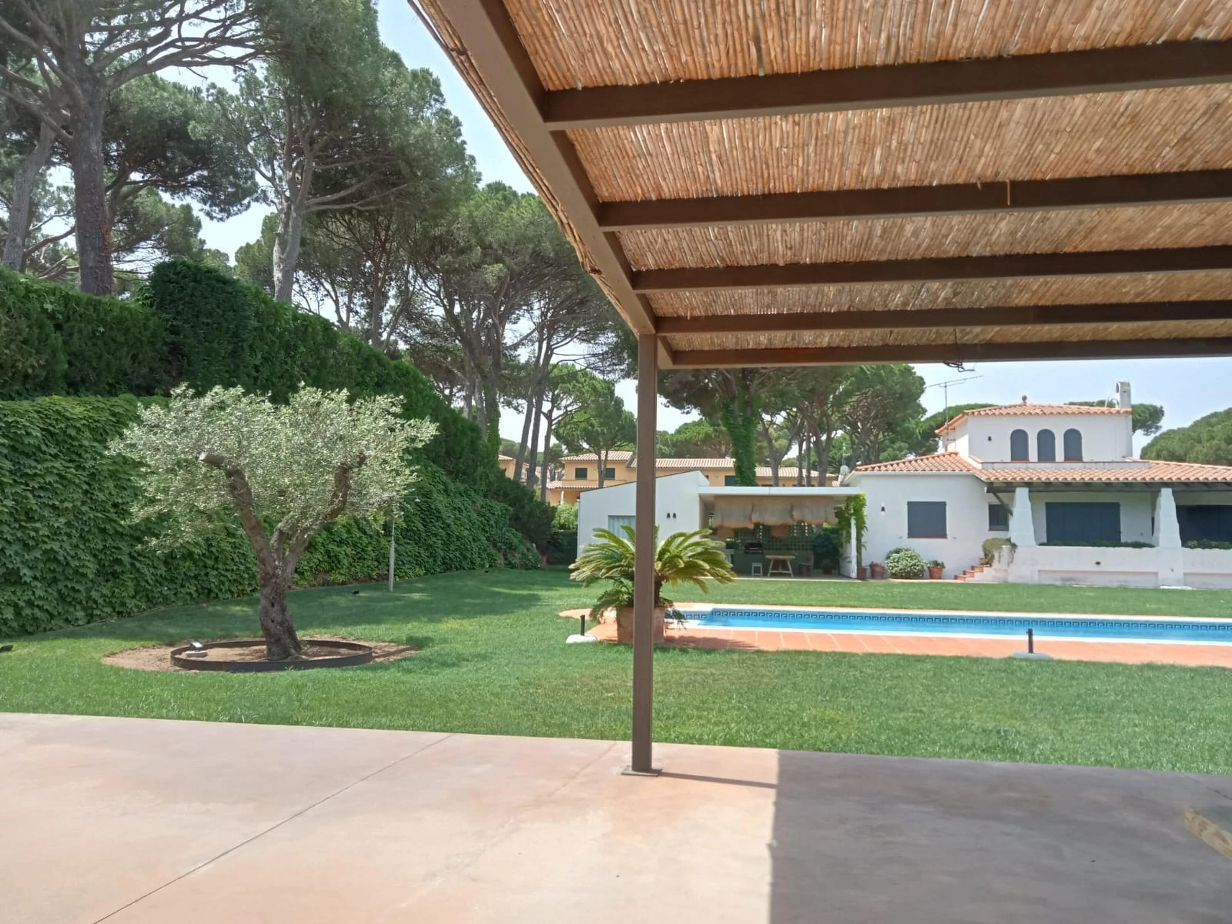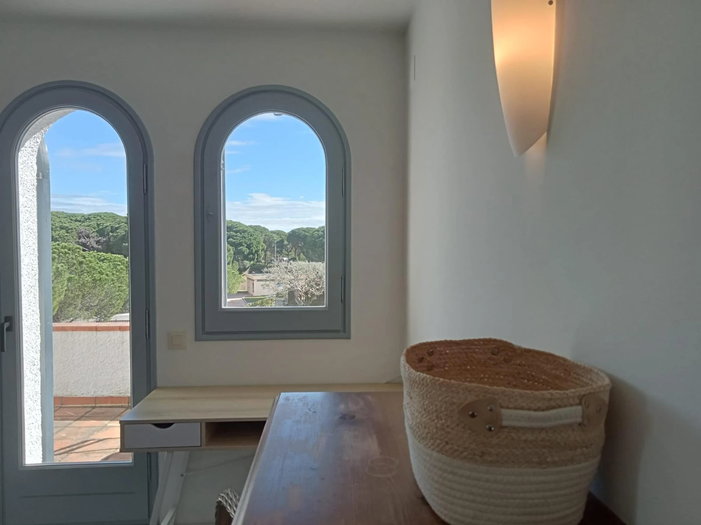 DISTRIBUTION: Ground floor: Entrance, dining-living room with exit to the garden, terrace and swimming pool. Porch with BBQ. Open kitchen full equipped, 2 double bedrooms with single beds, 1 Bathroom. First floor: 1 master bedroom with double bed and complete bathroom, terrace. COMMENTS: Private house with enormous garden and pool, situated about 500m from the entrance of Golf Club Platja de Pals and 1.5 km from the beach. Garage. A/C. (Capacity: 6 people) "Due to the restrictions of the Generalitat due to the very serious drought situation, access to the pools may be subject to restrictions and is not guaranteed".