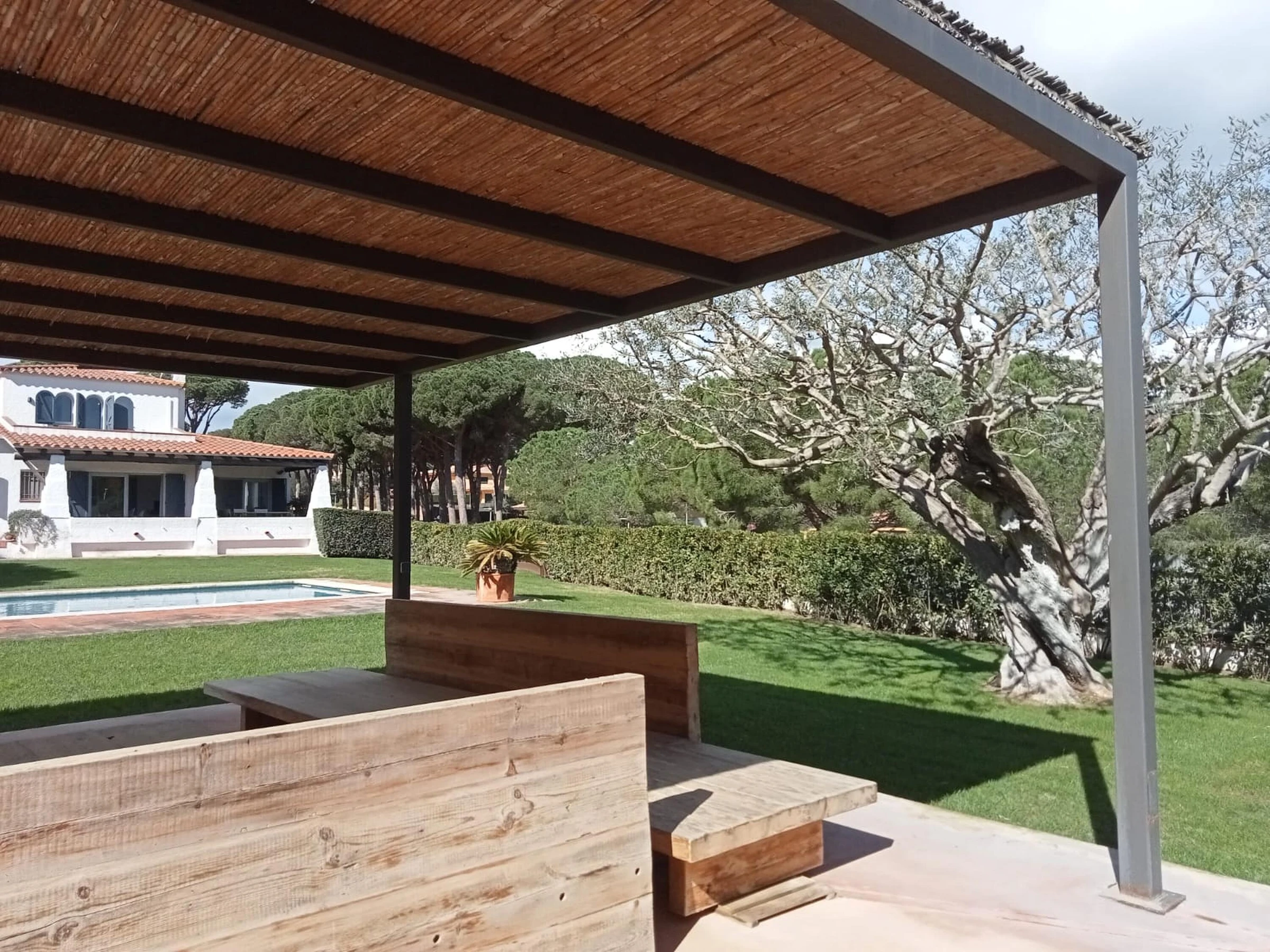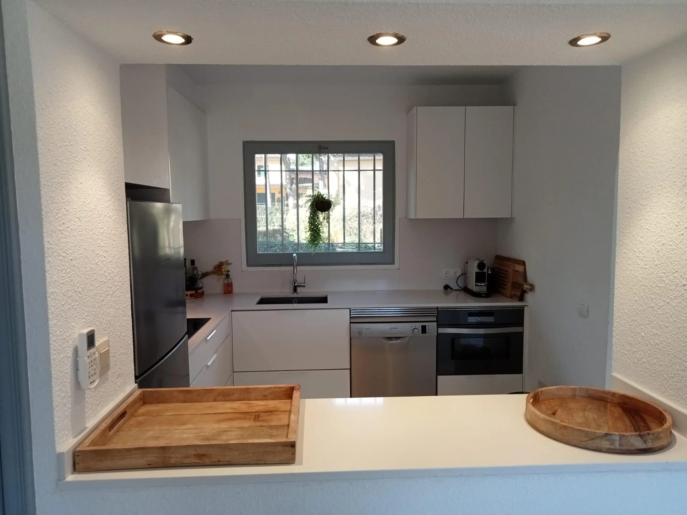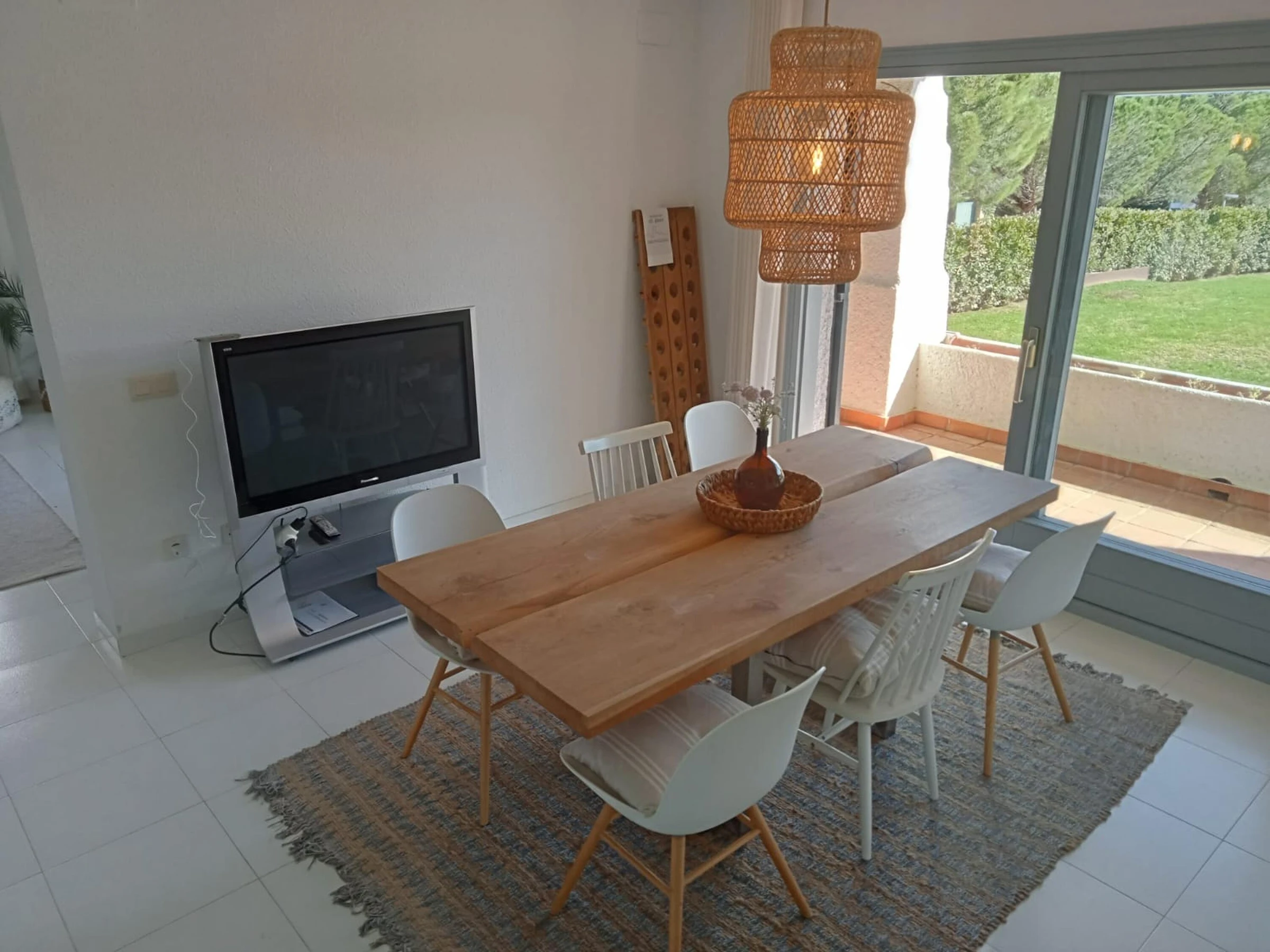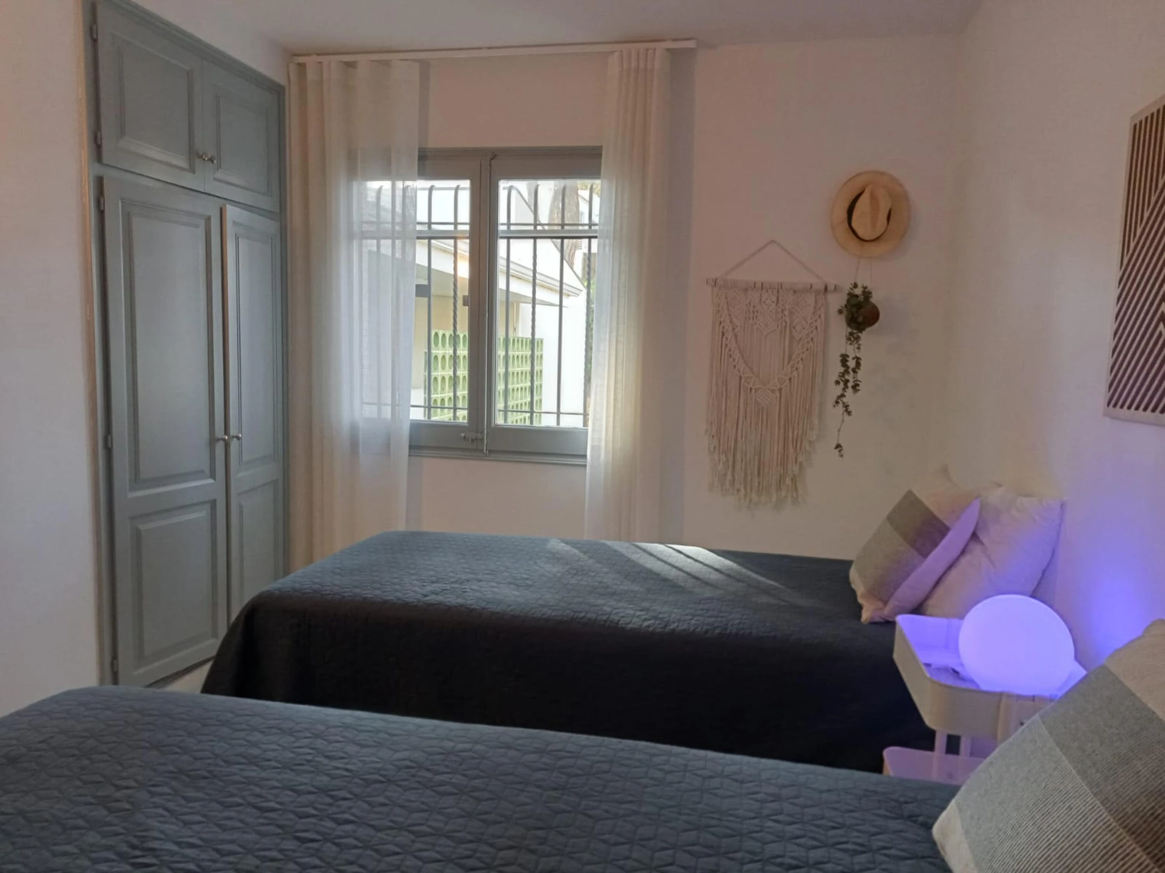 DISTRIBUTION: Ground floor: Entrance, dining-living room with exit to the garden, terrace and swimming pool. Porch with BBQ. Open kitchen full equipped, 2 double bedrooms with single beds, 1 Bathroom. First floor: 1 master bedroom with double bed and complete bathroom, terrace. COMMENTS: Private house with enormous garden and pool, situated about 500m from the entrance of Golf Club Platja de Pals and 1.5 km from the beach. Garage. A/C. (Capacity: 6 people) "Due to the restrictions of the Generalitat due to the very serious drought situation, access to the pools may be subject to restrictions and is not guaranteed".
