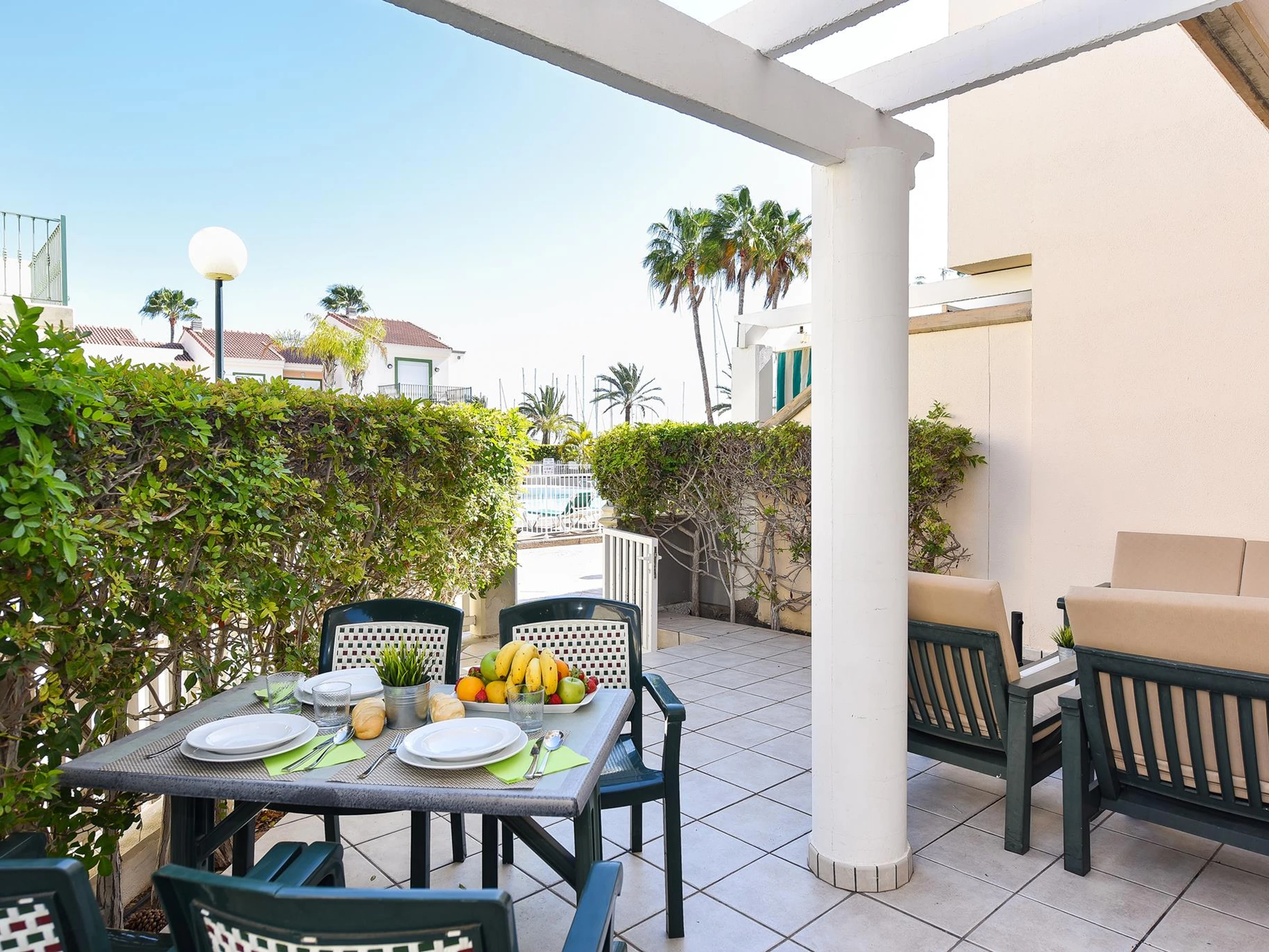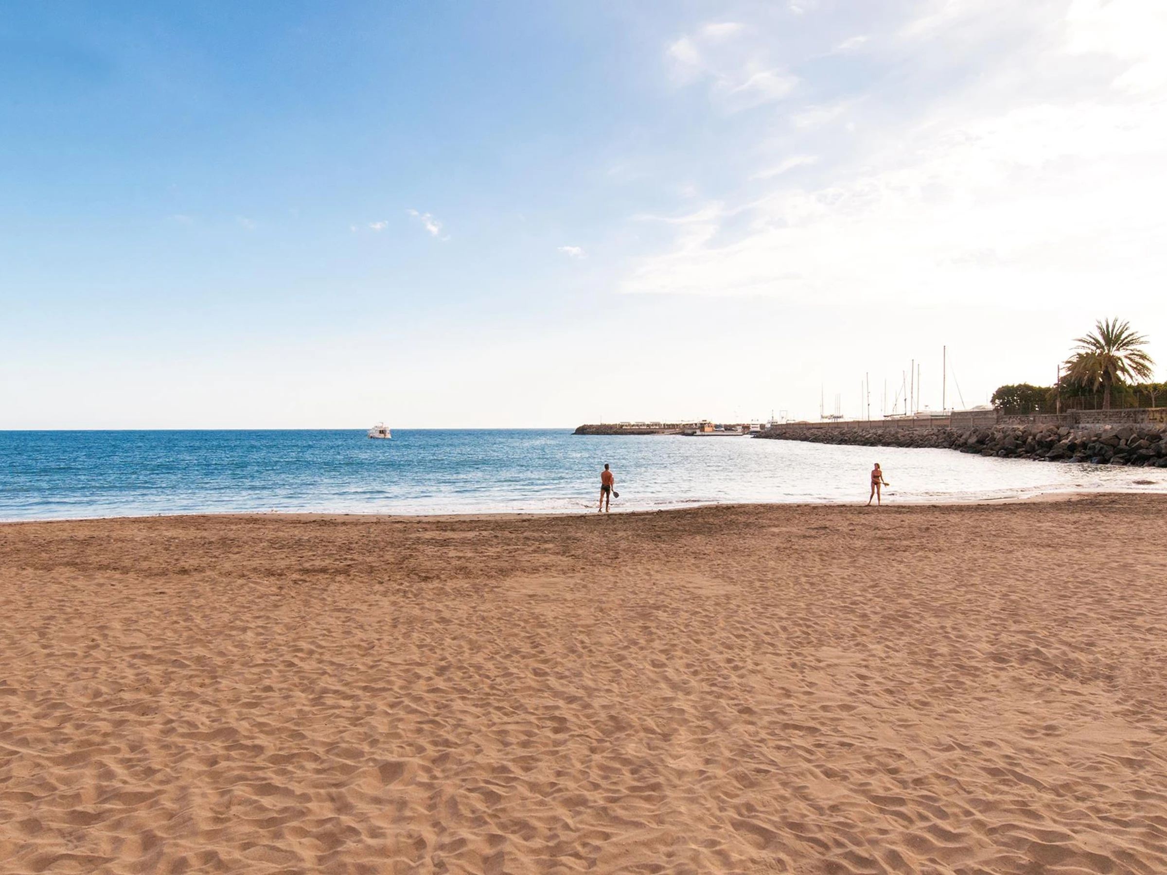 Pasito blanco is a private marina in the southwestern coast of Gran Canaria which counts on a little beach, club with sunbeds and sunbathing area, restaurant and bar.