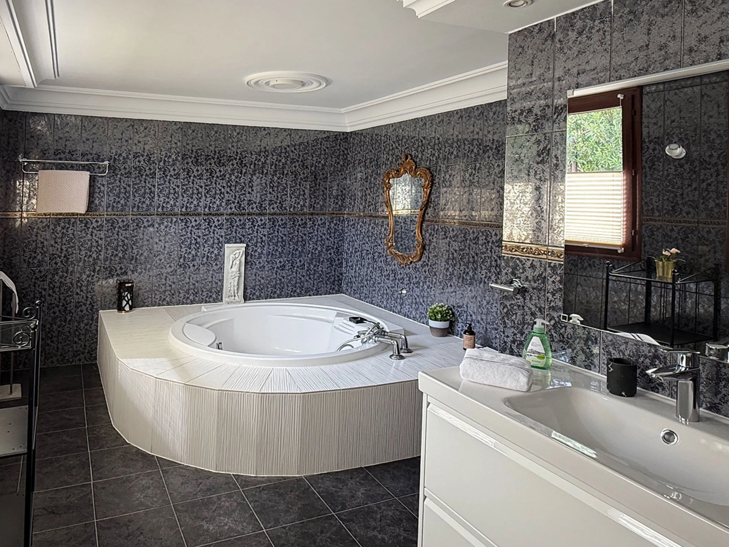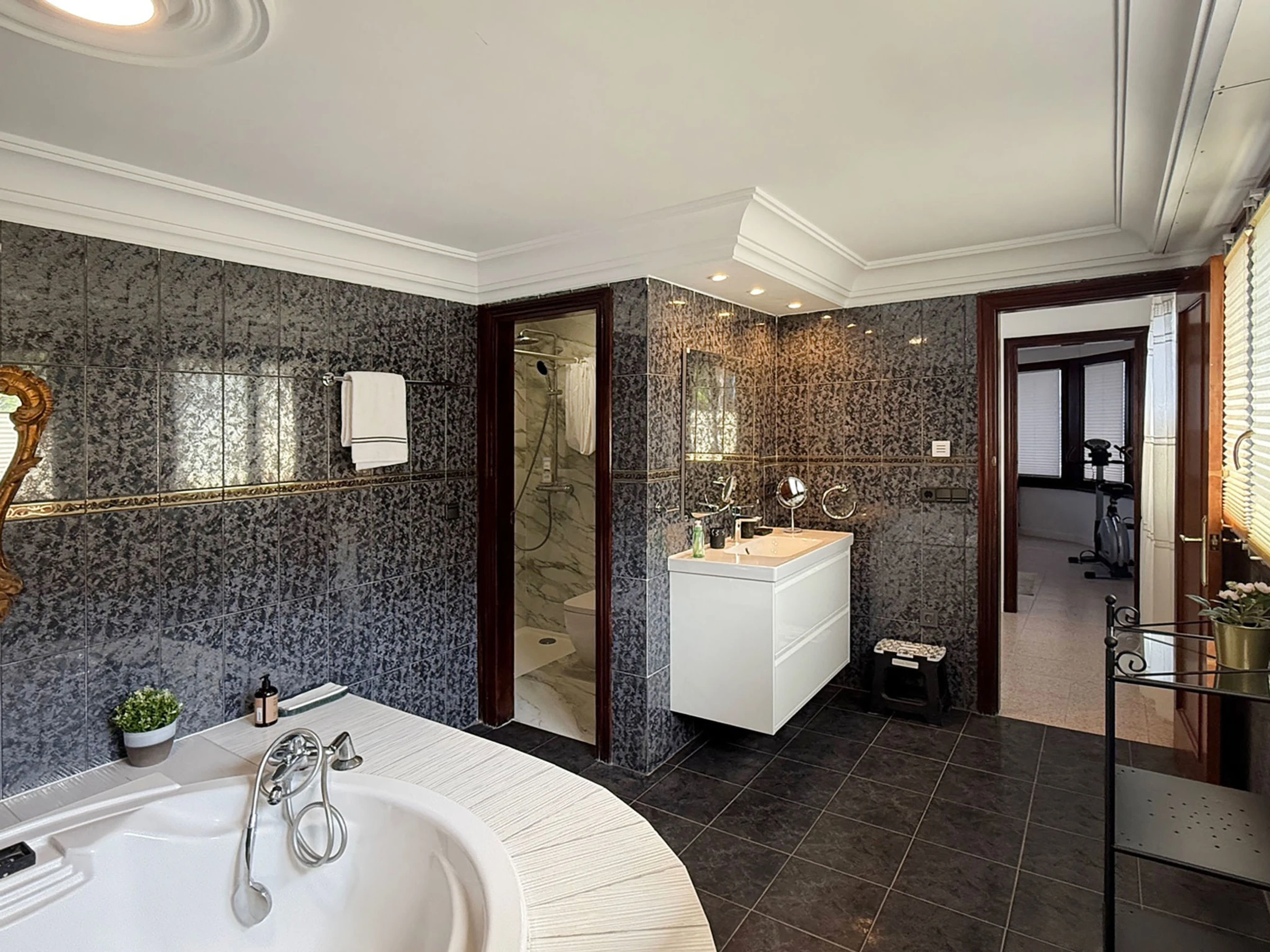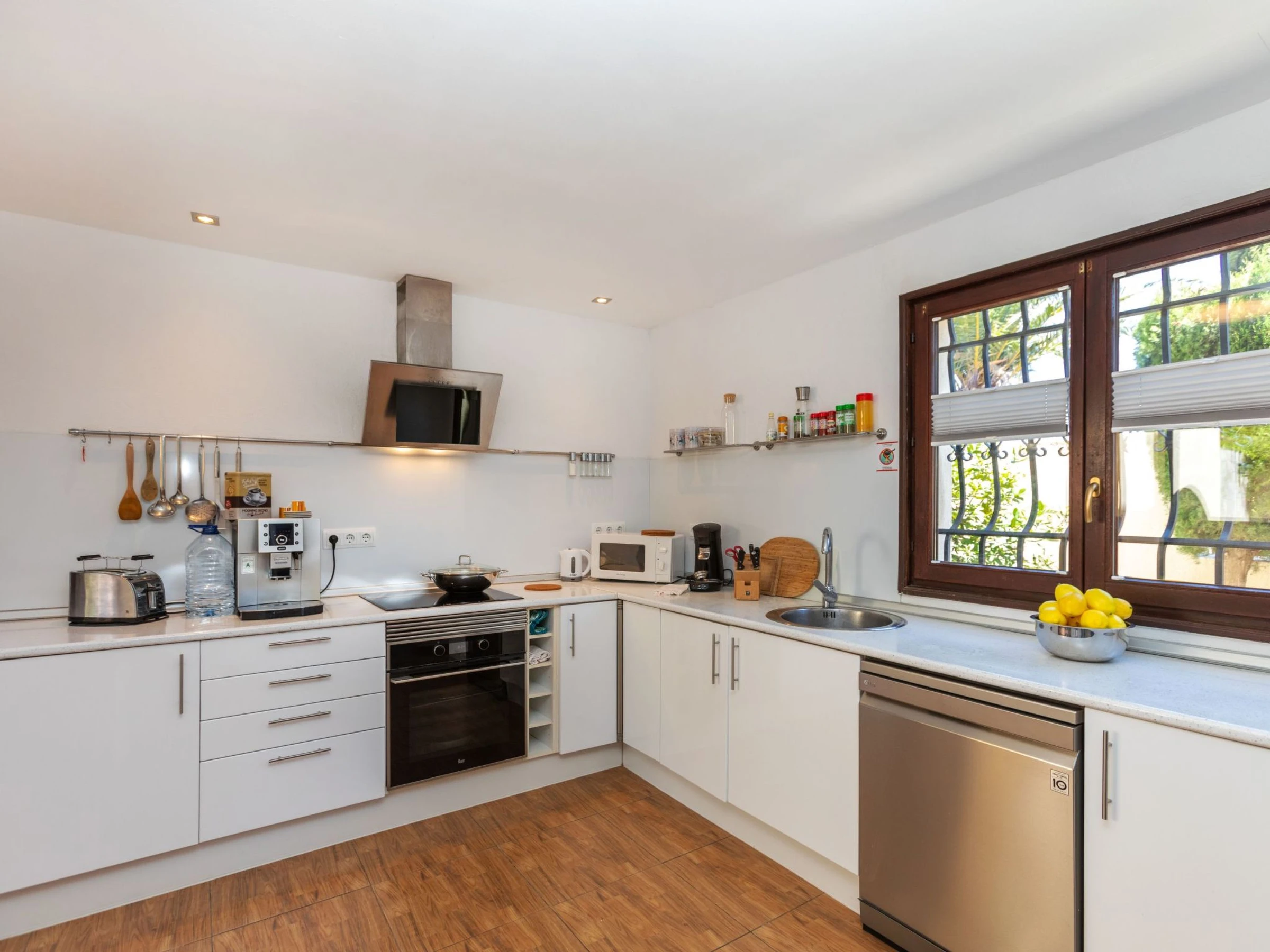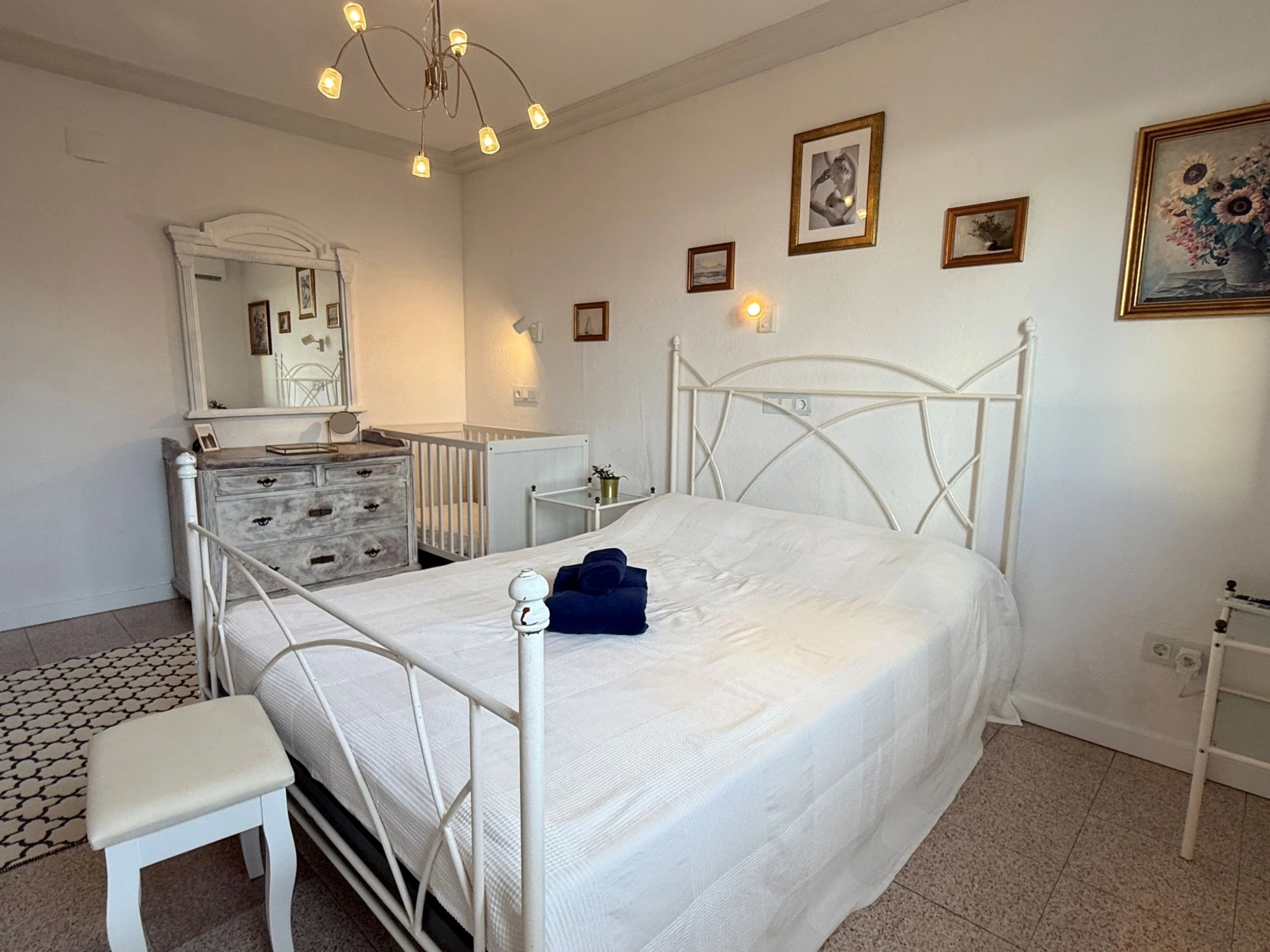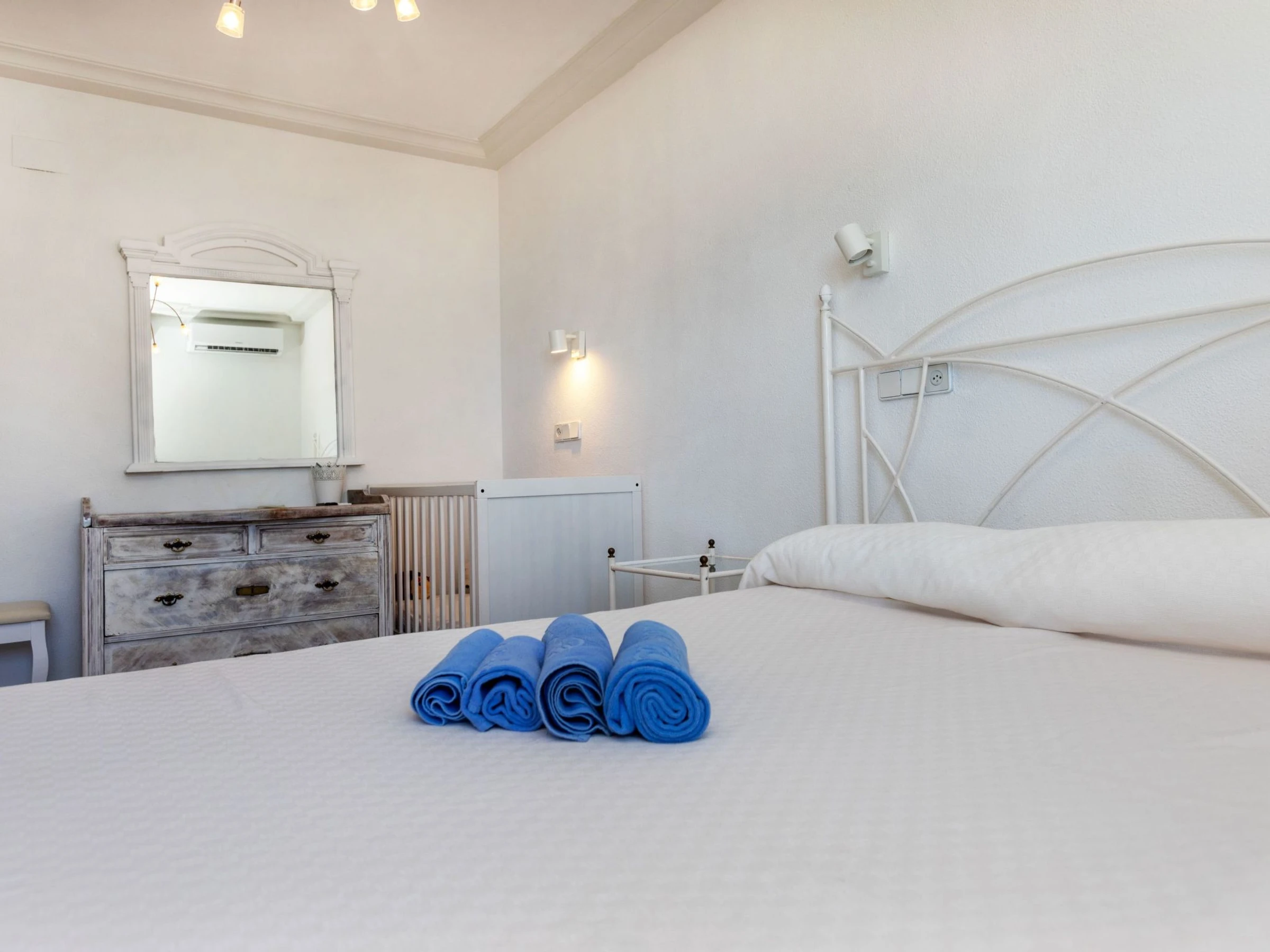 "Villa Bellevue", 7-room villa 300 m2 on 3 levels. Renovated in 2024, comfortable furnishings: 1 room with 1 bed (90 cm, length 200 cm), 1 double bed (1 x 160 cm, length 200 cm), TV, air conditioning and forced-air heating. Shower/WC. Upper floor: living/dining room with open-hearth fireplace, dining table, TV, air conditioning and forced-air heating. Kitchen (oven, dishwasher, 4 ceramic glass hob hotplates, toaster, kettle, microwave, freezer, electric coffee machine, Capsules for coffee machine (Senseo y Longhi) extra). Shower/WC, sep. WC. 2nd upper floor: 1 room with 1 double bed (1 x 140 cm, length 200 cm), TV, air conditioning and forced-air heating. 1 room with 1 double bed (1 x 140 cm, length 200 cm), fan. 1 room with 1 bed (120 cm, length 200 cm), bath/shower/bidet/WC and fan. 1 large room with 1 double bed (1 x 160 cm, length 200 cm), TV, air conditioning, fan and forced-air heating. Natural stone floors. 2 large terraces. Terrace furniture, balcony furniture, barbecue, deck chairs (4), covered balcony, sitting area. Marvellous panoramic view of the swimming pool, the resort and the ocean. Facilities: washing machine, iron, children's high chair, baby cot, hair dryer. Internet (WiFi, free). Parking (1 car), garage (2 cars), width 500 cm. Please note: non-smokers only, non-smoking house. 1 small pet/ dog allowed. TV only ES, DE, FR. Private entrance, no lift. The pool mentioned in the description is for private use. Charging of the electric cars is not permitted. There is no socket for such use or power. [hidden] // Reg. Nr.: ESFCTU00001200900076998100000000000000000[hidden]3