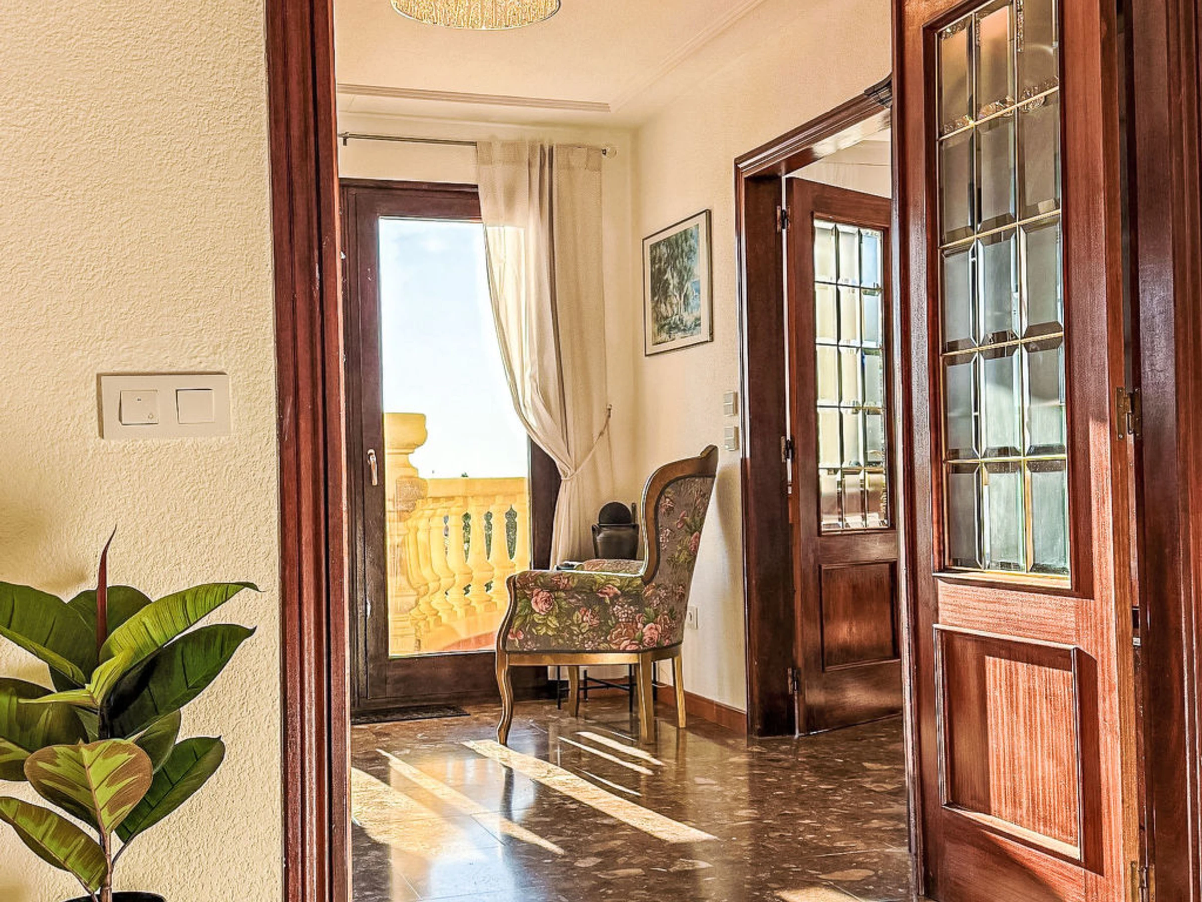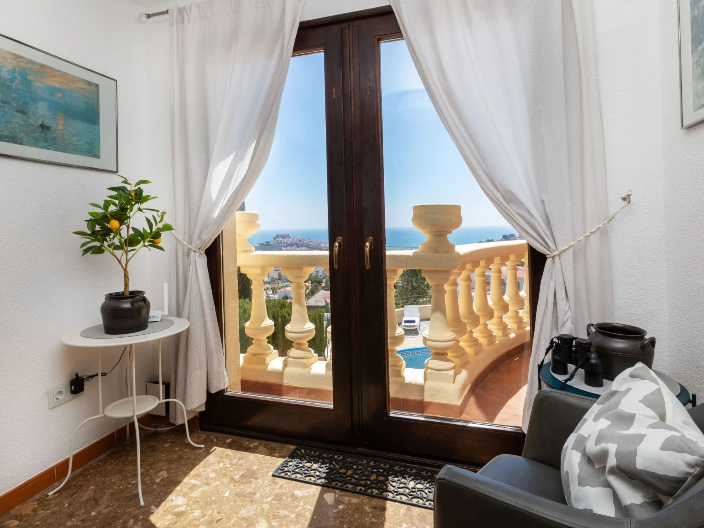 Atalayas 2 km from Castillo Peñíscola: Charging of the electric cars is not permitted. There is no socket for such use or power. Very beautiful, comfortable house "Villa Bellevue", 3 storeys, built in 2000, renovated in 2024. In the district of Atalayas, in the resort 1.6 km from the centre of Peñíscola, on top of a hill, 1.6 km from the sea, 1.6 km from the beach. Private: well-kept terraced garden, swimming pool kidney shaped (8 x 4 m, depth 140 - 160 cm, seasonal availability: [hidden] - [hidden] Outdoor shower, terrace, garden furniture, barbecue (swing). In the house: WiFi, air conditioning, washing machine. Bumpy, steep, narrow motor access. Parking (for 2 cars), single garage. Supermarket 2 km, shopping centre 4.5 km, restaurant 1.5 km, bar 1.5 km, café 1.4 km, bus stop "Plaza Constitución" 1.5 km, railway station "Benicarló" 10 km, sandy beach "Playa Sur" 1.6 km. Golf course (18 hole) 33 km, sports centre 2.5 km, cycle lane 3 km. Nearby attractions: Peñiscola 1.5 km, Ciutat de les Arts i les Ciències 140 km, Port Aventura 120 km, Delta del Ebro 45 km, Morella 75 km, Coves de Sant Josep 105 km. Well-known lakes can easily be reached: Pantano de la Senia 45 km. Hiking paths: Parque Natural Sierra de Irta 5 km. Please note: car recommended. Baby equipment (included). Object suitable for 8 adults + 2 children groups of teenagers on request only. The owner does not accept any youth groups. Part of the house is closed and unoccupied.