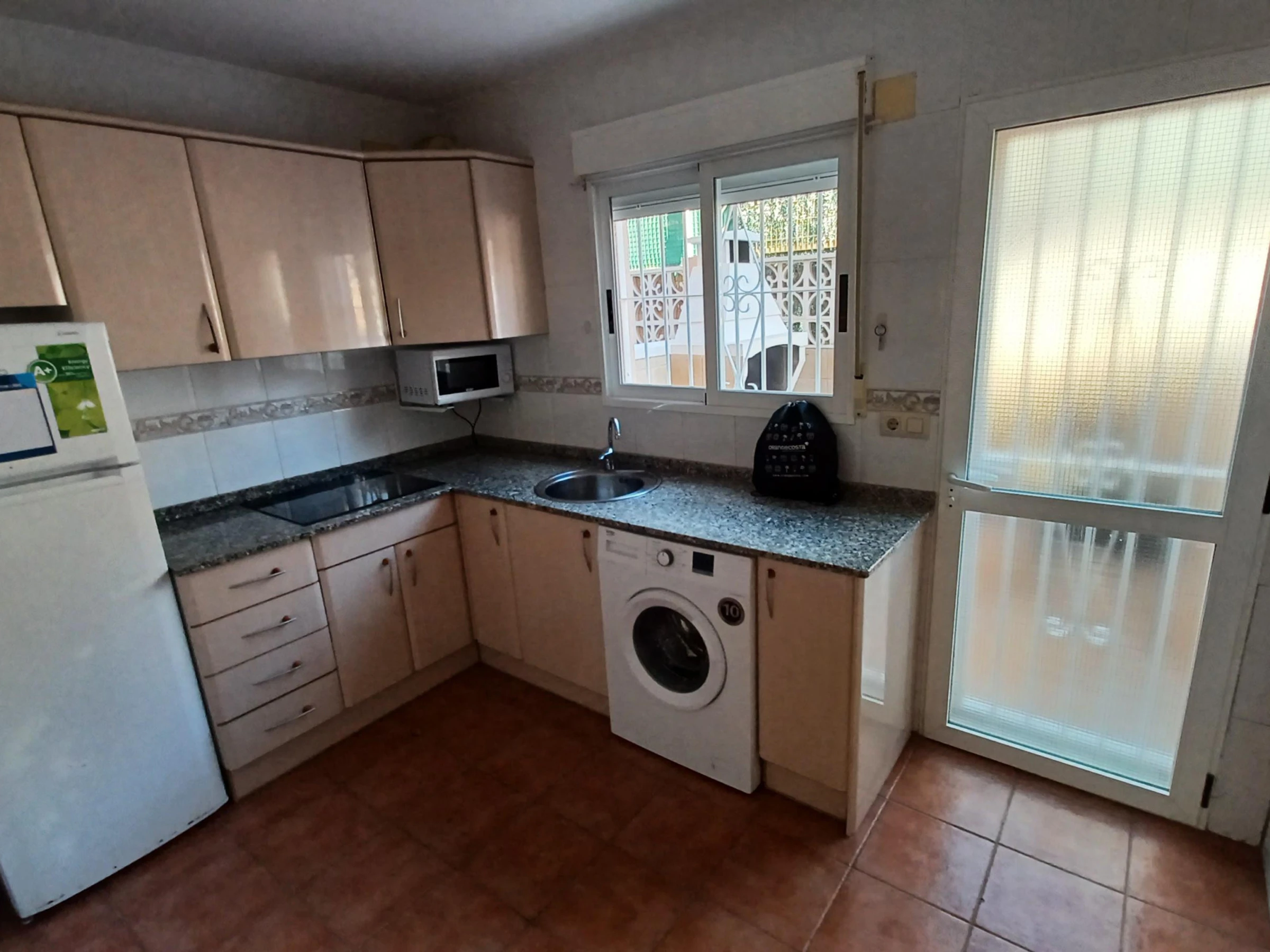 The interior is equipped with air conditioning in the living room and some bedrooms, ensuring a pleasant temperature on the hottest days. The independent kitchen is fully equipped with ceramic hobs, fridge, washing machine, microwave, coffee maker and kitchenware.