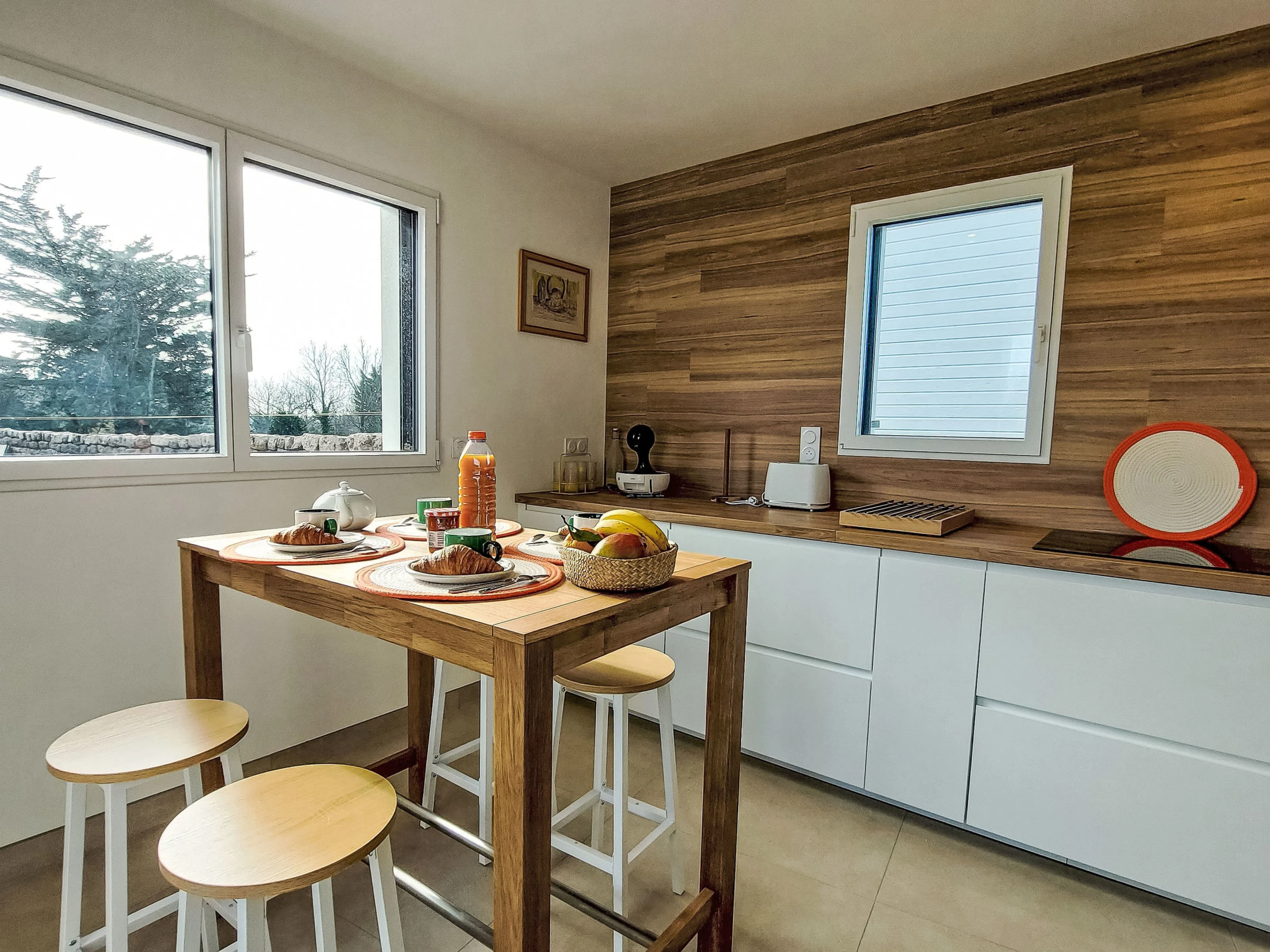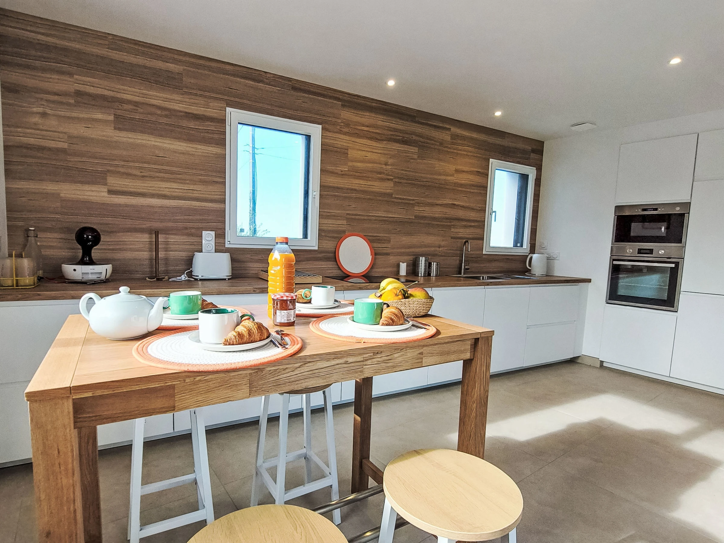 "Magdanela", 4-room house 130 m2 on 2 levels, south facing position. Fully renovated in 2025, comfortable and beautiful furnishings: large living/dining room with dining table and TV (flat screen). Exit to the garden. Large, open kitchen (oven, dishwasher, 3 induction hot plates, toaster, kettle, microwave, freezer, electric coffee machine) with dining table. Exit to the terrace. Sep. WC. Upper floor: 2 large rooms, each room with 1 french bed (160 cm, length 200 cm). Walk-through room with 2 beds (80 cm, length 190 cm). Shower, sep. WC. Electric heating. Large terrace, south facing position. Terrace furniture, electric barbecue, deck chairs (4). Facilities: washing machine, iron, baby cot for up to 2 year olds, hair dryer. Internet (WiFi). Please note: non-smoking house. Smoke alarm. Offer by a private individual according to Art. 155, IV of CGI.
