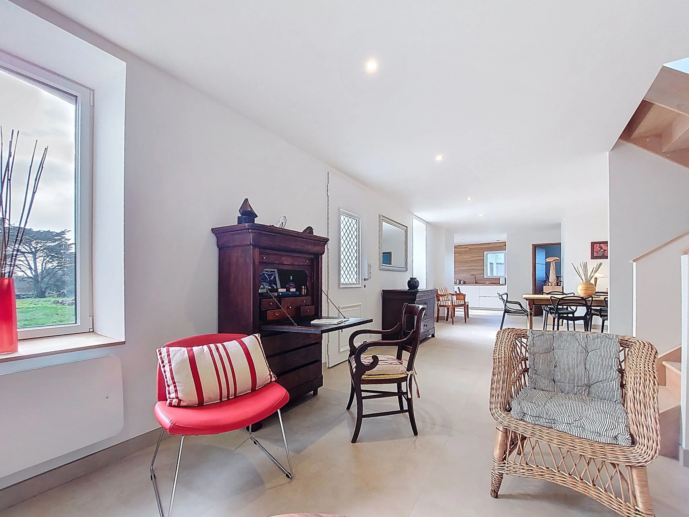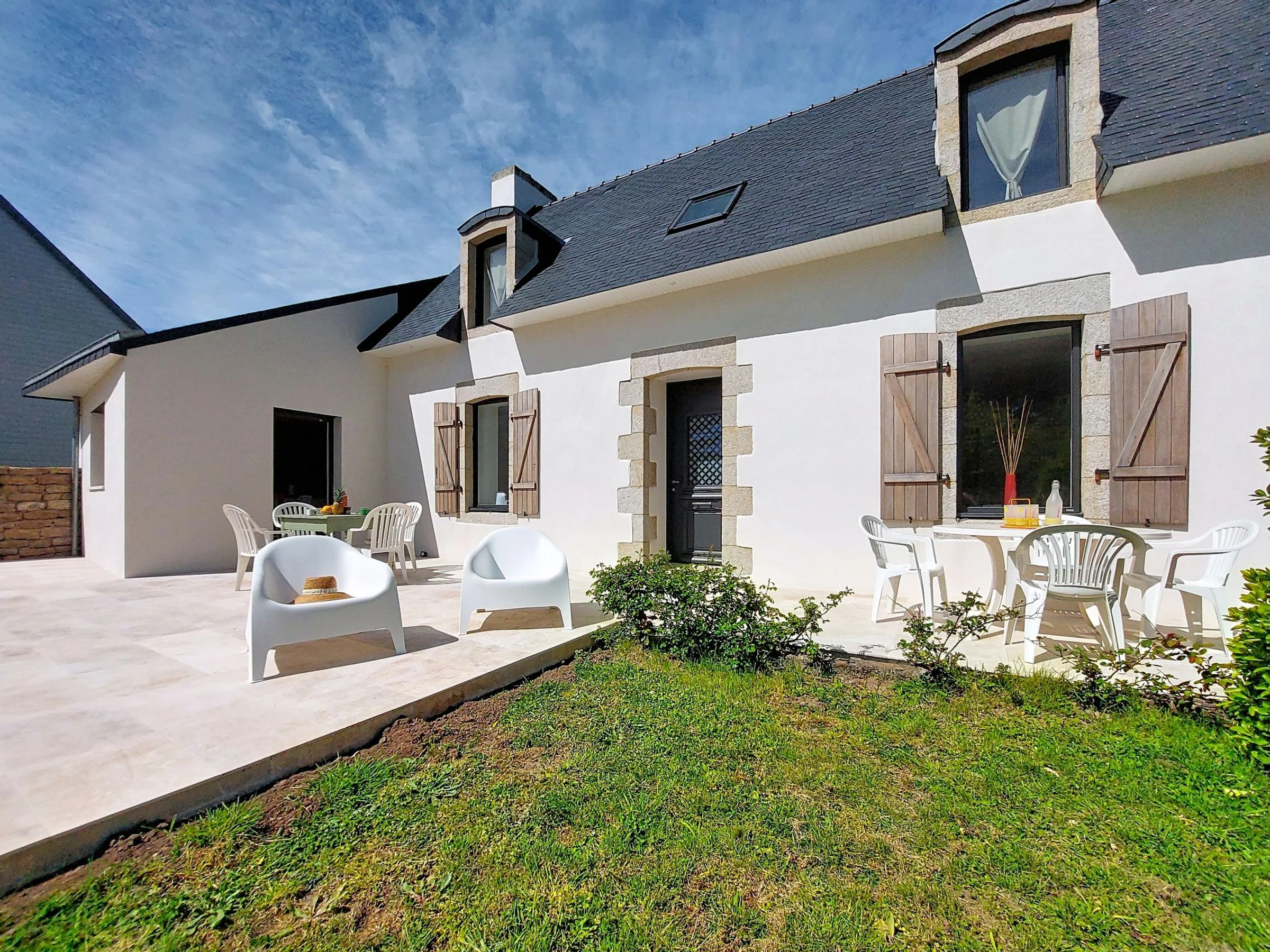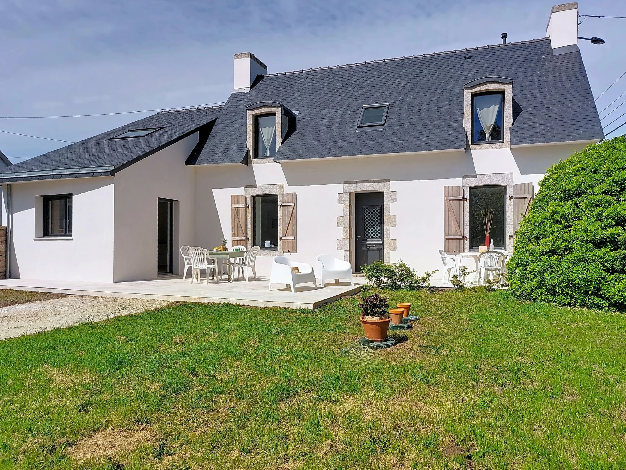 Beautiful, comfortable single-family house "Magdanela", renovated in 2025. In the resort 1.5 km from the centre of Penmarc'h, 2.7 km from the sea, 2.7 km from the beach, south facing position. Private: property 2'800 m2, garden (not fenced) with wildlife garden and trees, parking (for 3 cars) on the premises. Supermarket 1.7 km, restaurant 1.5 km, bakery 1.5 km, bus stop 2 km, railway station "Quimper" 30 km, sandy beach "Plage du Ster" 2.7 km. Sports harbour 4 km, golf course (9 hole) 29 km, surf school 1.7 km, sailing school 1.7 km, riding stable 1 km, walking paths from the house 10 m. Nearby attractions: Phare d’Eckmühl 5 km, Pointe de la Torche 4 km, Le Guilvinec 4 km, Loctudy 12 km, Pont-l'Abbé 9 km, Quimper 29 km. Hiking paths: GR 34, Baie d'Audierne.