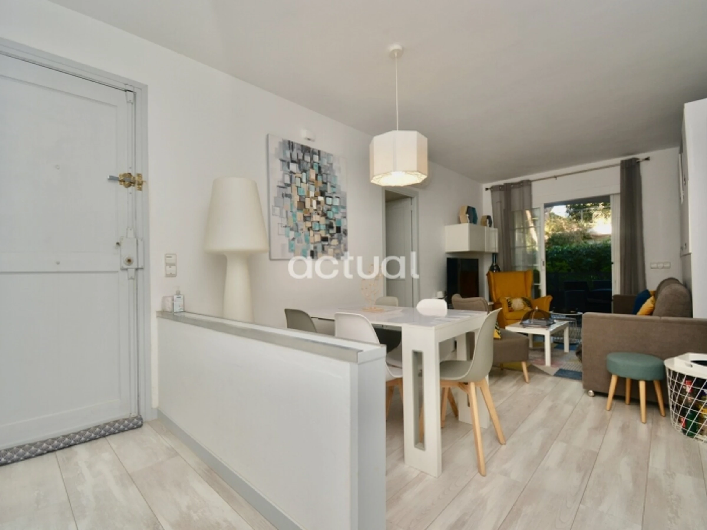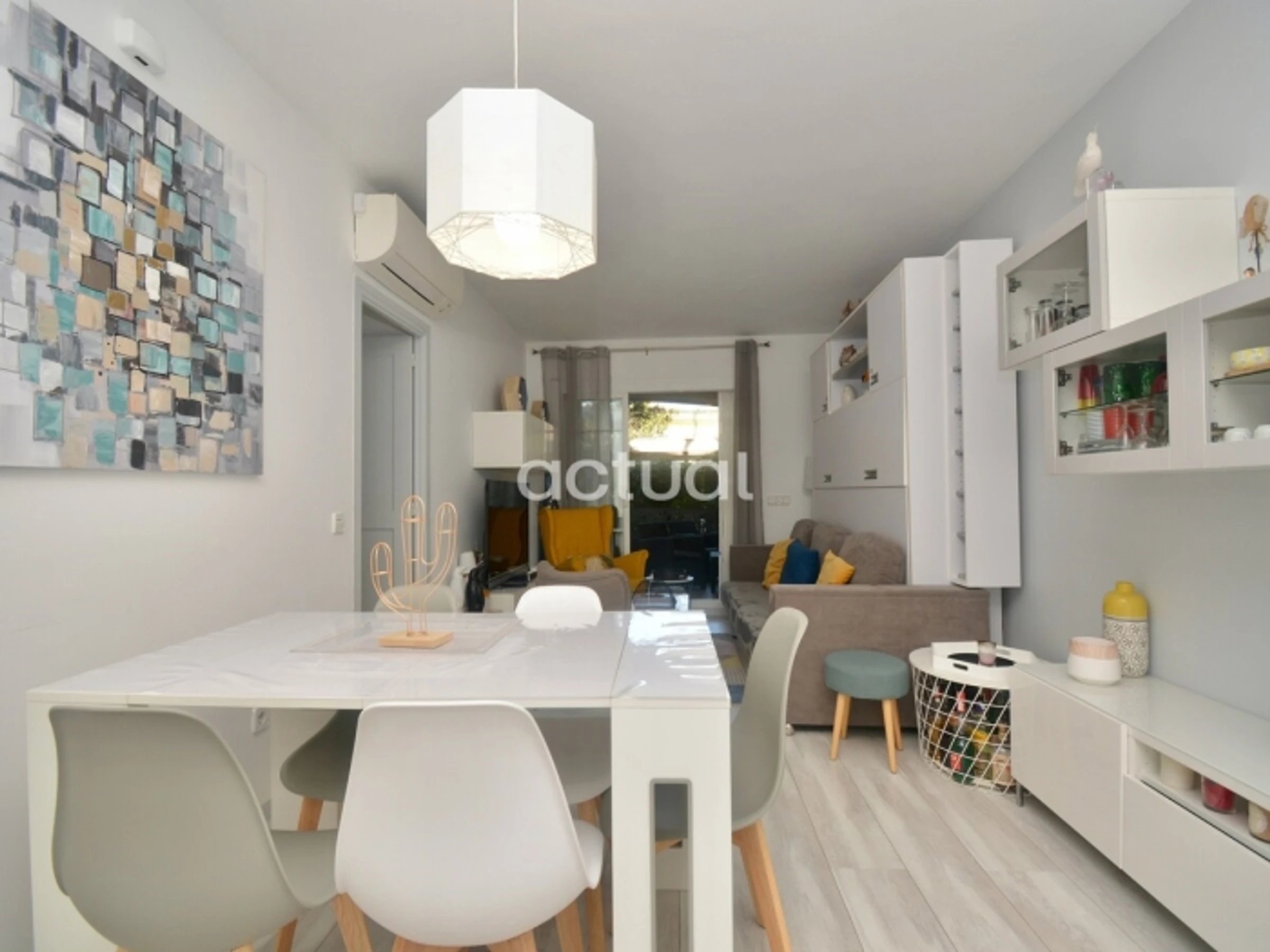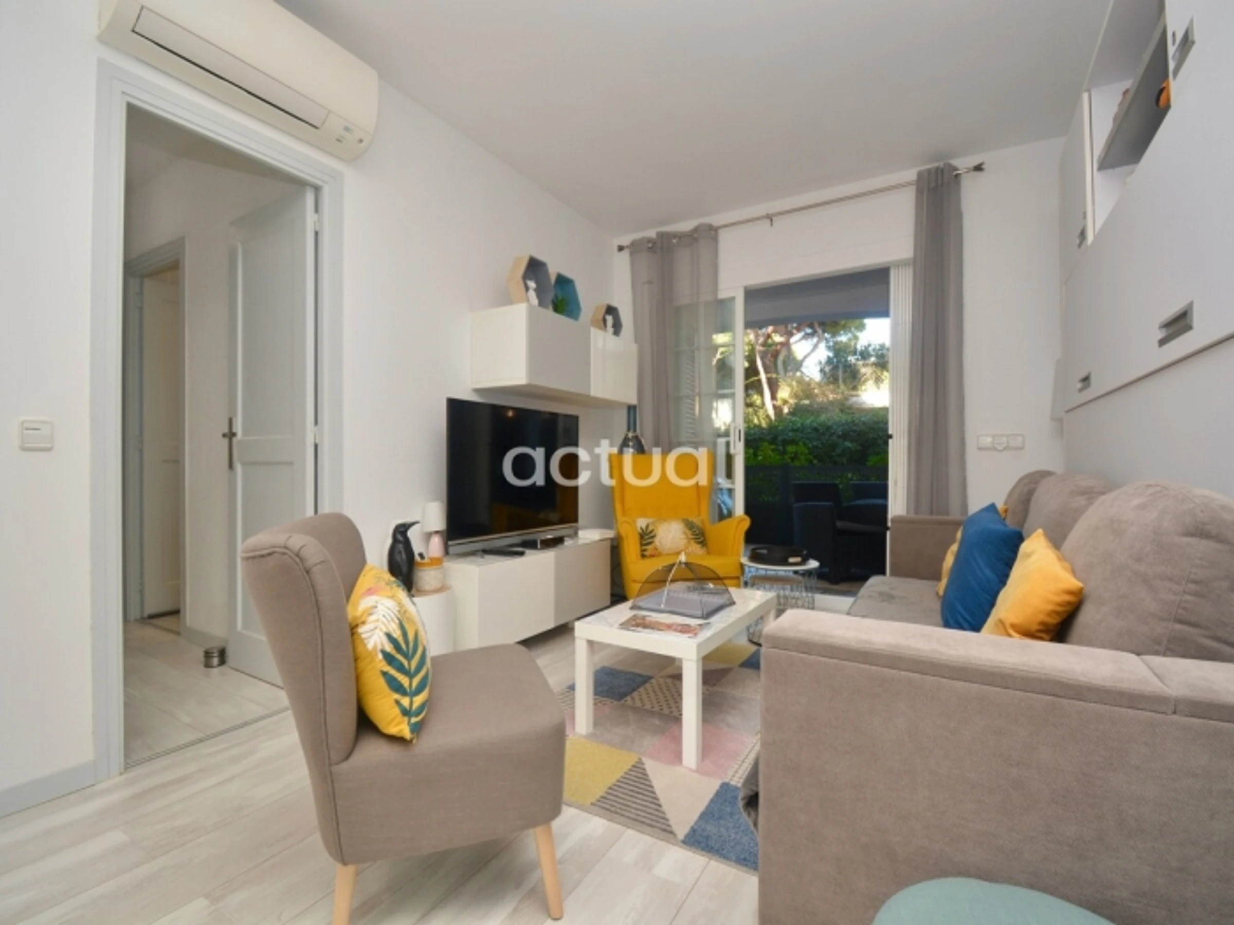 Apartment located in the Voramar complex about 50 m from the beach and approximately 100 m from the center of Playa de Aro. Ground floor, consisting of 2 bedrooms, one with a 160 cm double bed, shower, and WC, and 1 bedroom with 2 separate beds plus a bathroom with shower and WC, living-dining room with access to the porch and private garden. Communal pool. Parking included. Air conditioning. NO PETS ALLOWED. WiFi.