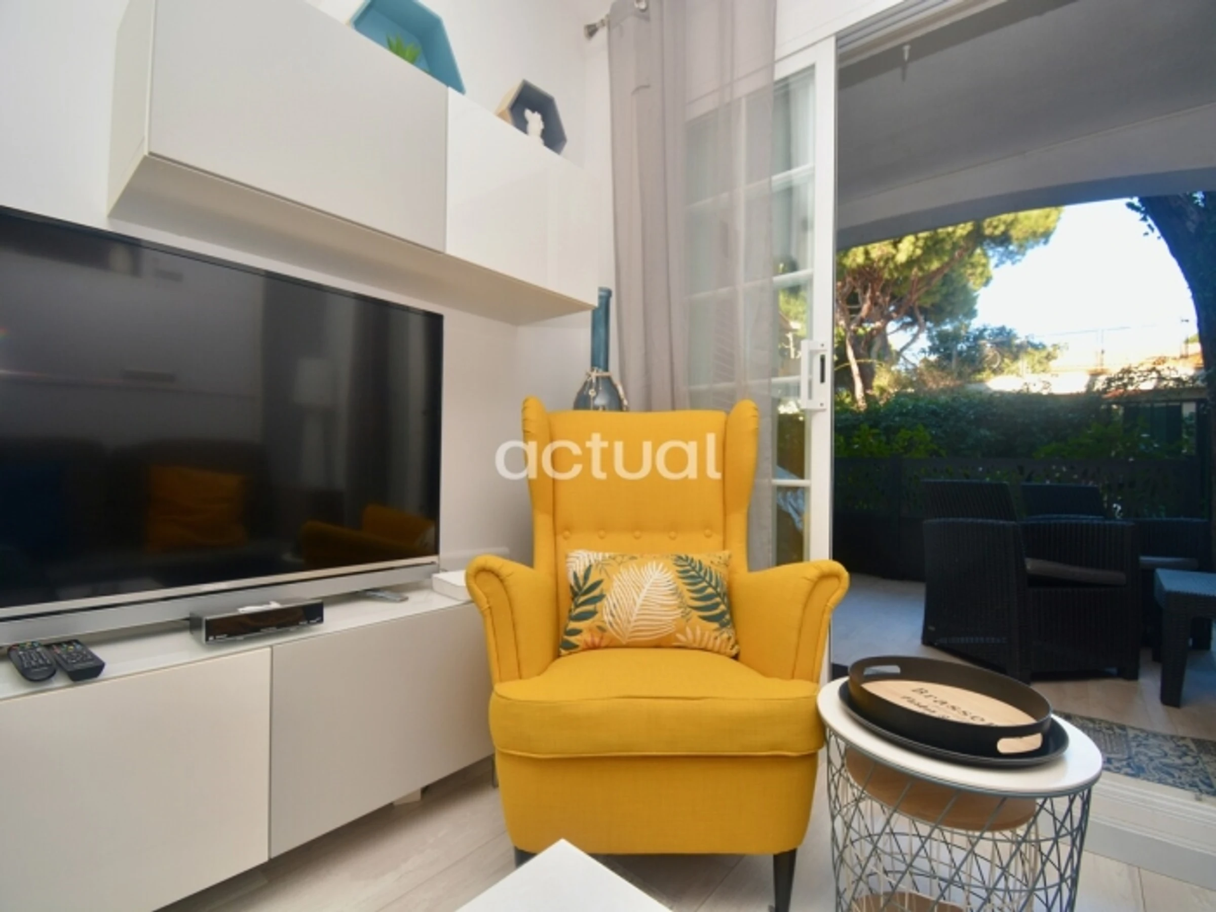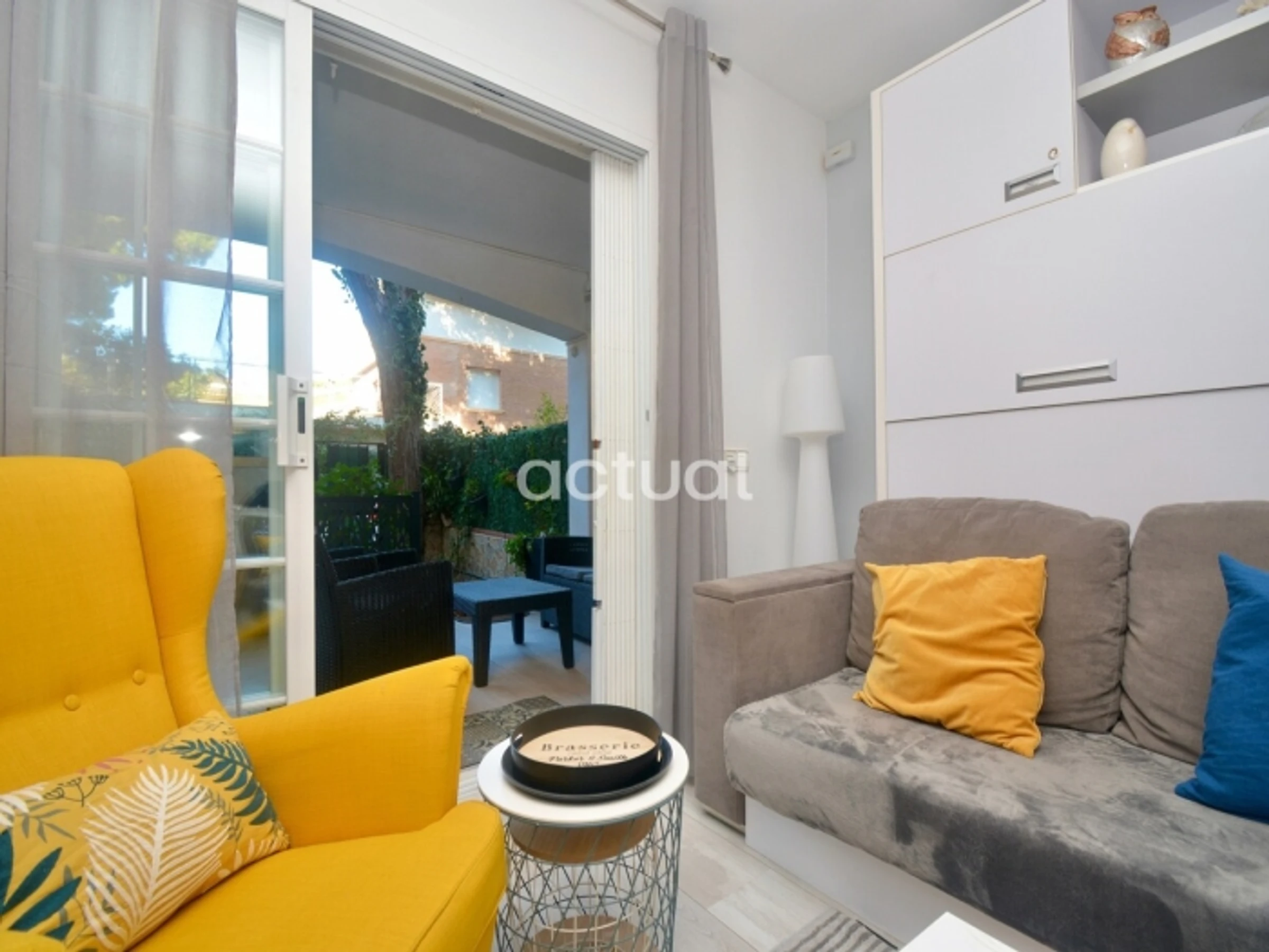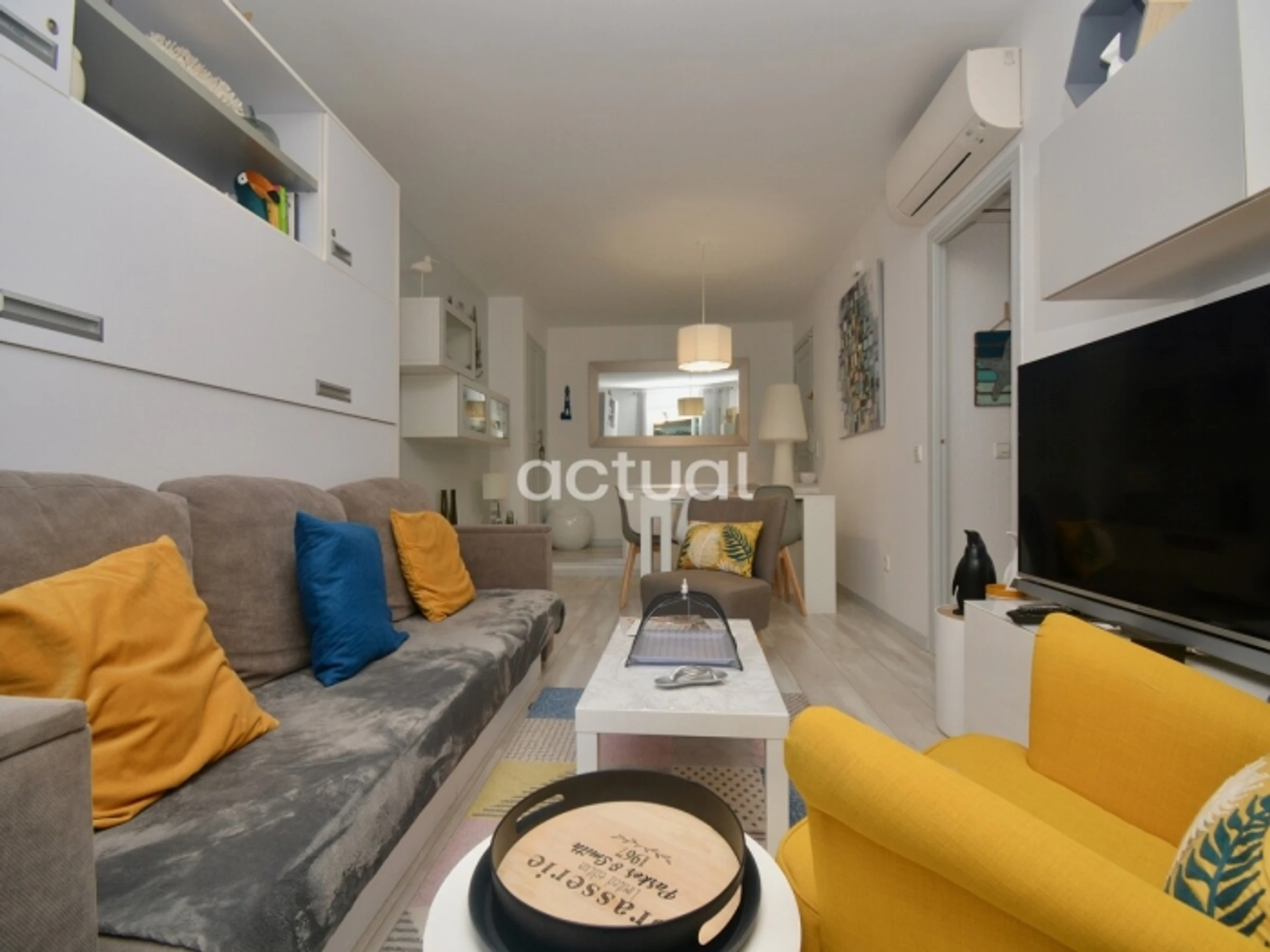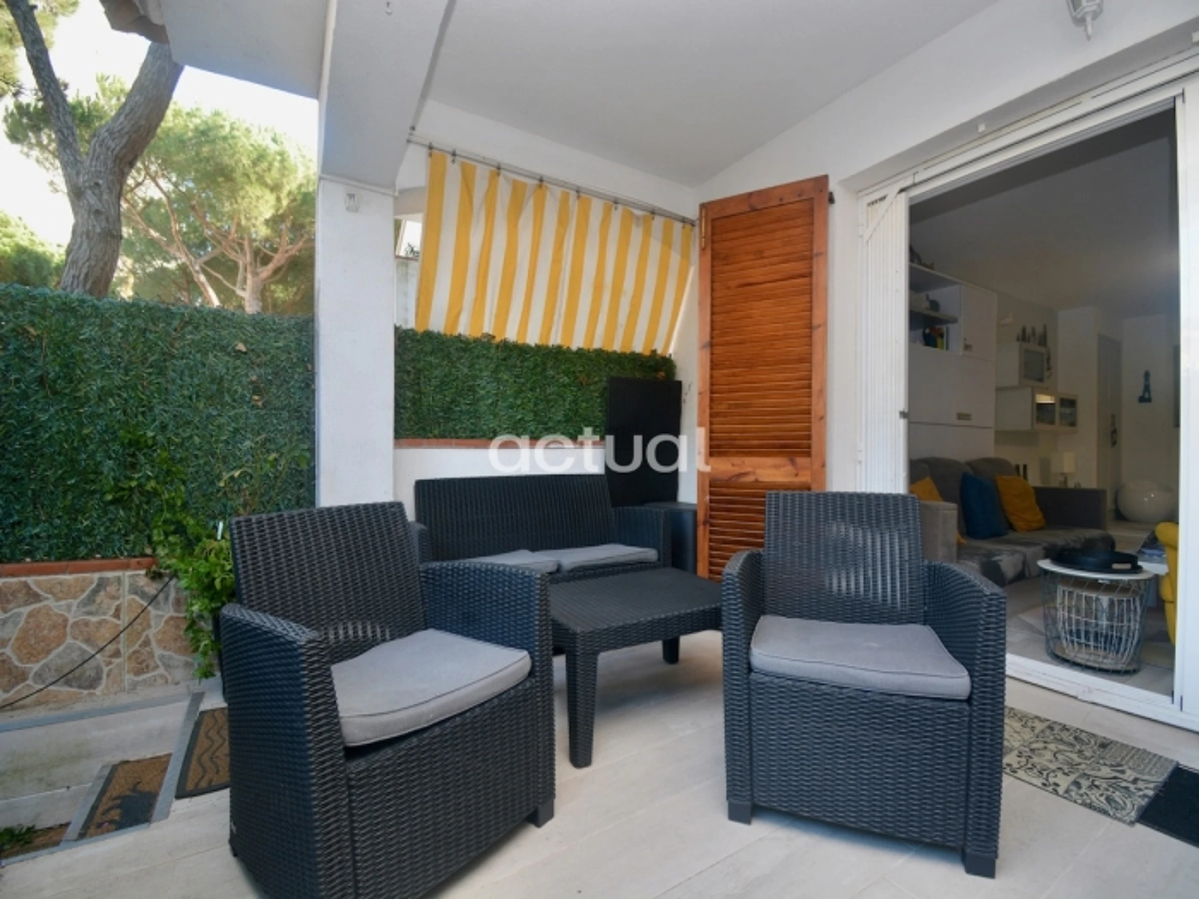 Apartment located in the Voramar complex about 50 m from the beach and approximately 100 m from the center of Playa de Aro. Ground floor, consisting of 2 bedrooms, one with a 160 cm double bed, shower, and WC, and 1 bedroom with 2 separate beds plus a bathroom with shower and WC, living-dining room with access to the porch and private garden. Communal pool. Parking included. Air conditioning. NO PETS ALLOWED. WiFi.