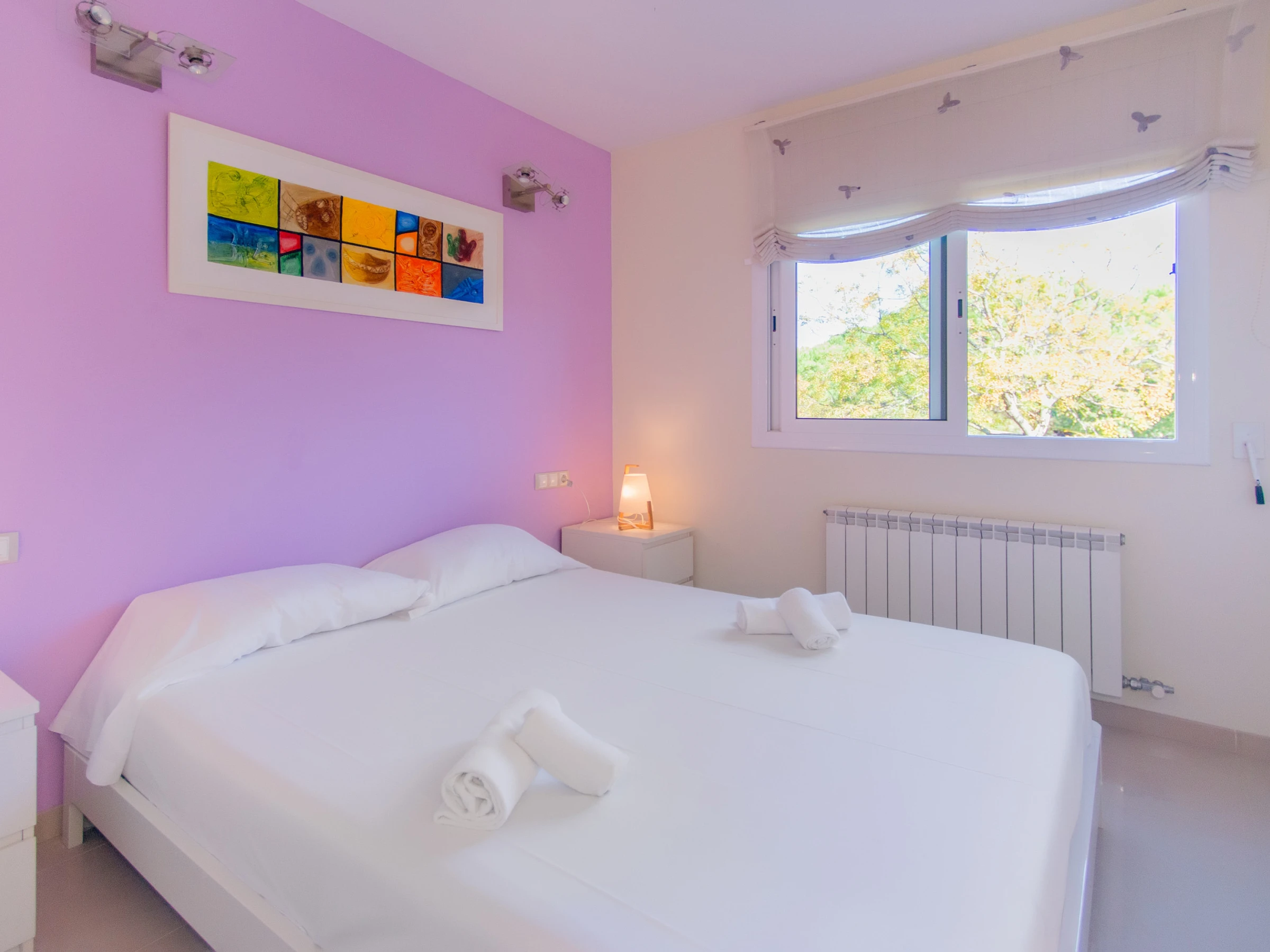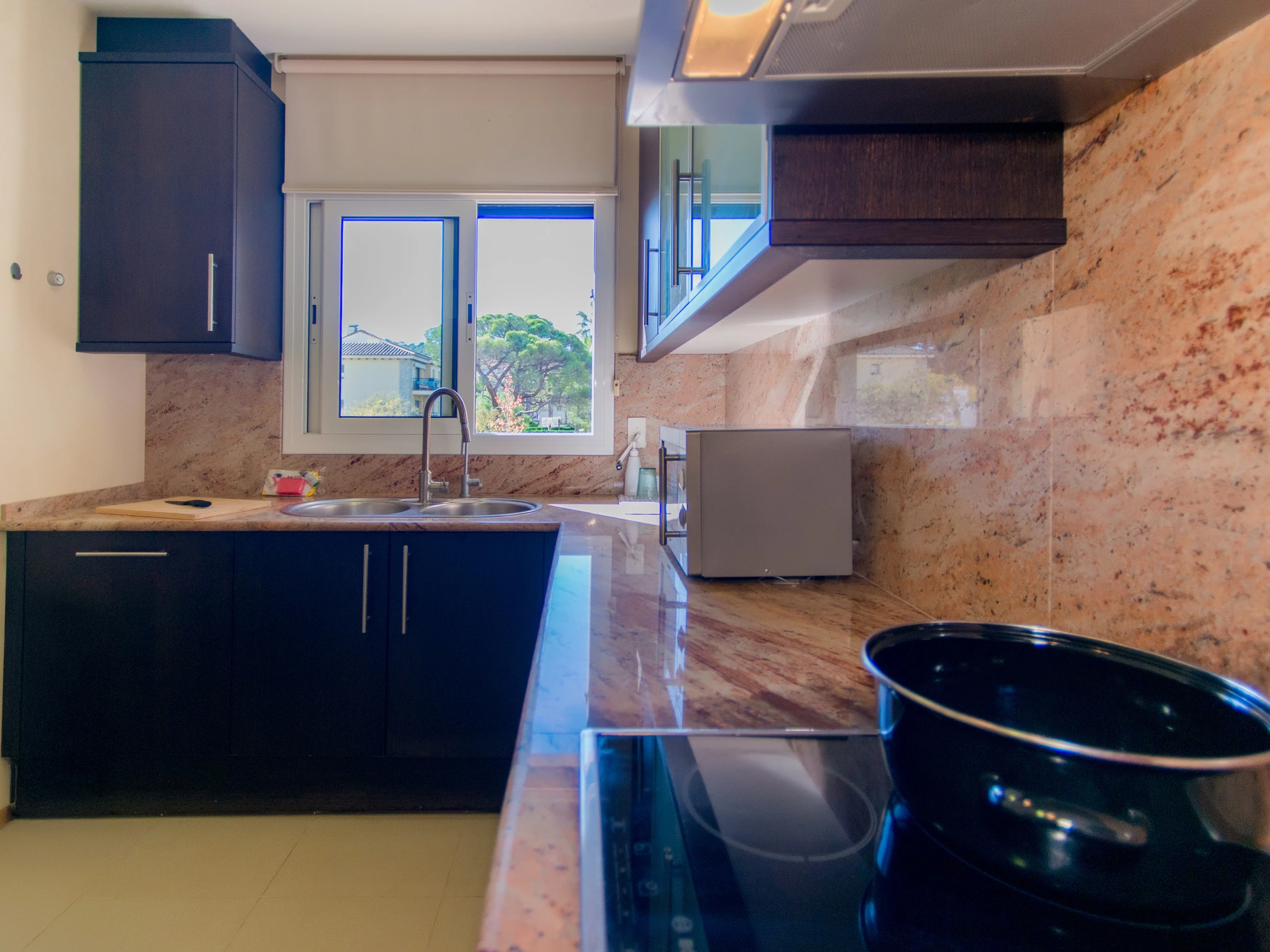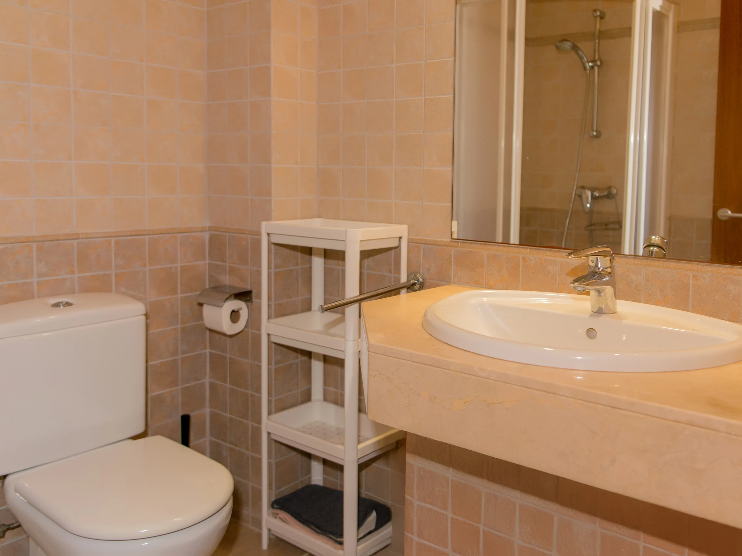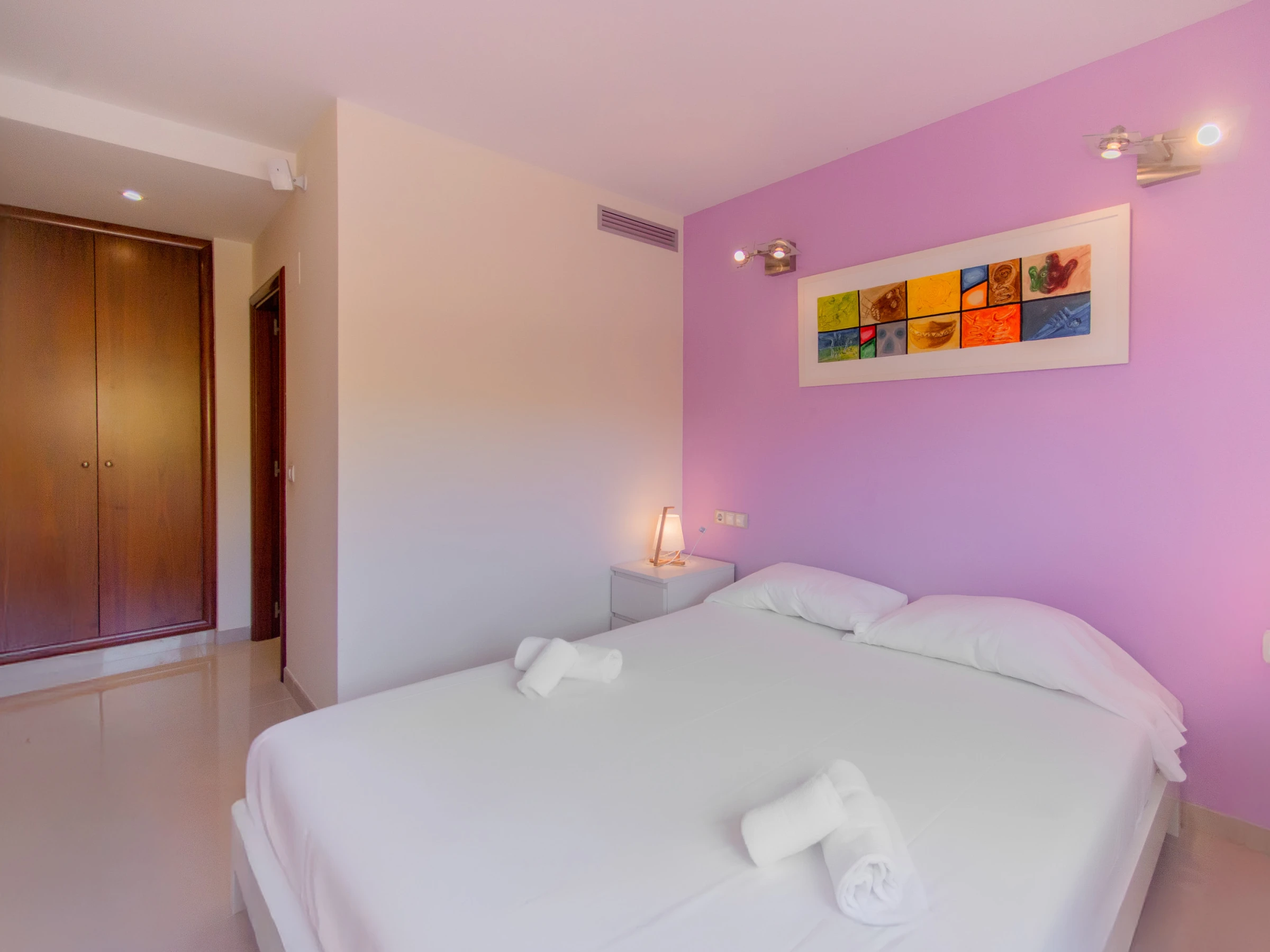 This bright and cosy apartment is ideal for a family holiday or with friends. The spacious living room with panoramic windows is full of natural light, and the comfortable sofa and modern television create a comfortable and welcoming atmosphere. From the living room, you can access a terrace with views of the pool, an ideal place to have your morning coffee and spend the afternoon.