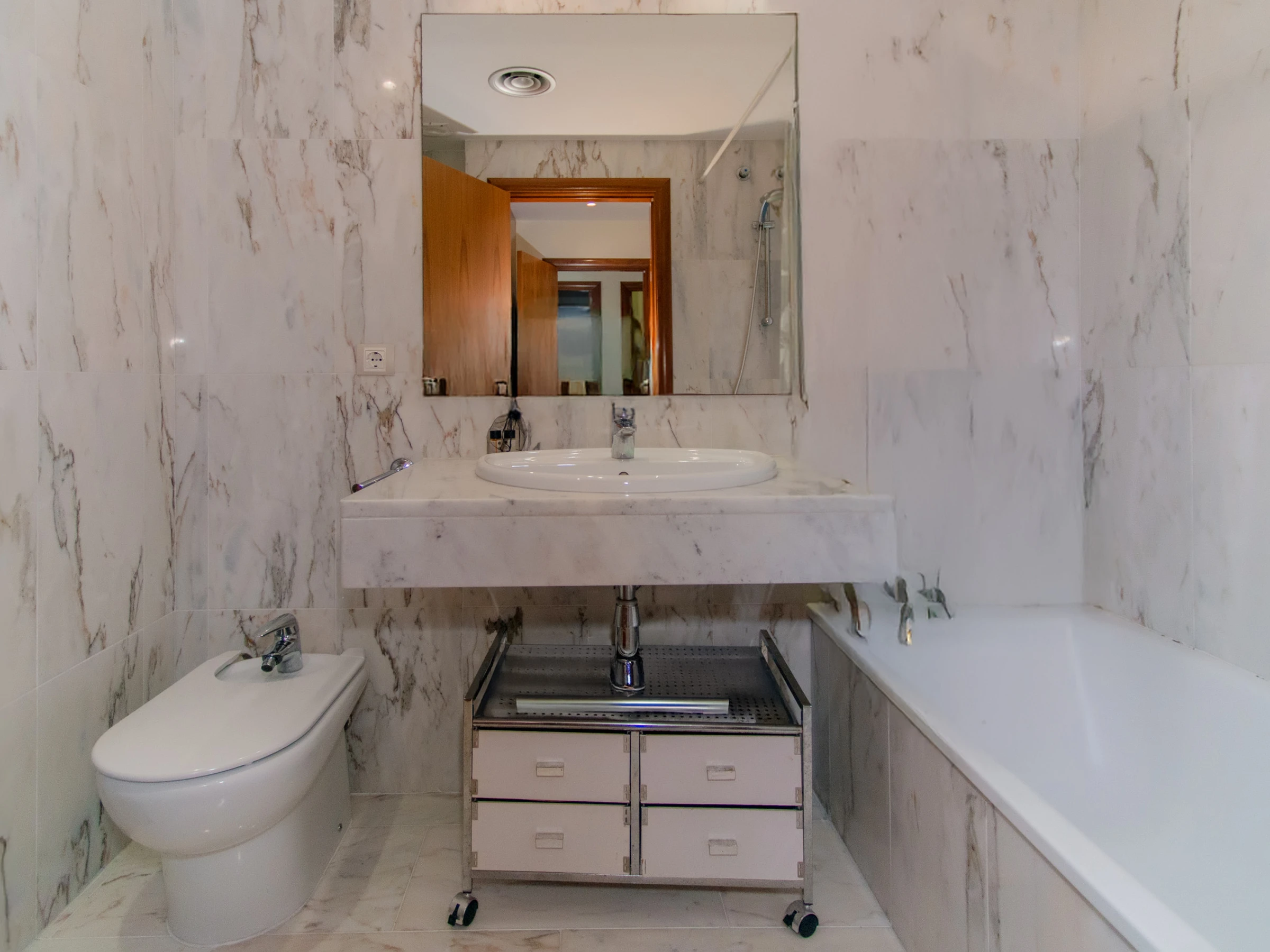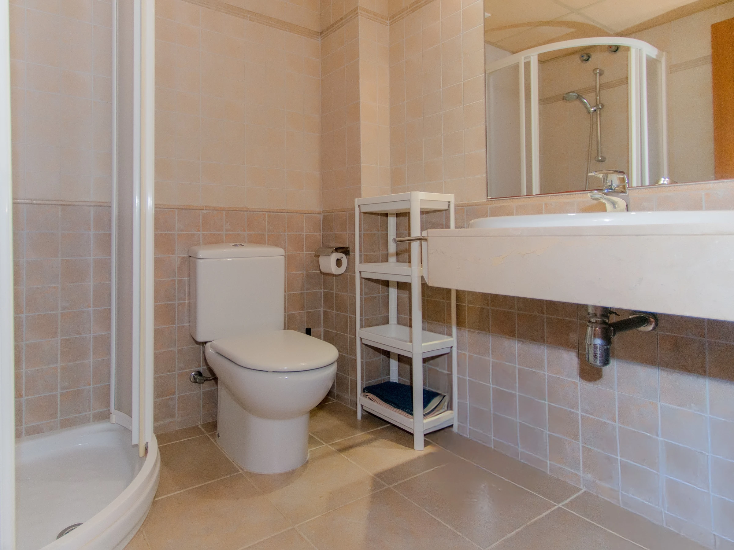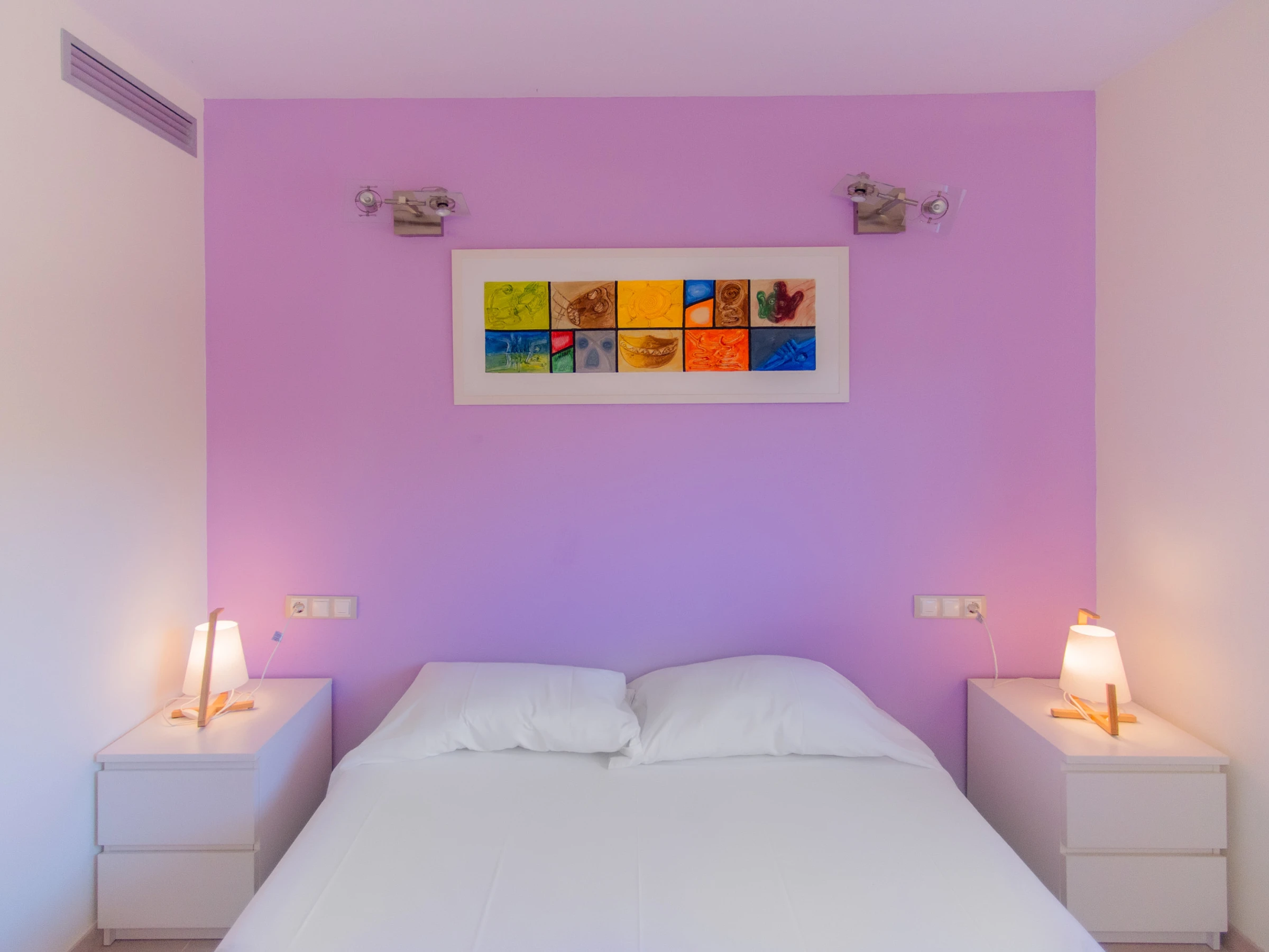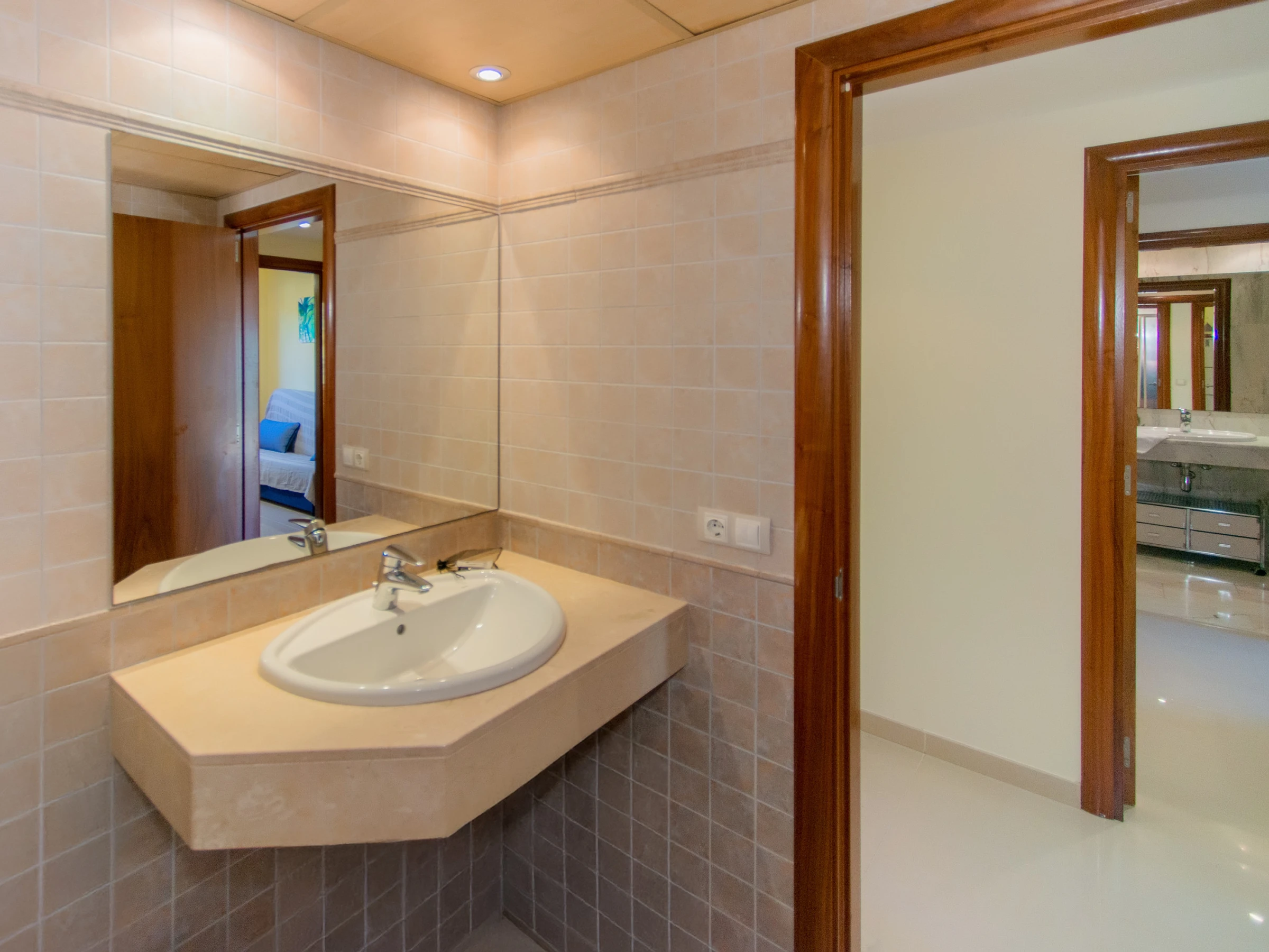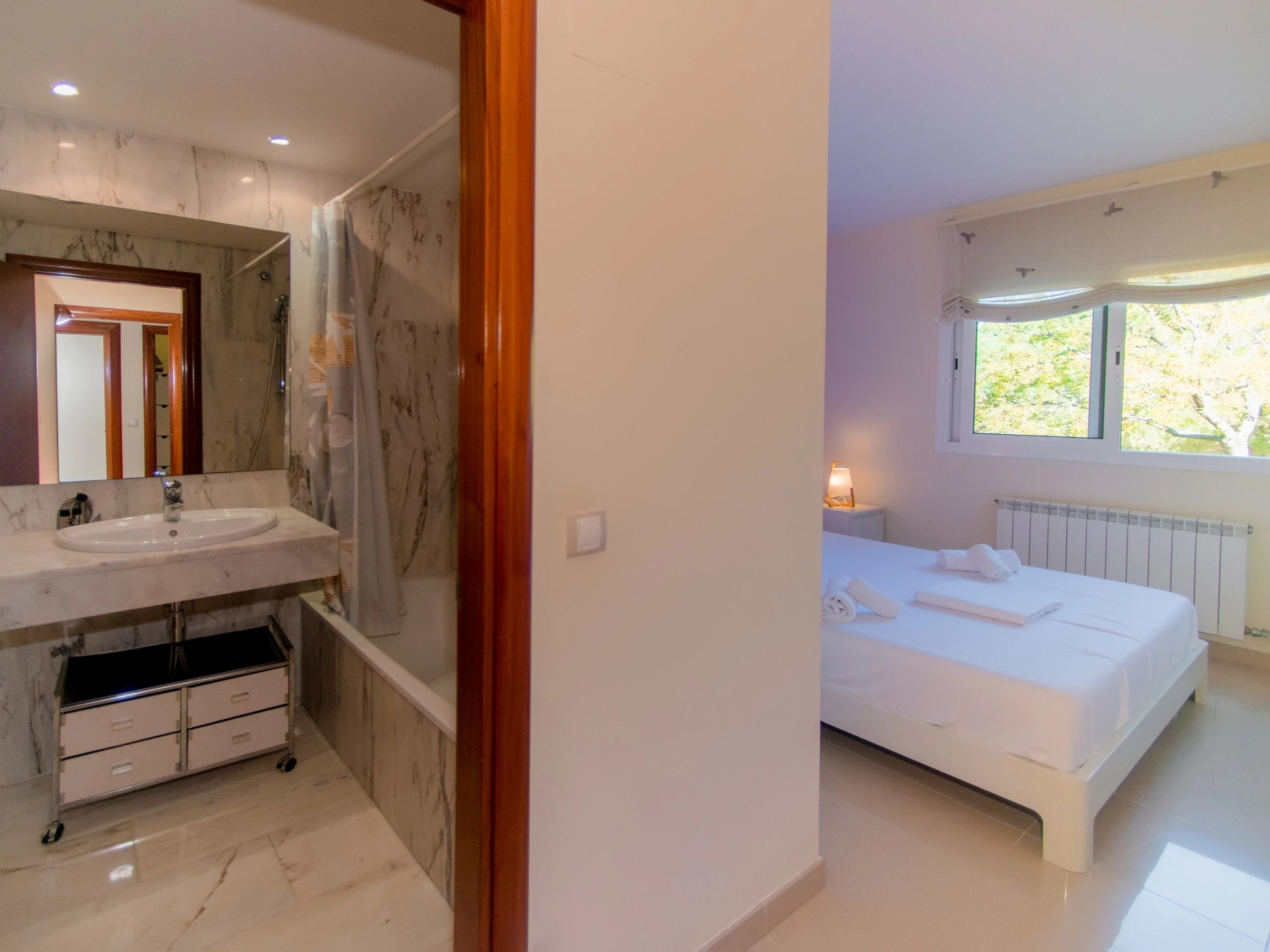 This bright and cosy apartment is ideal for a family holiday or with friends. The spacious living room with panoramic windows is full of natural light, and the comfortable sofa and modern television create a comfortable and welcoming atmosphere. From the living room, you can access a terrace with views of the pool, an ideal place to have your morning coffee and spend the afternoon.