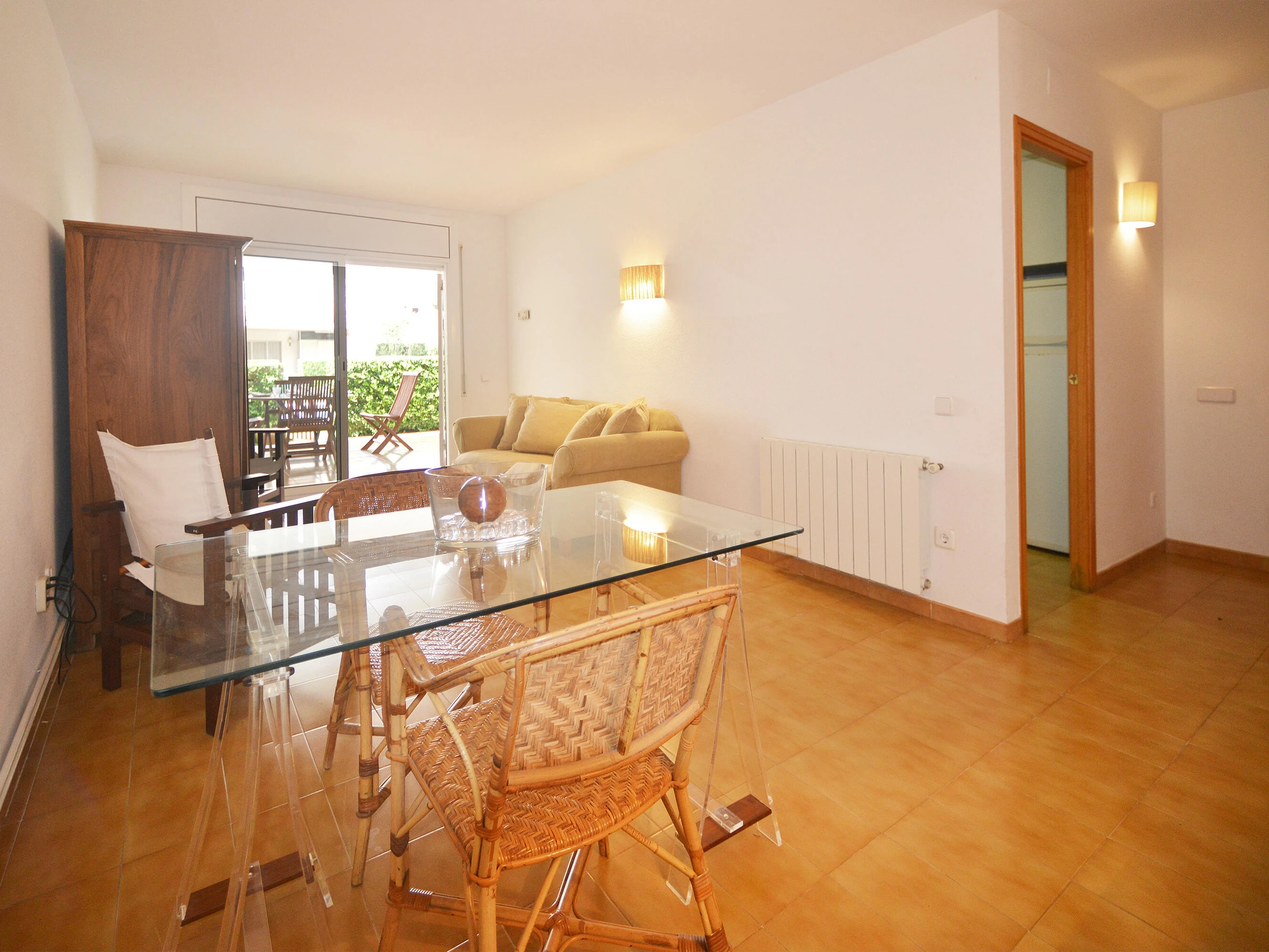 Your Perfect Getaway in Platja d'Aro Awaits! Unbeatable Location and Comfort Discover our fantastic ground-floor apartment, the ideal retreat for an unforgettable holiday on the Costa Brava. Strategically located just 300 meters from the beach and 400 meters from the lively center of Platja d'Aro, you will enjoy tranquility without giving up the fun. Interior Space and Comfort for 5 Guests This apartment, is in excellent condition and offers everything you need for your rest: * 3 Bright Bedrooms: Two double rooms and one single room, with a total capacity for 5 people. * Full Bathroom: It has a full bathroom with a shower for greater convenience. * Cozy Living/Dining Room with direct access to the terrace. Internet access is included. * Separate Kitchen: Fully equipped with a dishwasher, oven, microwave, refrigerator, toaster, and filter coffee maker, plus all the necessary crockery and kitchen utensils.Laundry Room: Separate room with a washing machine. Enjoy an Exclusive Community Oasis! The true charm lies outdoors: * Large Terrace and Direct Access: Step out from your private terrace directly onto thelarge communal garden, a green space perfect for children to play and adults to relax. * Dream Pool: Cool off and sunbathe in the stunning communal pool, the center of fun during your summer days. * Parking: Assigned outdoor parking space within the residential complex, right in front of the apartment entrance. Book your stay and enjoy a dream holiday with a pool, garden, and beach just a few steps away.