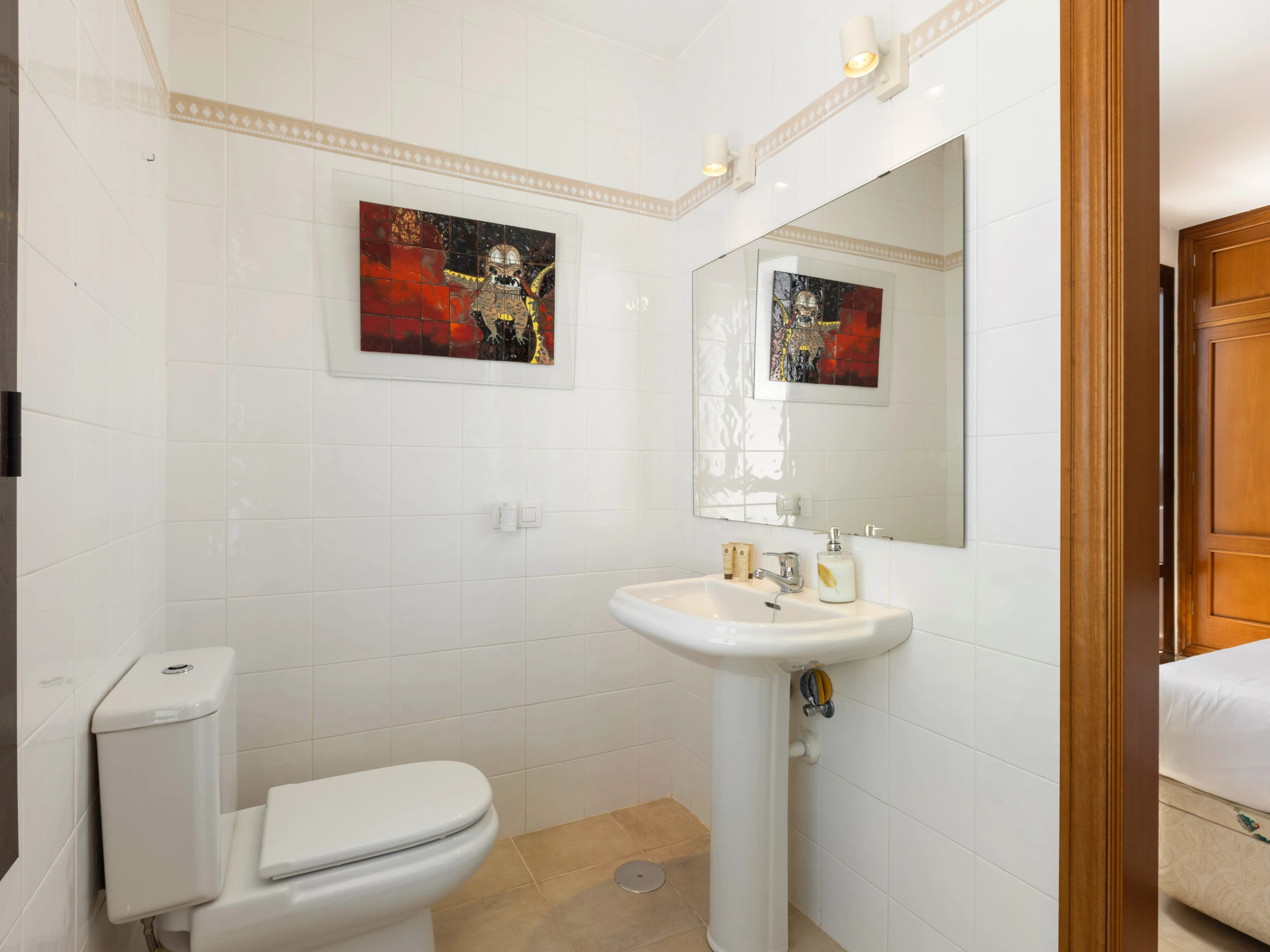 The property has two double bedrooms: the main one with a double bed and en-suite bathroom, and the second with two single beds, ideal for families or groups of friends. A second full bathroom offers comfort and functionality for all guests.