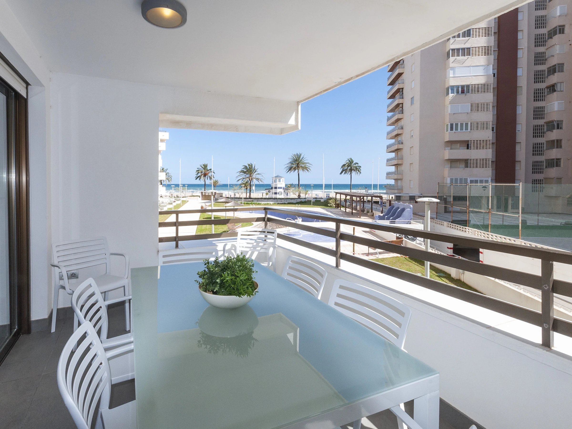 It is located 15 m from Playa de Gandia sand beach, 100 m from PASEO MARITIMO NEPTUNO 99 bus station, 400 m from SPAR supermarket, 500 m from Playa L´ahuir sand beach ", 4 km from the city "Grao de Gandia/ Puerto", 5 km from the railway station "Estación Tren Xeraco", 8 km from the city "Gandia", 10 km from the railway station "Estación Tren Gandia", 30 km from the water park "Aquopolis Cullera", 30 km from the golf course "Oliva Nova Golf", 40 km from the rocky beach "Les Rotes (Denia)", 50 km from the natural park "Albufera", 70 km from the airport "Valencia Airport", 90 km from the "Terra Mítica" amusement park, 150 km from the "Alicante Airport" airport and is located in an ideal area for families and next to the sea.
