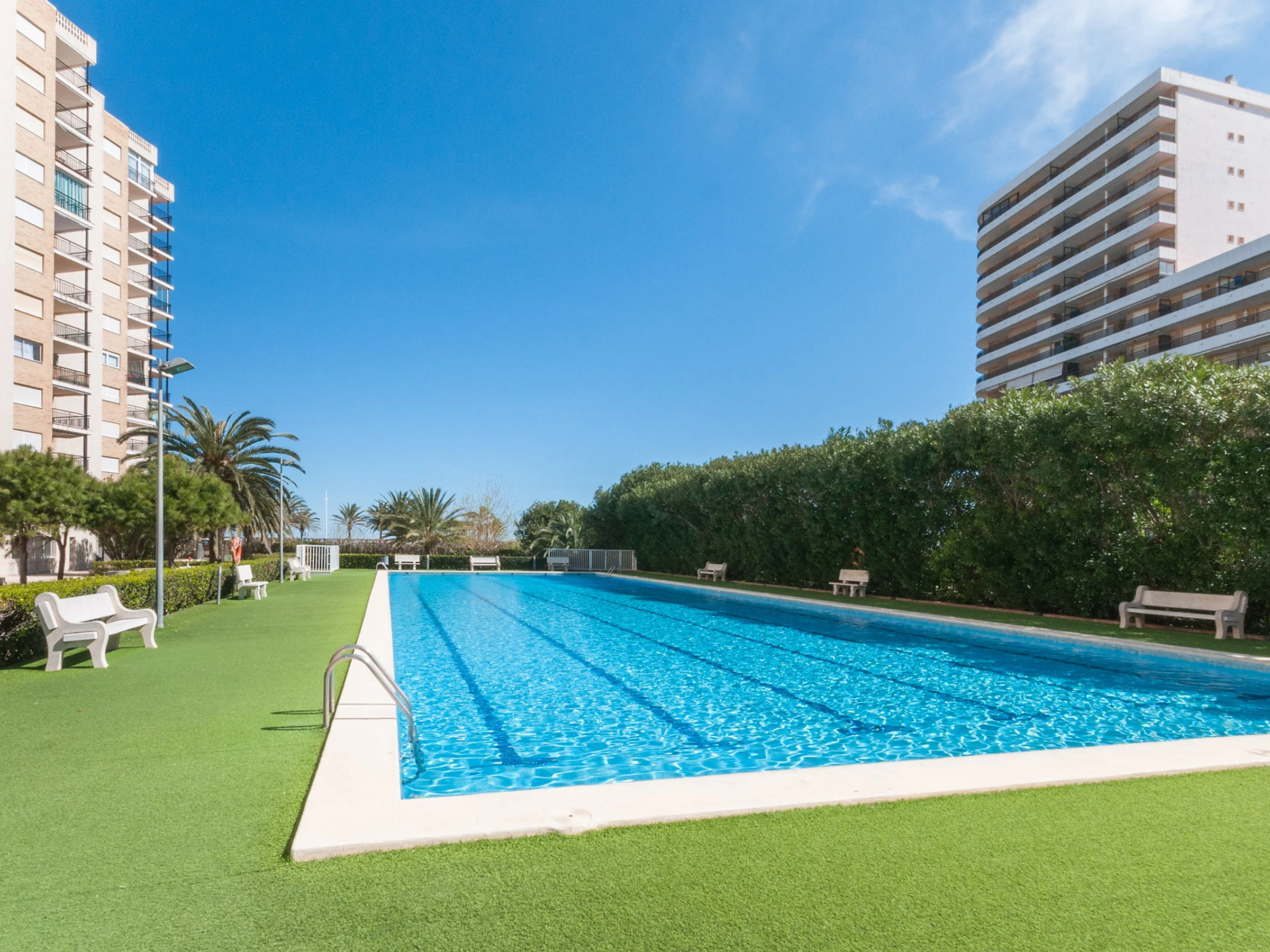 The property is located 5 m sand beach "Playa Zona Norte", 200 m bus station "Bus local (Playa - Gandia, Gandia - Playa)", 475 m sand beach "Playa Can", 500 m supermarket "Mas y Mas Supermercado", 7 km city "Centro Histórico Gandia", 7 km train station "Estación Tren Gandia", 20 km golf course "Oliva Nova Golf", 25 km water park "Aquopolis", 35 km rock beach "Les Rotes, Denia", 60 km nature reserve "La Albufera", 80 km amusement park / theme park "Terra Mítica", 80 km airport "Manises, Valencia", 600 km ski slope "Pirineos" and it is located in a a family-friendly zone and next to the sea.