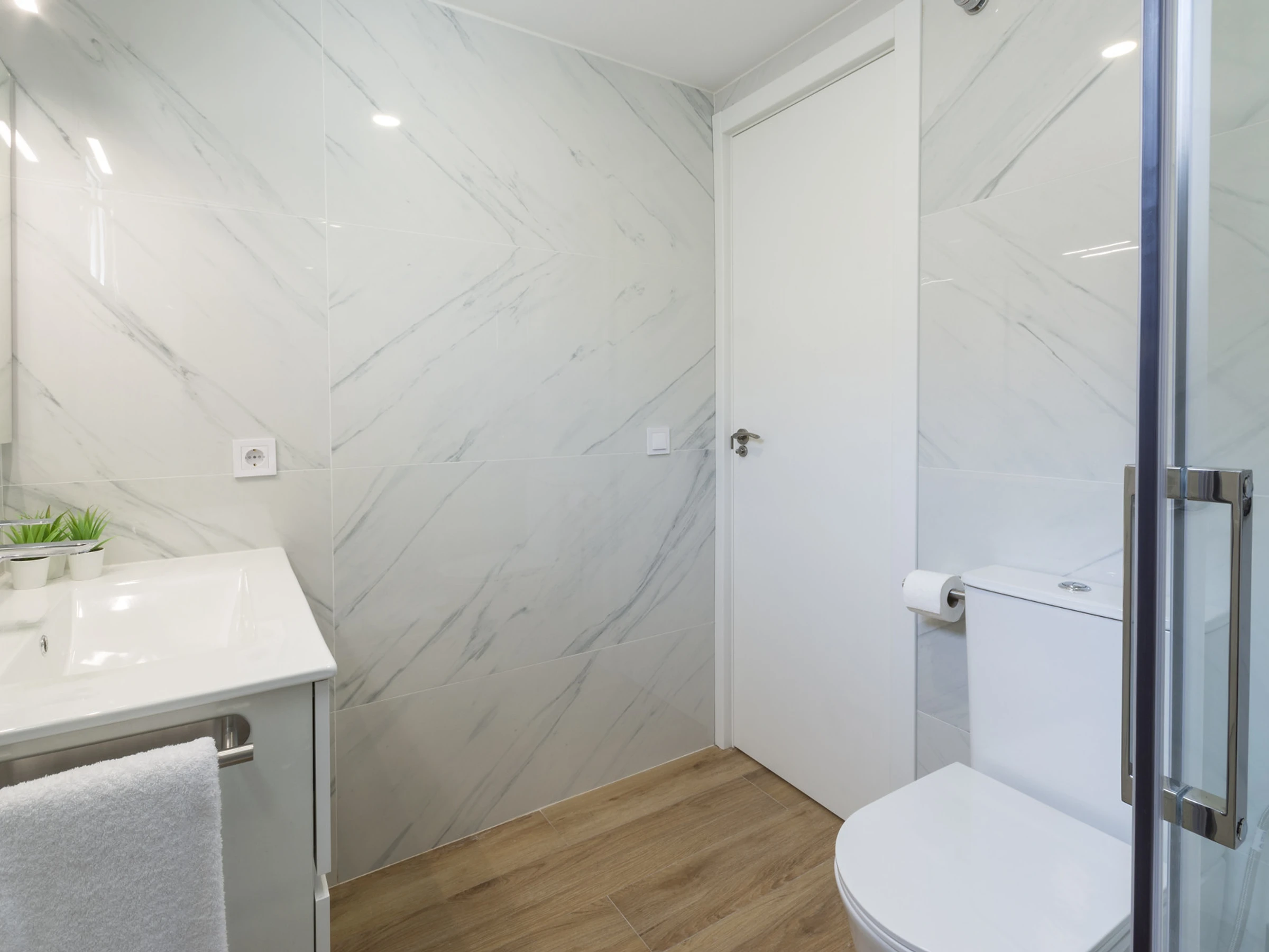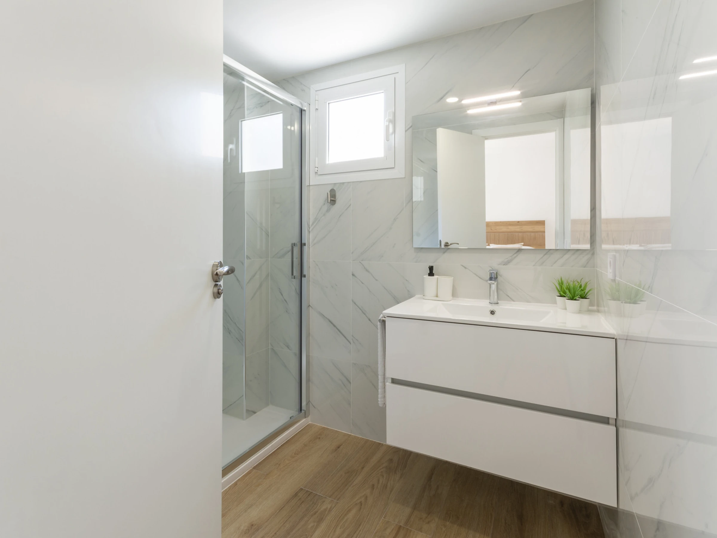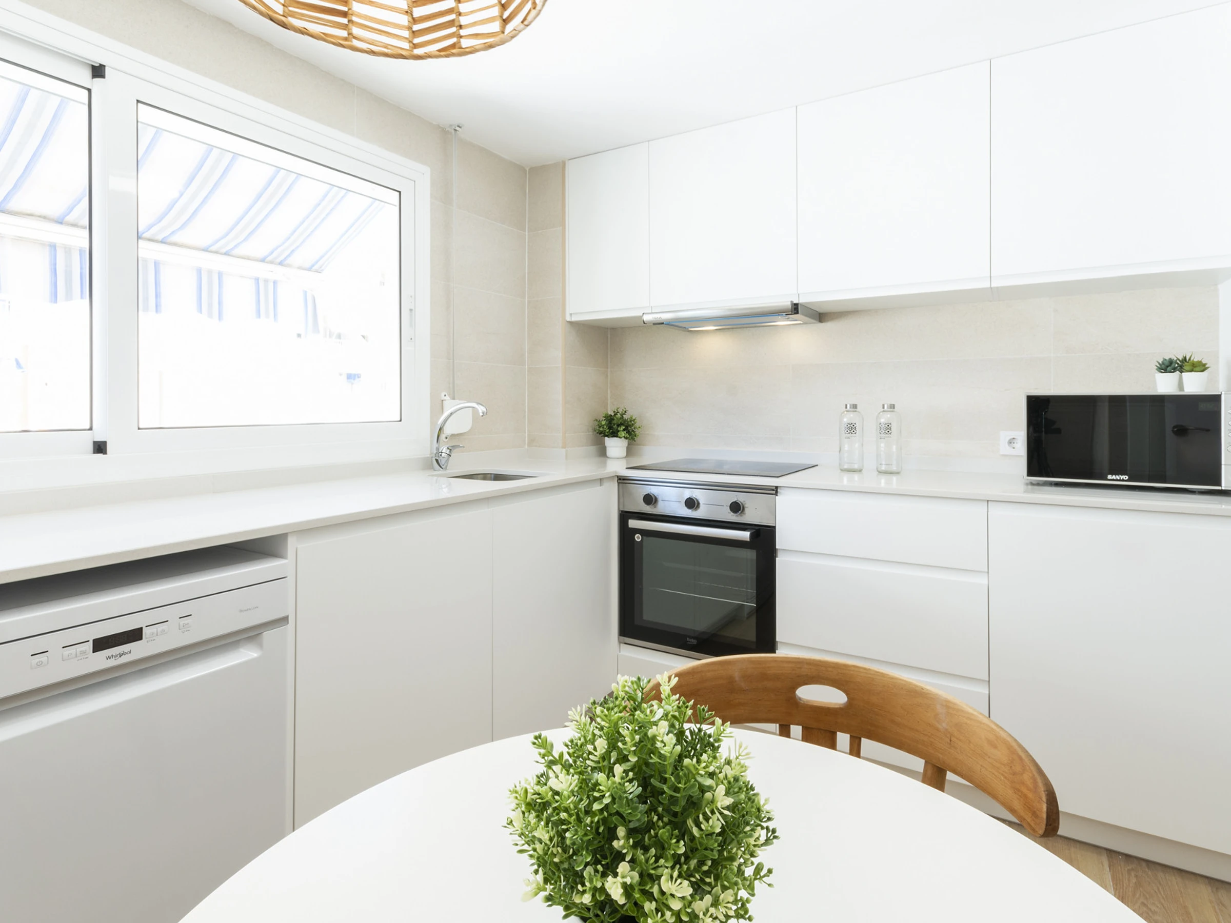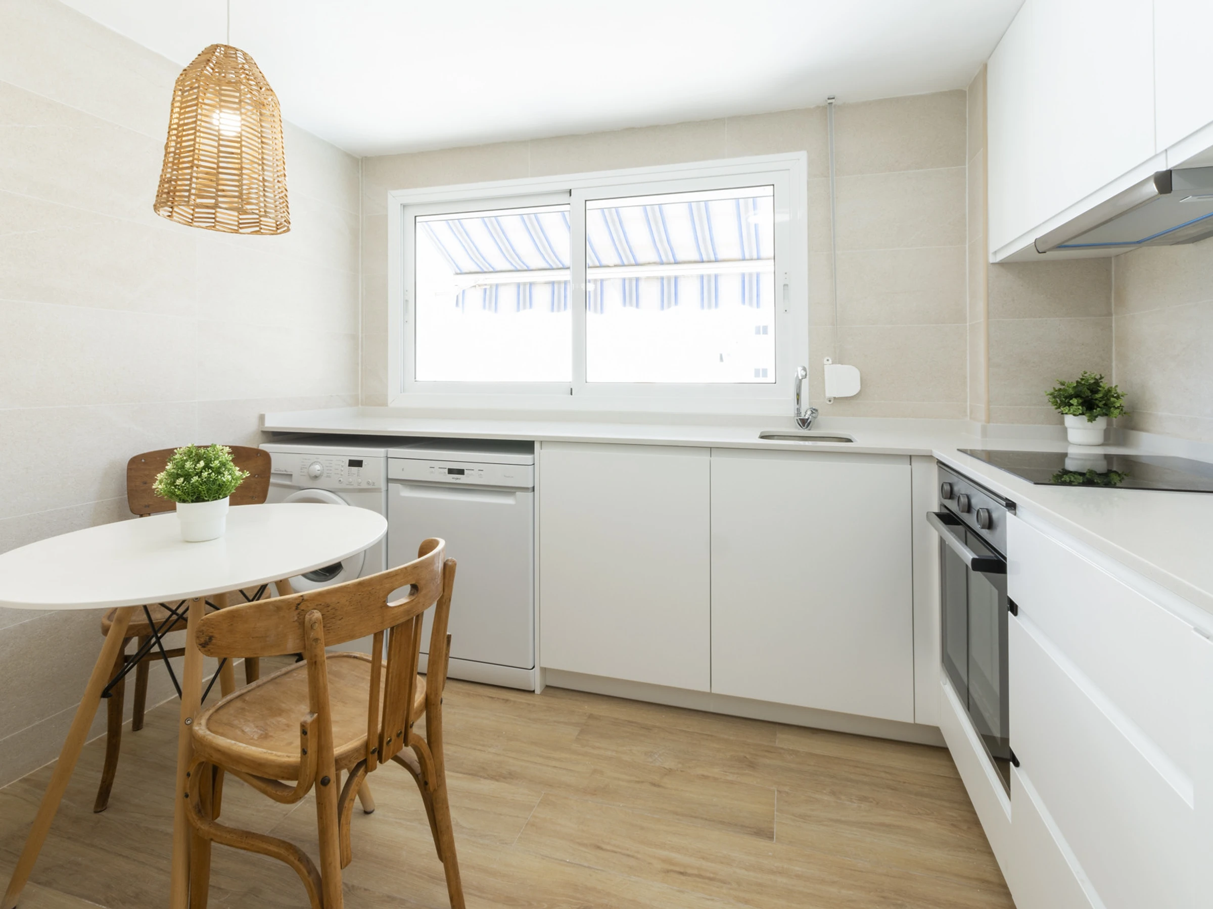 The apartment has an area of 90 m² and is distributed in three bedrooms, two bathrooms, a living-dining room and a complete kitchen. The bedrooms are equipped with fitted wardrobes and air conditioning. The bathrooms are equipped with a shower for easy access. The living room has a large television. The kitchen is equipped with all the necessary appliances such as a fridge, freezer, oven, hob, washing machine and dishwasher.
