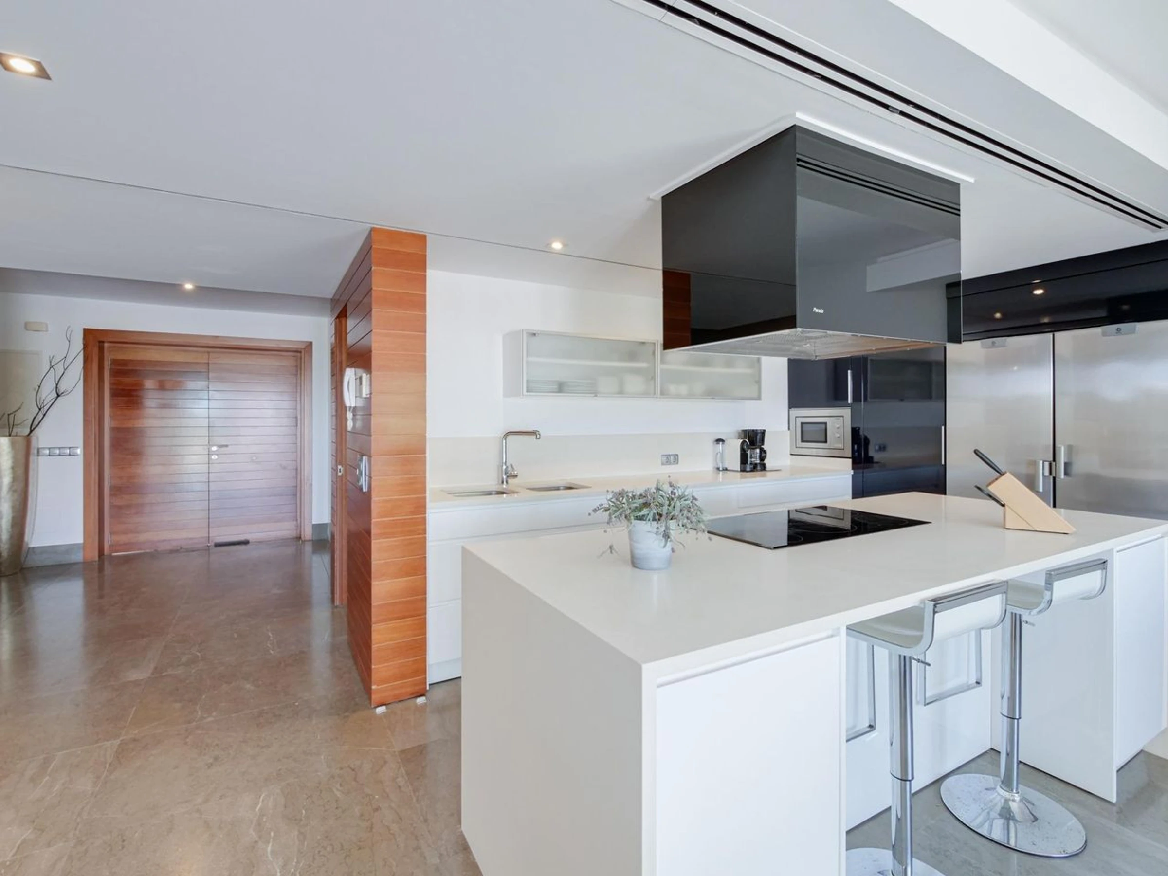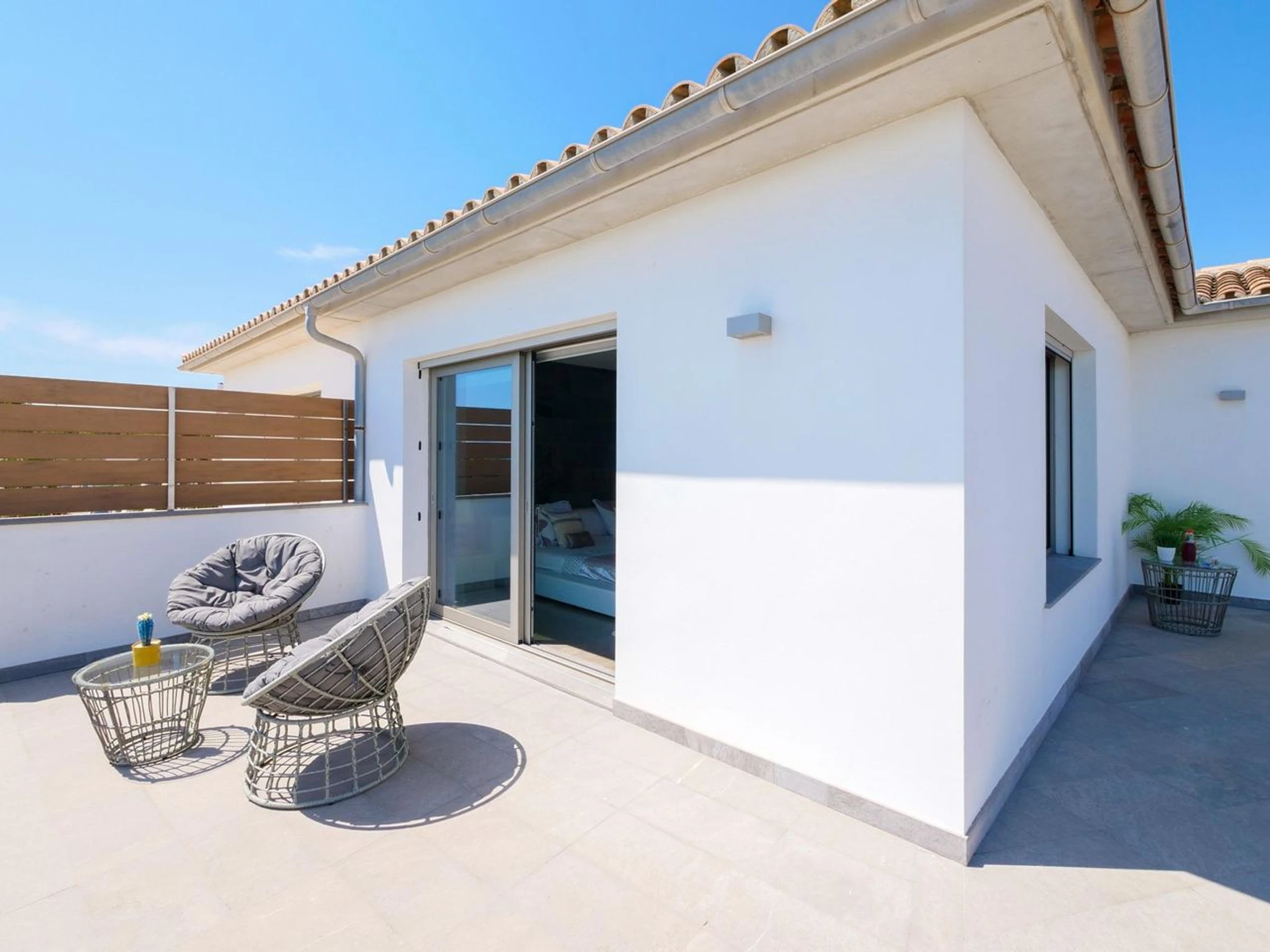 It features 3 elegant bedrooms (one with an en-suite bathroom and two with private bathrooms), a fully equipped kitchen, a spacious and bright living room, a guest toilet, air conditioning, and private parking.