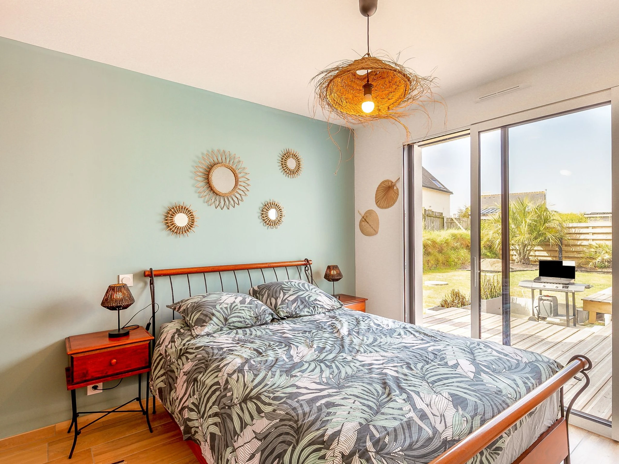 "Les Lagons du Lividic", 5-room house 117 m2. Modern and tasteful furnishings: large living/dining room 53 m2 with TV (flat screen). Exit to the terrace, to the swimming pool. 1 room with 1 french bed (160 cm, length 200 cm), electric shutters. Exit to the terrace. 1 room with 1 x 2 bunk beds (90 cm, length 200 cm), electric shutters with shower/WC and double hand-basin. 1 room with 1 french bed (140 cm, length 190 cm), electric shutters. Exit to the terrace. 1 room with 2 beds (80 cm, length 200 cm), electric shutters with separate WC, shower and double hand-basin. Large, open kitchen (oven, dishwasher, 3 induction hot plates, toaster, kettle, freezer, electric coffee machine). Gas heating. Large terrace 100 m2, south facing position, lawn. Terrace furniture, barbecue (portable), deck chairs (8). Facilities: washing machine, dryer, hair dryer. Internet (WiFi, free). Please note: non-smoking house. Smoke alarm, fire extinguisher. Please note: The bedroom with the 160x200 bed and the shower/WC in this part of the house are suitable for people with reduced mobility. [hidden]
