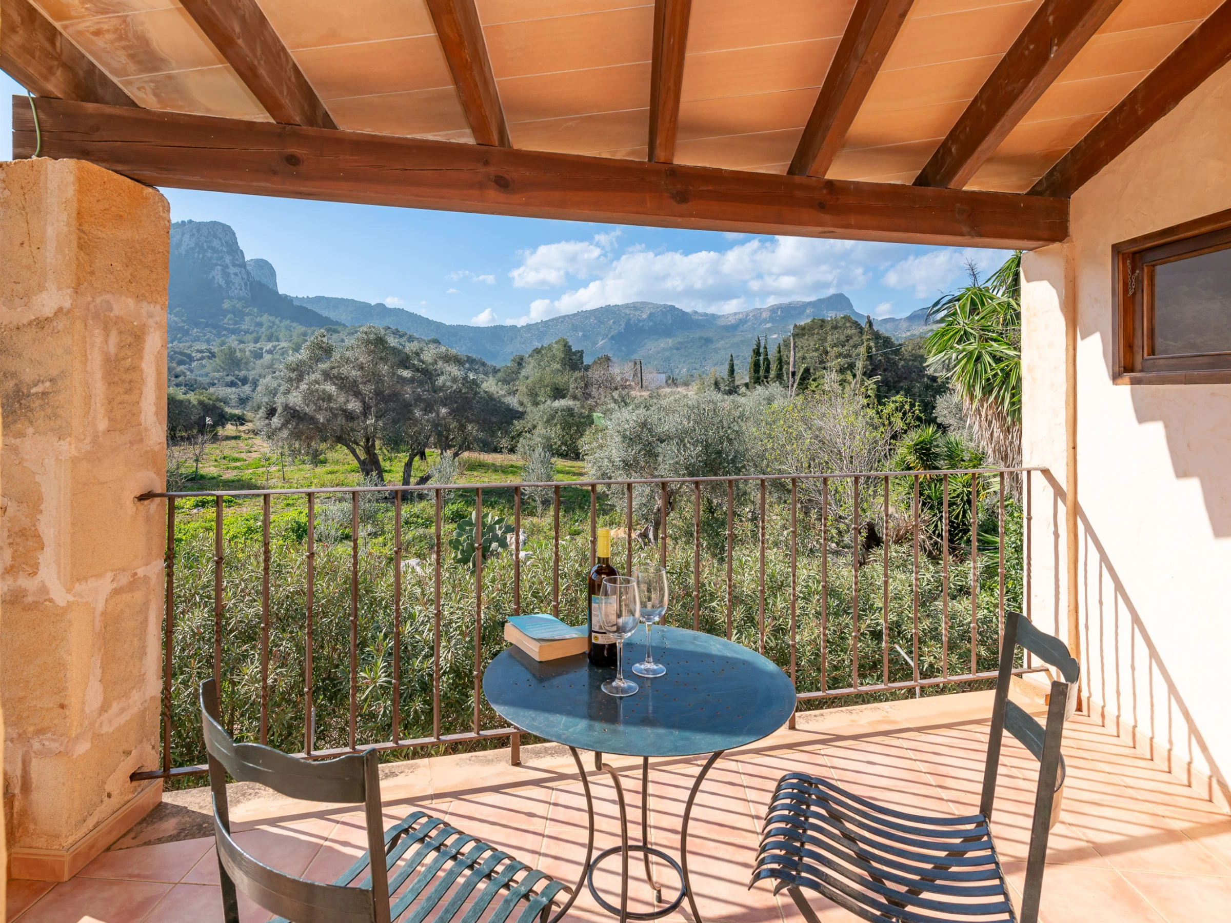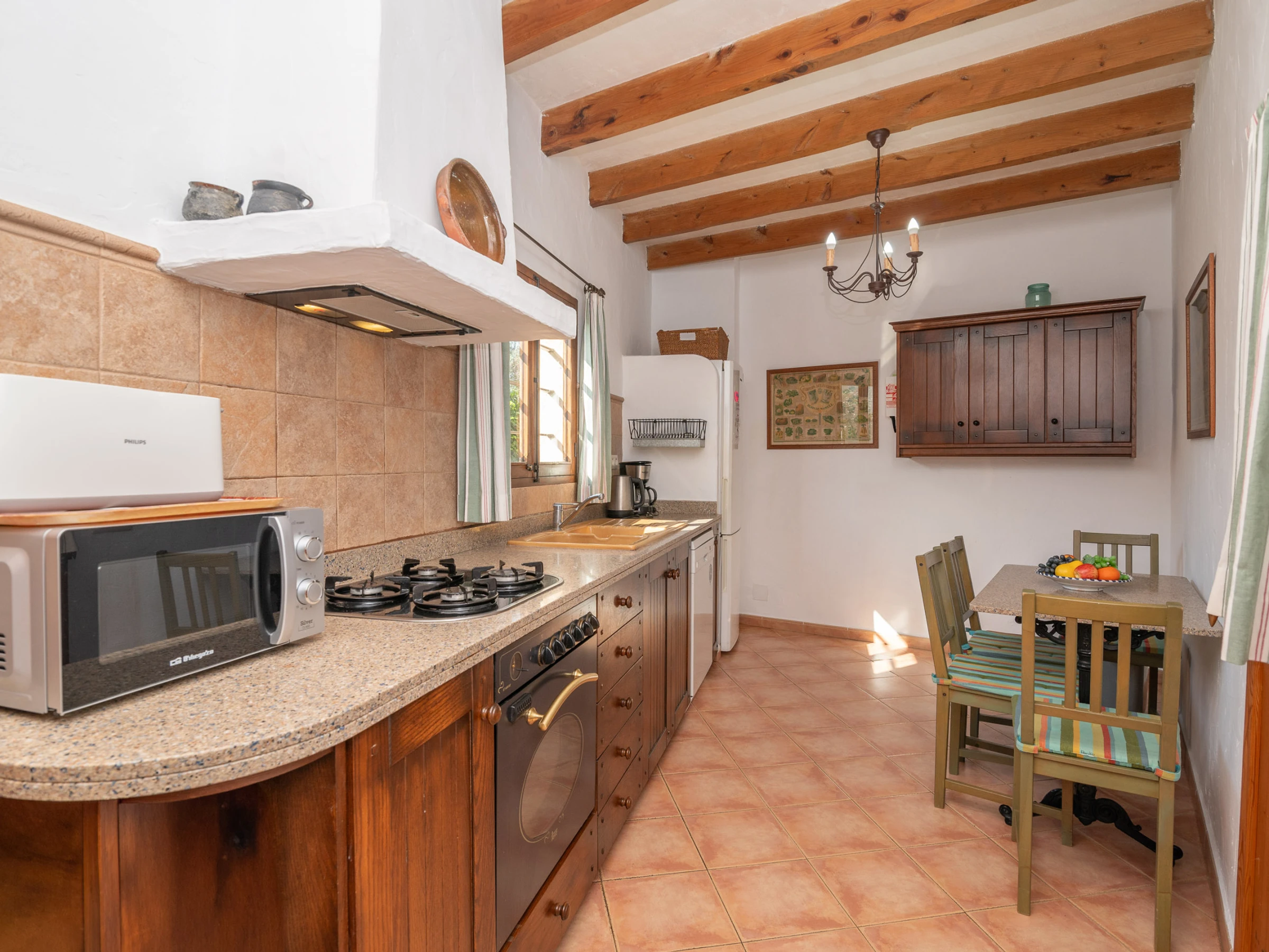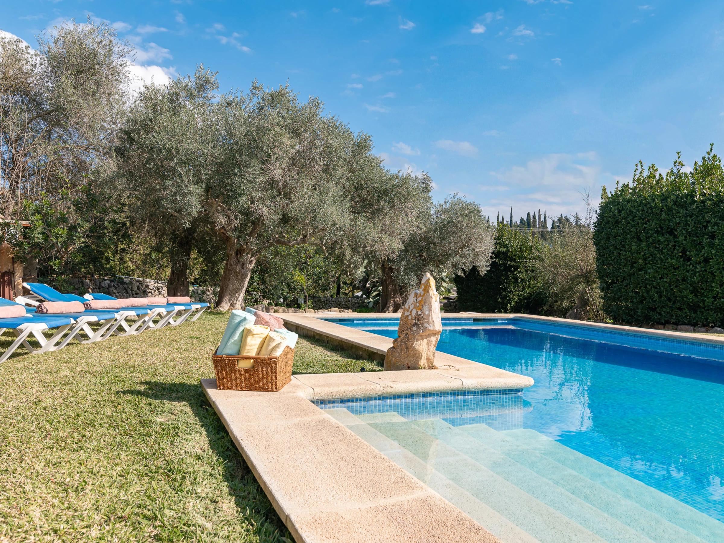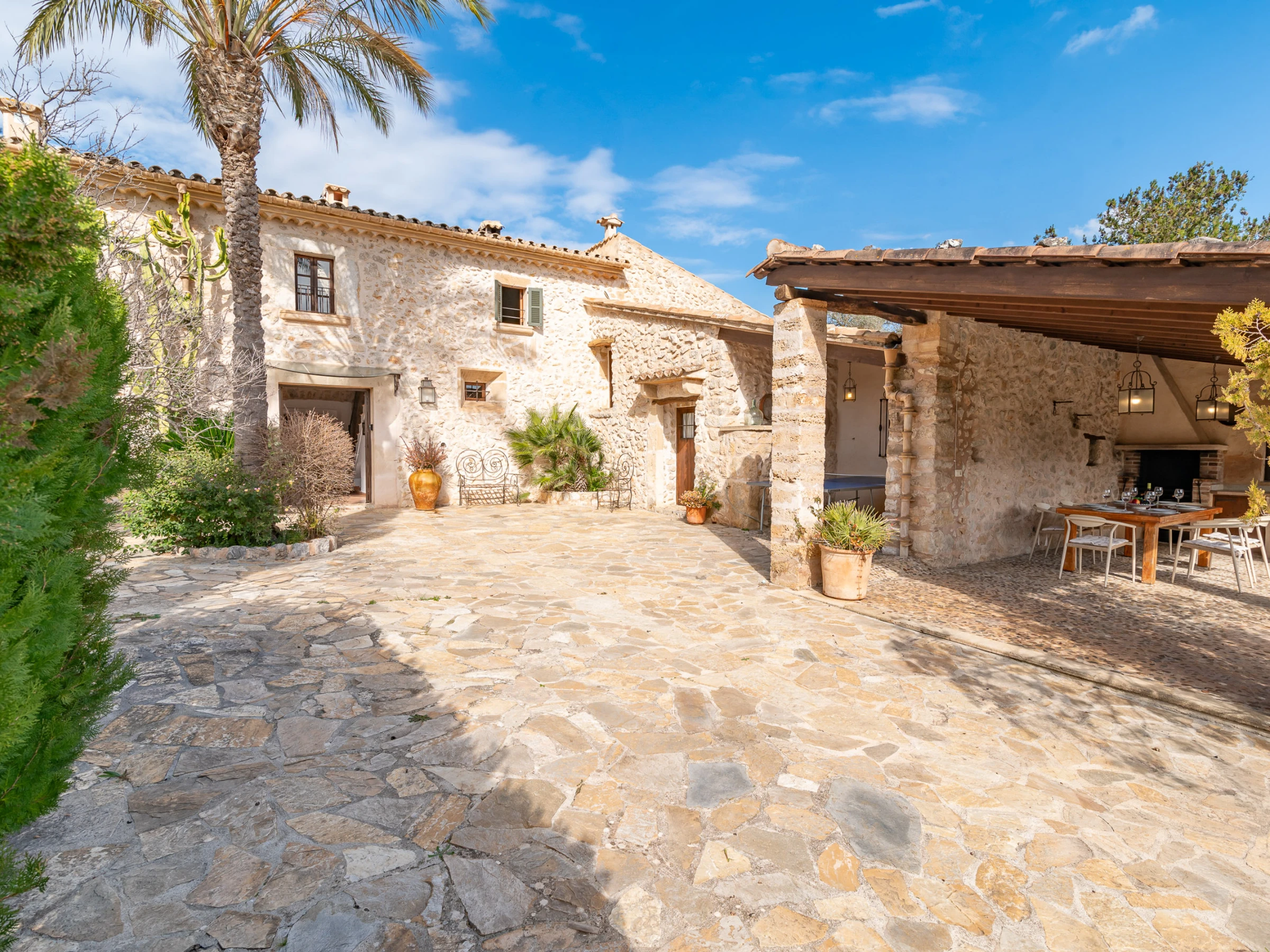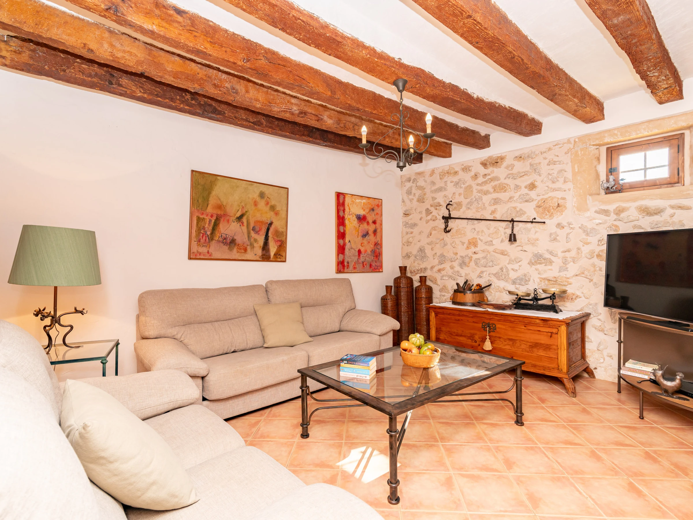 The villa is distributed over two floors and has an annex next to the swimming pool, with a double bedroom and a full bathroom, ideal for those seeking privacy. In the main house, a bright dining room with wooden beams and Mallorcan elements provides access to a fully equipped kitchen and an additional bathroom. On the upper floor, there is a cosy living room, a double bedroom and a room with single beds, as well as the main bedroom with a balcony and views of the countryside. The bedrooms share a bathroom with stone walls and a skylight.