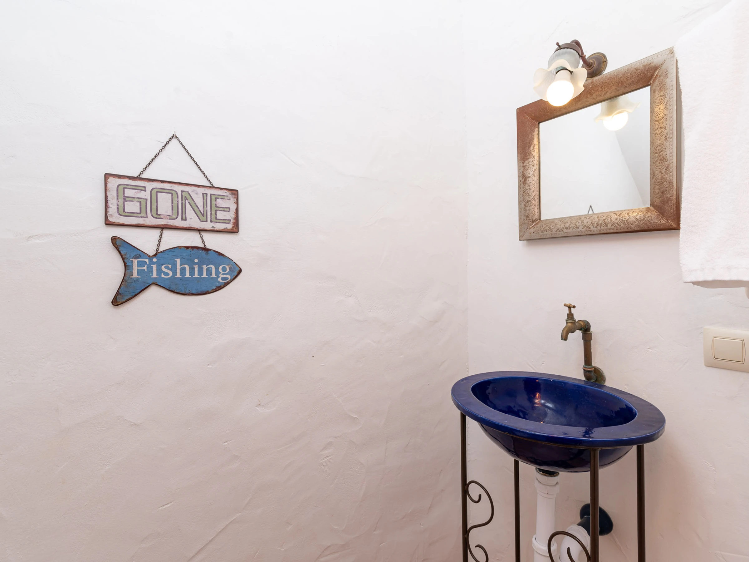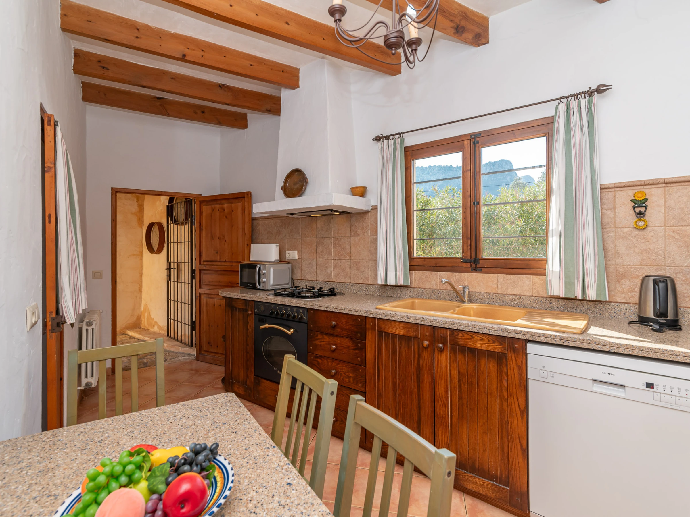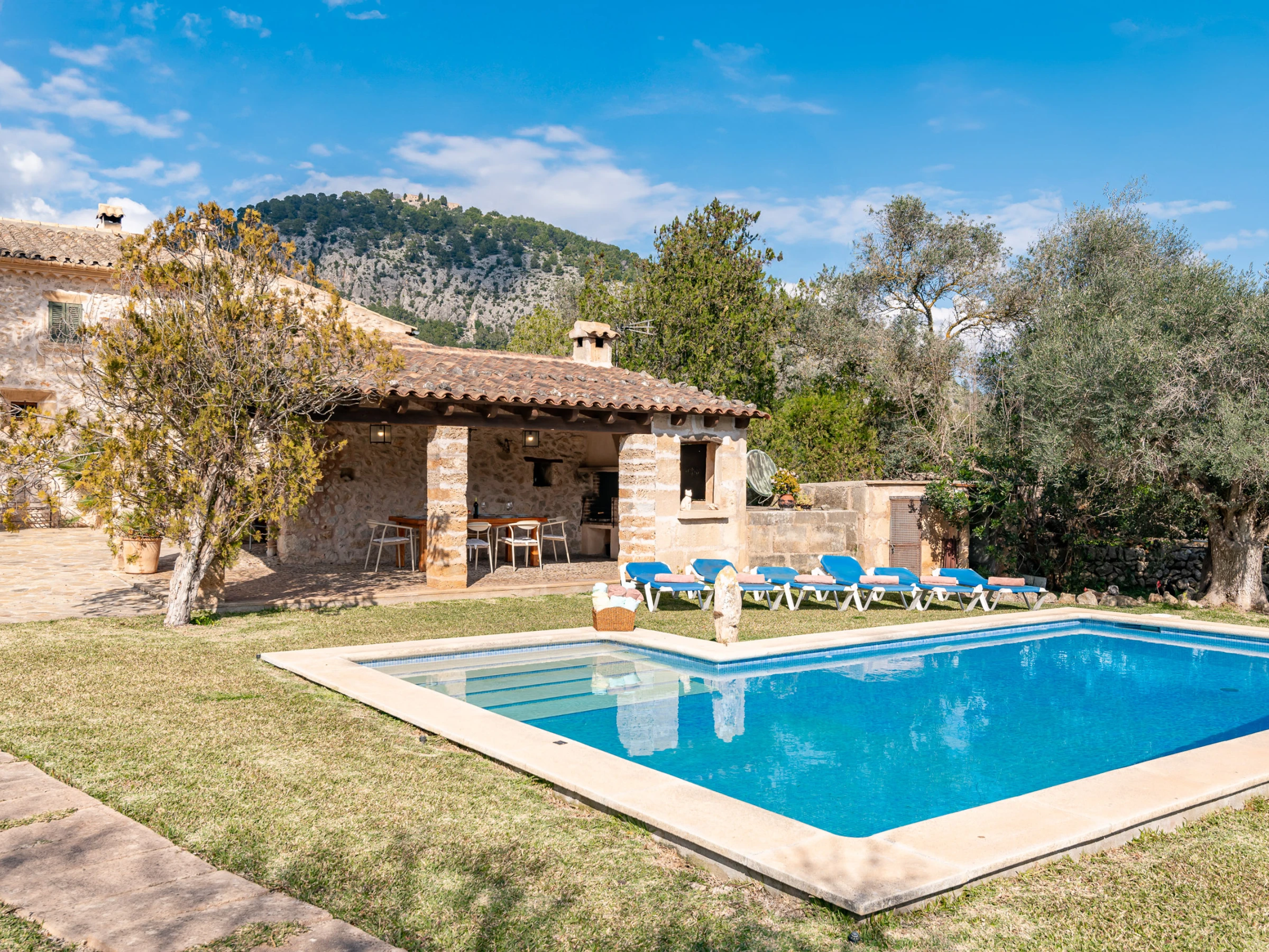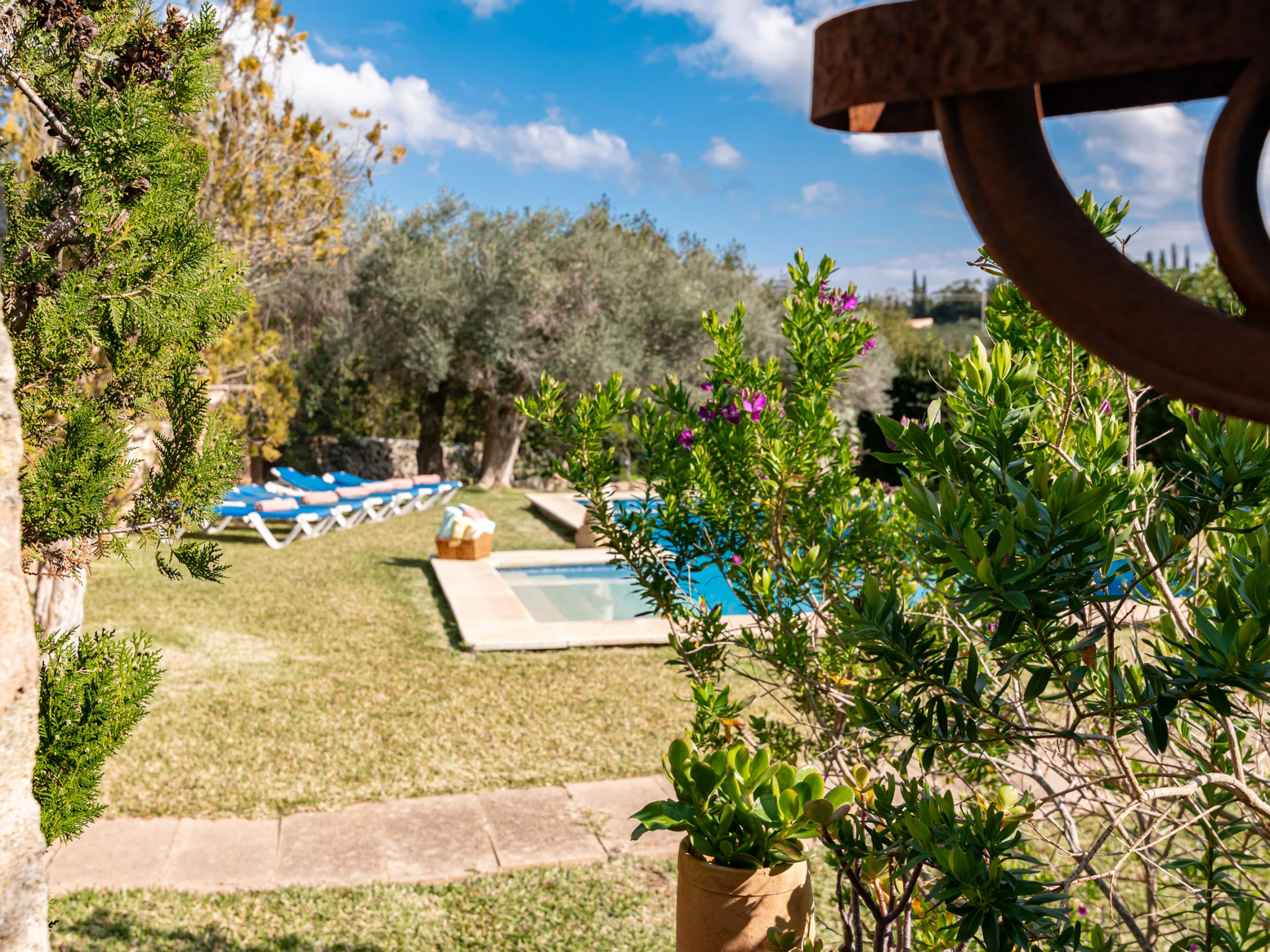 The villa is distributed over two floors and has an annex next to the swimming pool, with a double bedroom and a full bathroom, ideal for those seeking privacy. In the main house, a bright dining room with wooden beams and Mallorcan elements provides access to a fully equipped kitchen and an additional bathroom. On the upper floor, there is a cosy living room, a double bedroom and a room with single beds, as well as the main bedroom with a balcony and views of the countryside. The bedrooms share a bathroom with stone walls and a skylight.