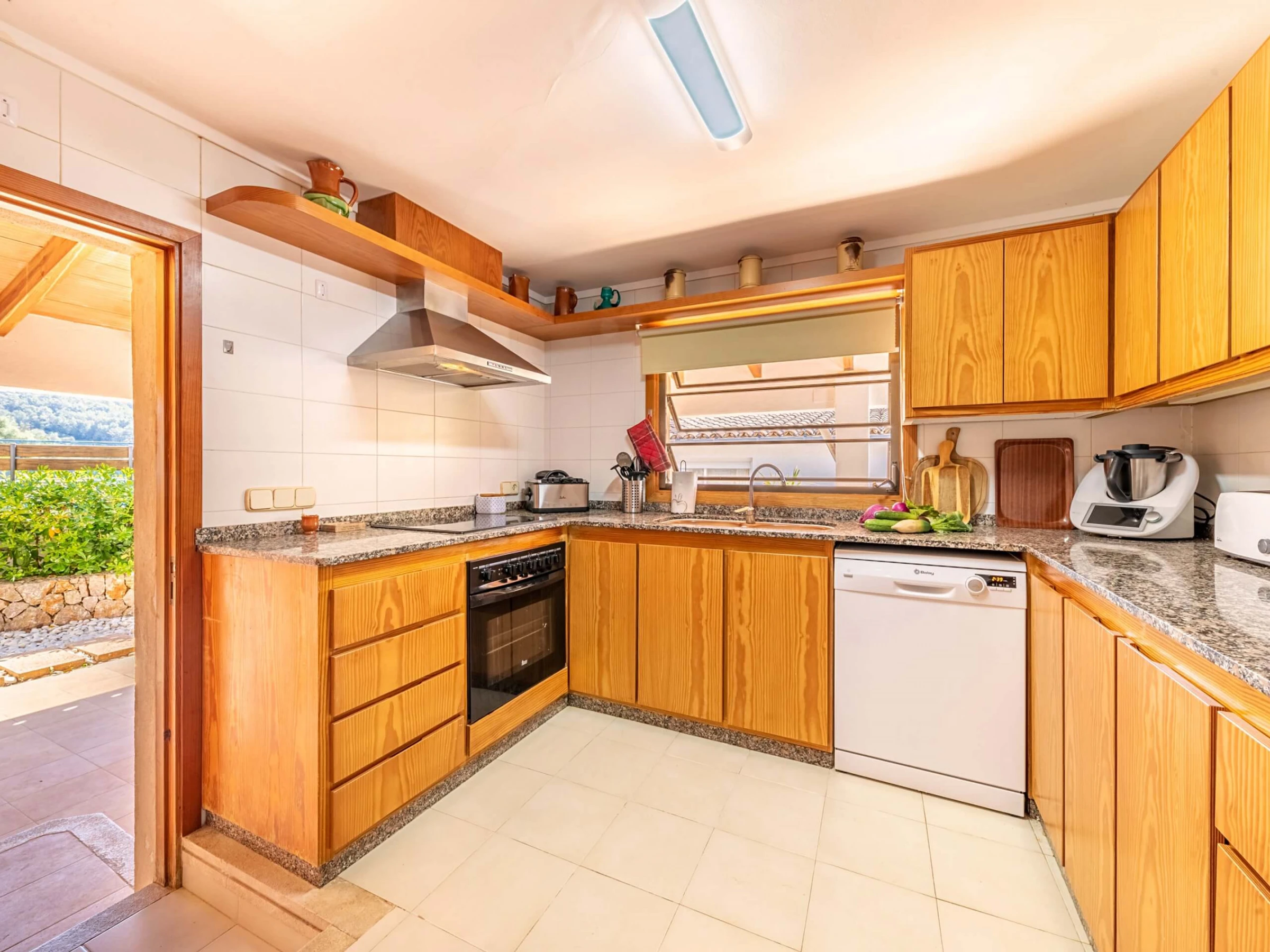 This beautiful villa for rent in Pollensa, Mallorca, is the ideal place to enjoy relaxing and luxurious holidays. With a privileged location, overlooking the mountains and valley, this three-bedroom property offers everything you need for a comfortable and pleasant stay.