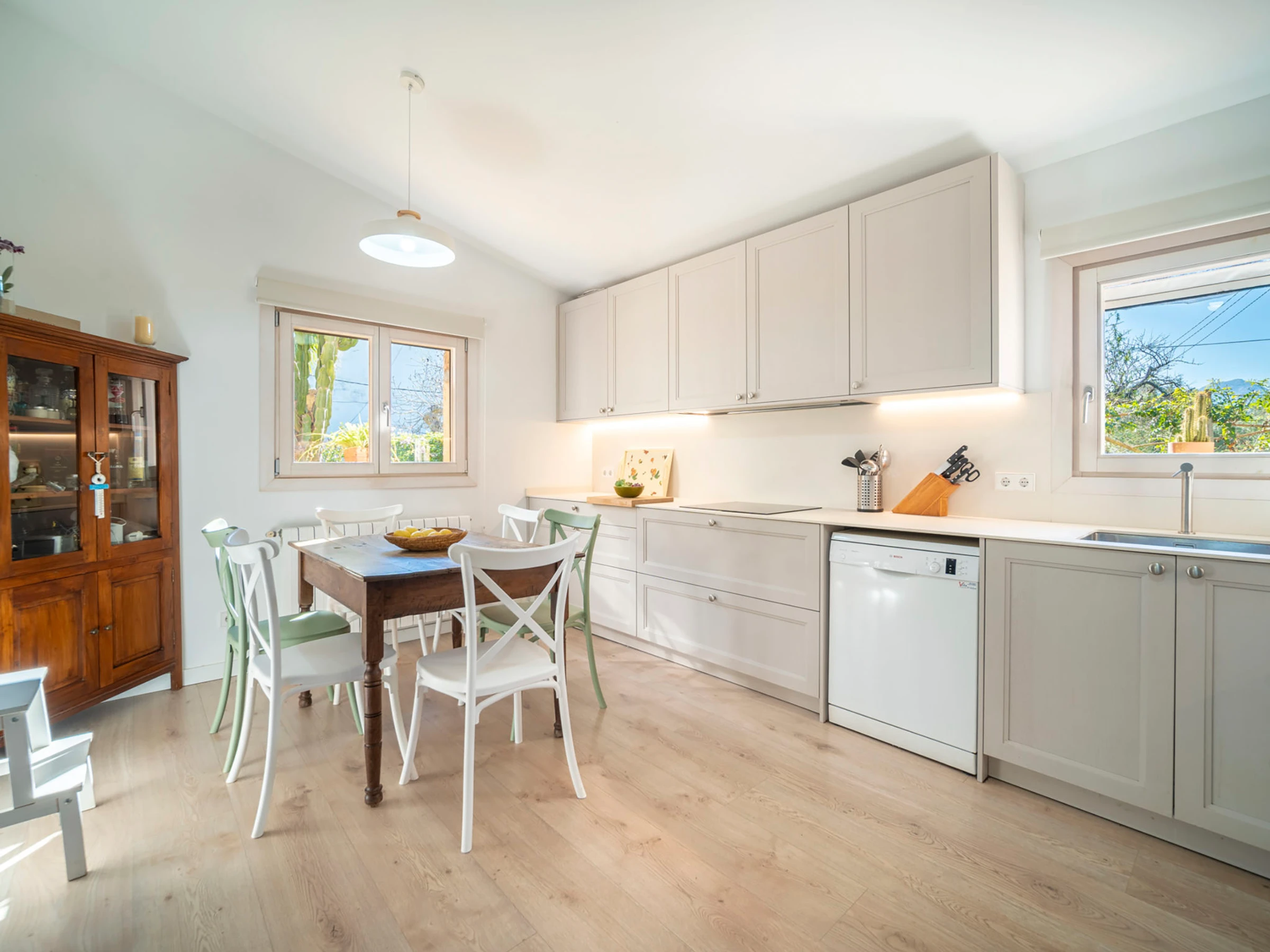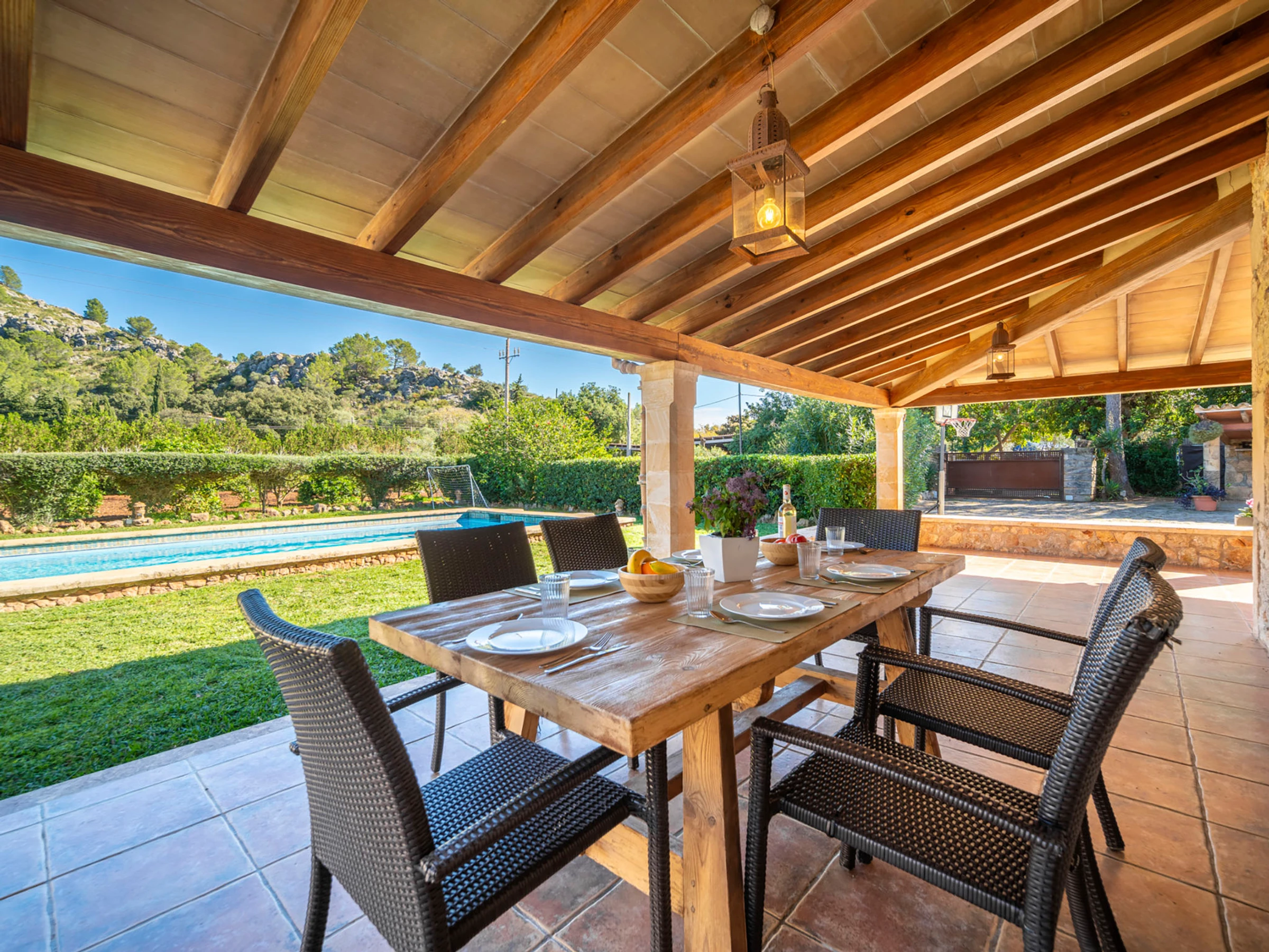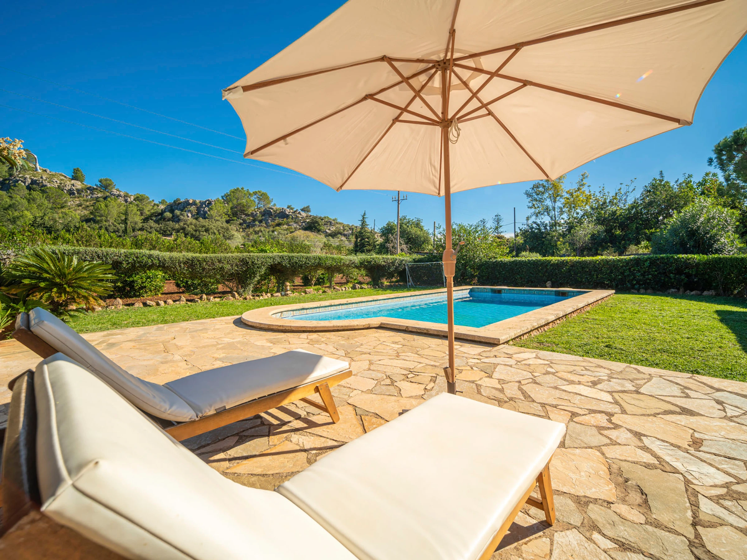 Large, beautiful, comfortable farm estate "Can Vins", renovated, surrounded by fields. Outside the resort Pollença, 2 km from the edge of the forest, 5.6 km from the sea. Private: natural state property (fenced), garden with lawn and wildlife garden, orchard, swimming pool angular (8 x 4 m, depth 100 - 170 cm, seasonal availability: [hidden] - [hidden] Outdoor shower, patio, arbour, pergola, garden furniture, barbecue, pool maintenance by the owner/gardener. In the house: WiFi. Roofed, parking at the house on the premises. Supermarket 950 m, restaurant 50 m, bar 1 km, bakery 950 m, 30 minute walk to the centre, bus stop "Poligon de Pollença 1 (42043)" 550 m, sandy beach "Port de Pollença" 4.3 km, rocky beach "Cala Sant Vicenç - Cala Carbó" 4.5 km. Sports harbour 4.5 km, golf course (18 hole) 5.6 km, tennis 3.4 km, walking paths from the house 3.5 km, cycle lane 200 m. Nearby attractions: Playa de Formentor 14 km, Pueblos:Port Pollença, Alcúdia, Sa Pobla, Monasterio de Lluc 21 km, Cuevas de Campanet 17 km, Bodega Can Axartell 9 km, Palma City 54 km. Hiking paths: Serra de Tramuntana. Puig de Maria. Sa Talaia de Alcúdia. Please note: car recommended. Suitable for seniors. Object suitable for 6 adults. The owner does not accept any youth groups. Main road close by. Airfield 60 km from the property.