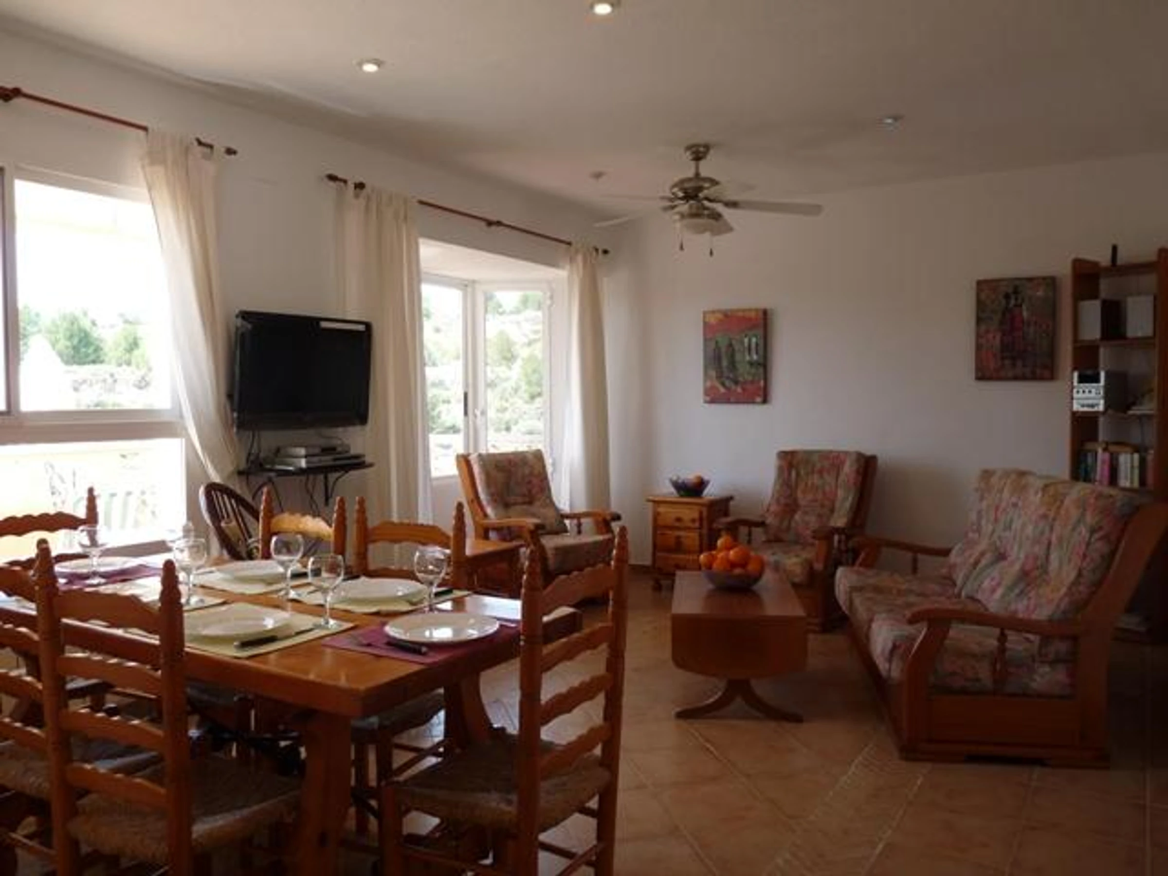 * air conditioned living room with television, DVD player, hifi and ceiling