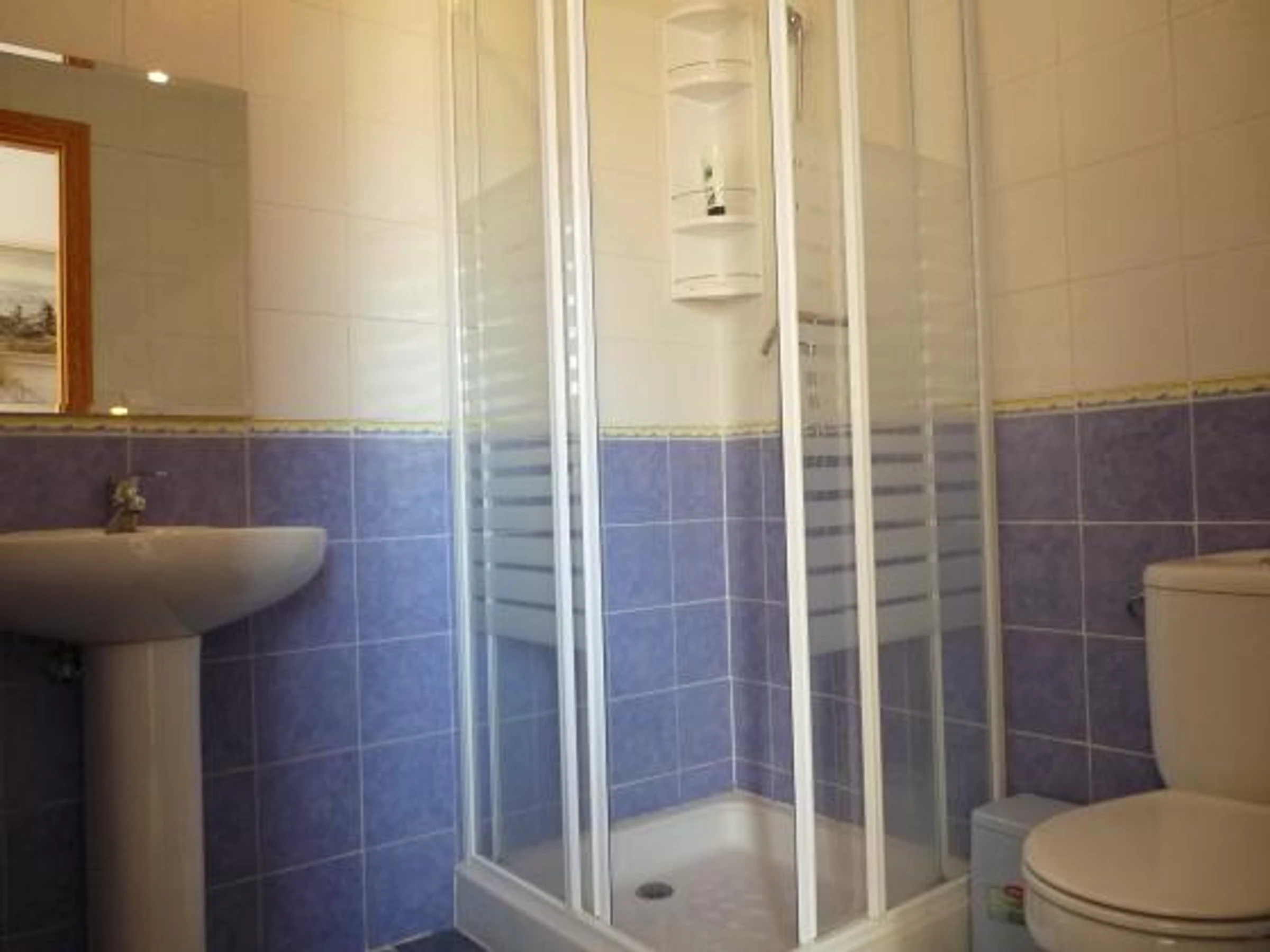 * bathroom with single washbasin, shower and toiletExterior of the villa