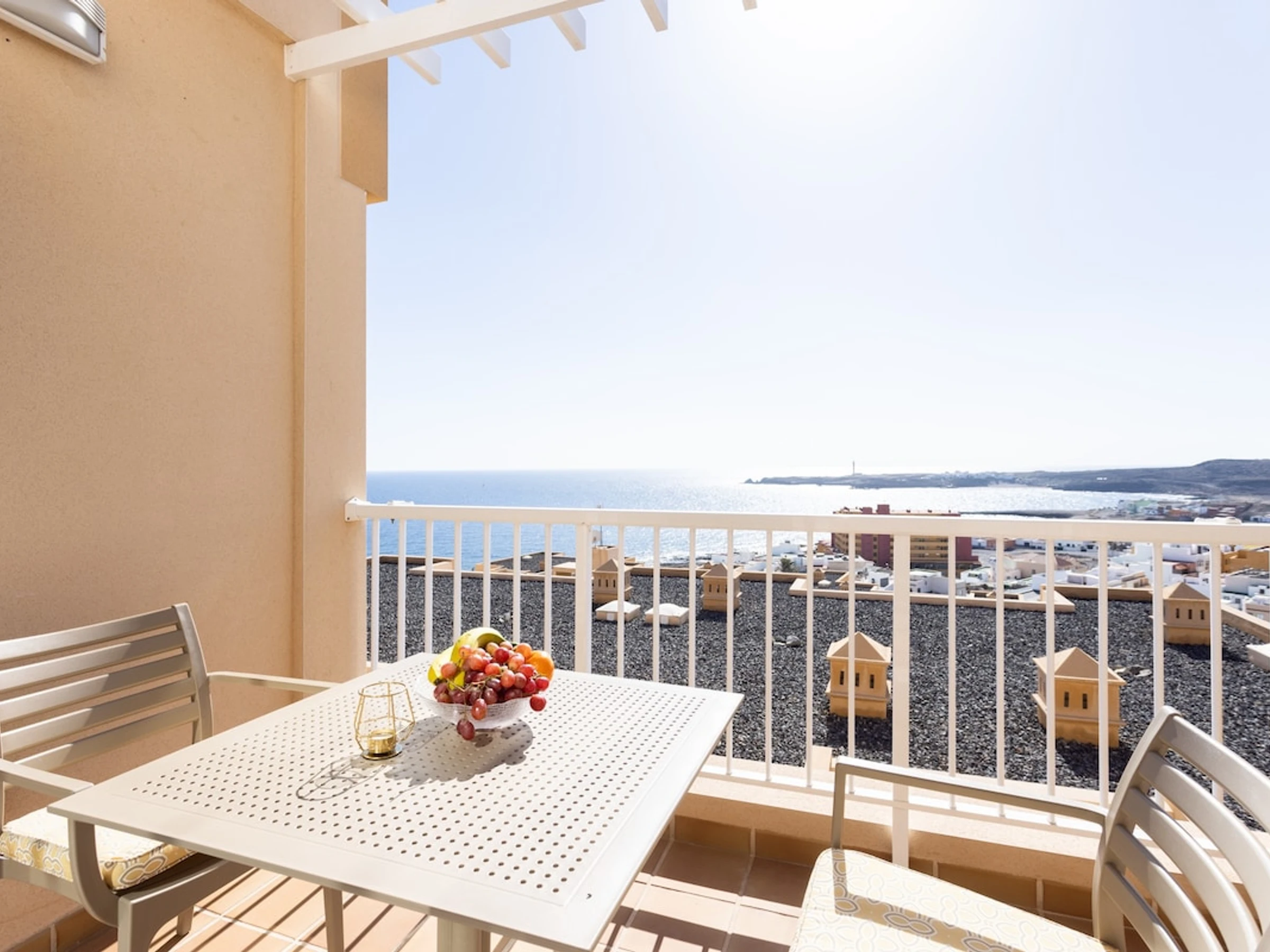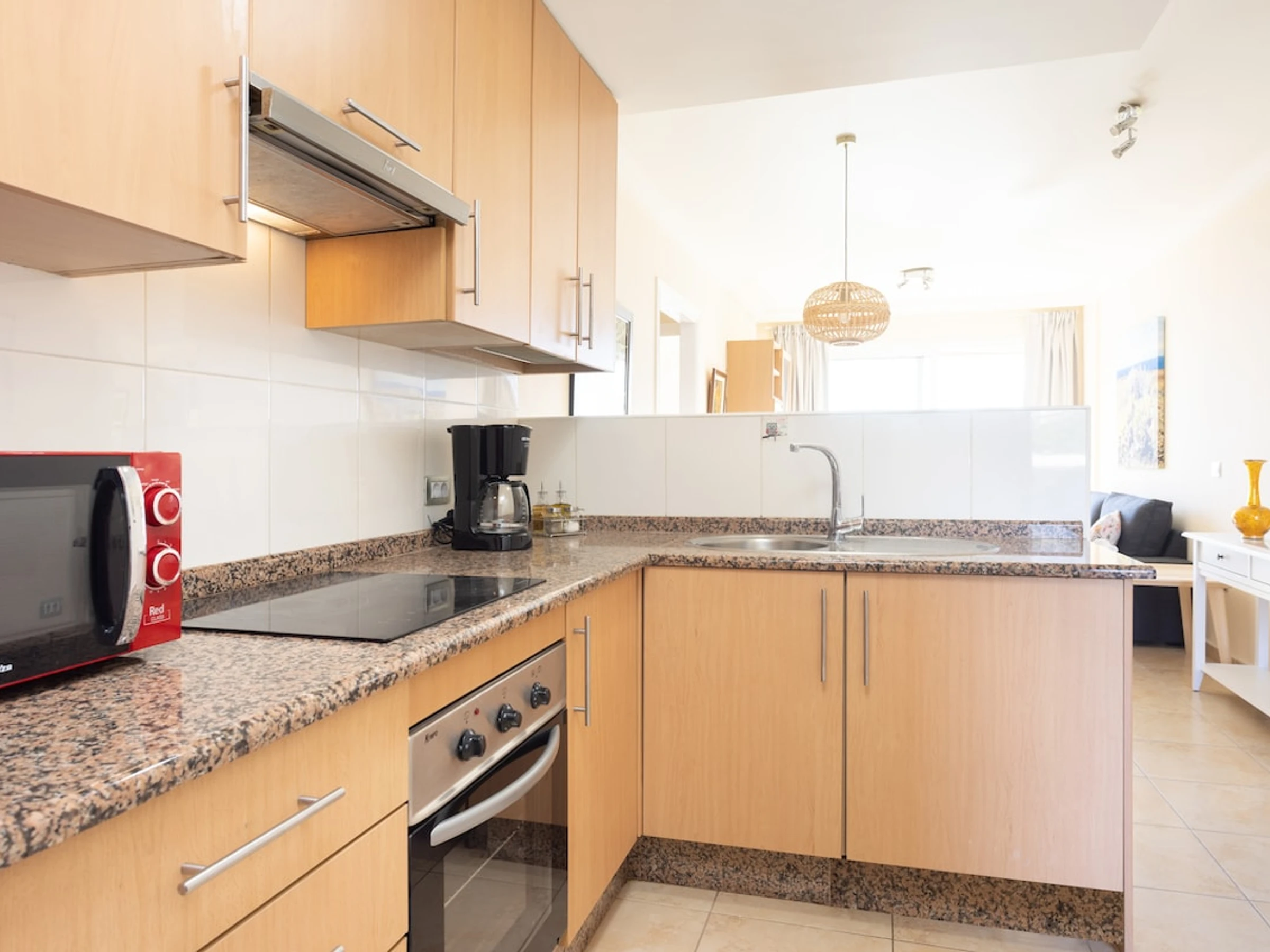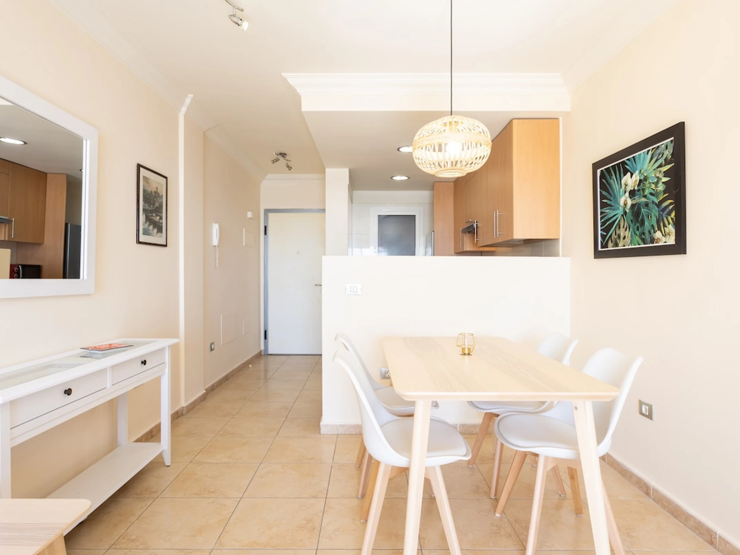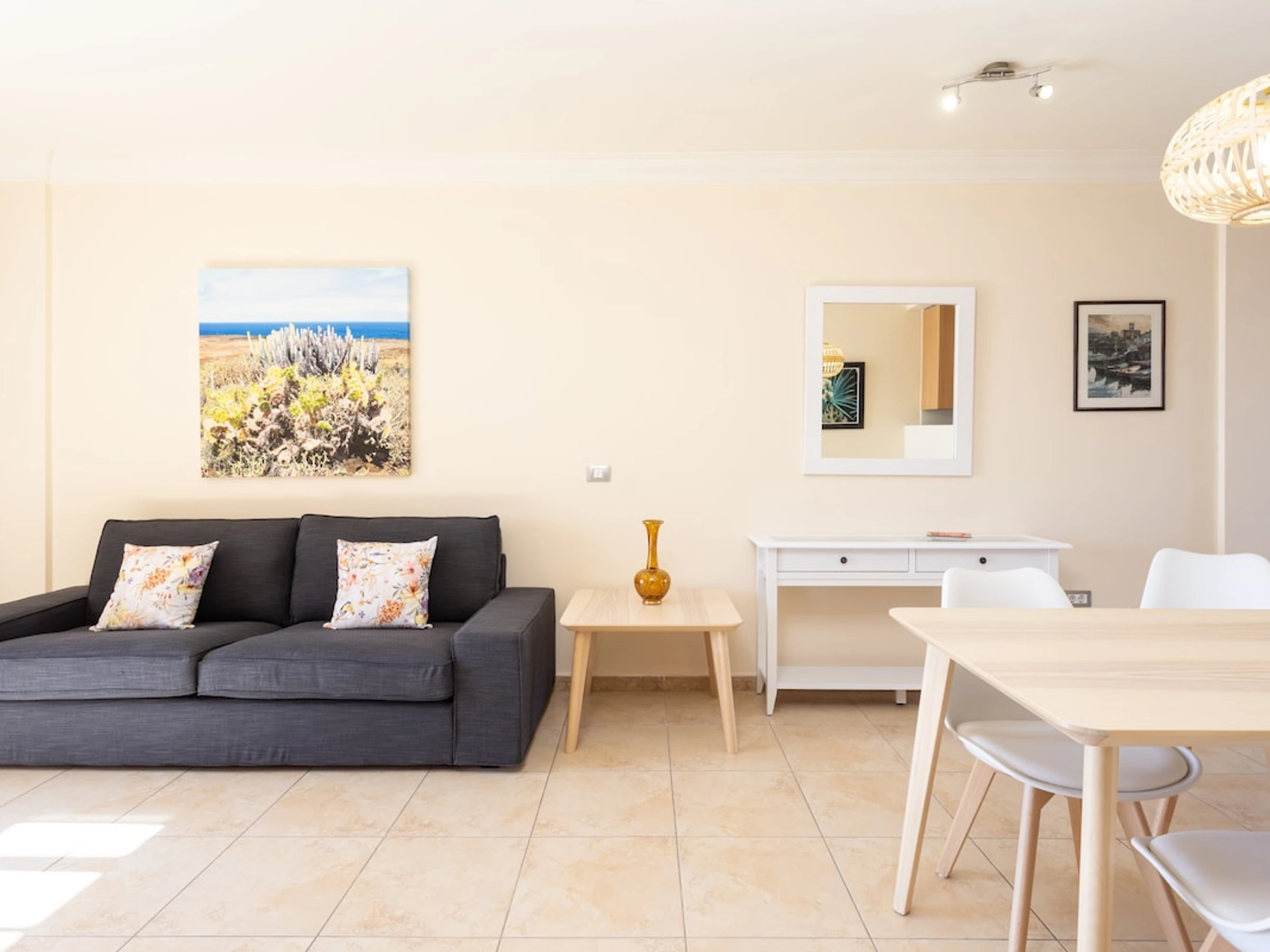 It is ideal for families and business trips as it can accommodate up to 4 people, with 2 bedrooms, a bathroom, fully equipped kitchen, living room that connects to a nice terrace with sea views and 300mb fibre Wifi Internet. Located in a quiet residential complex with two swimming pools and a small children's playground. With the beach just a few minutes from the flat and a coastline surrounded by unique corners and natural pools. In addition to being very well located, halfway between the capital and the south of the island and just a few minutes from the motorway.