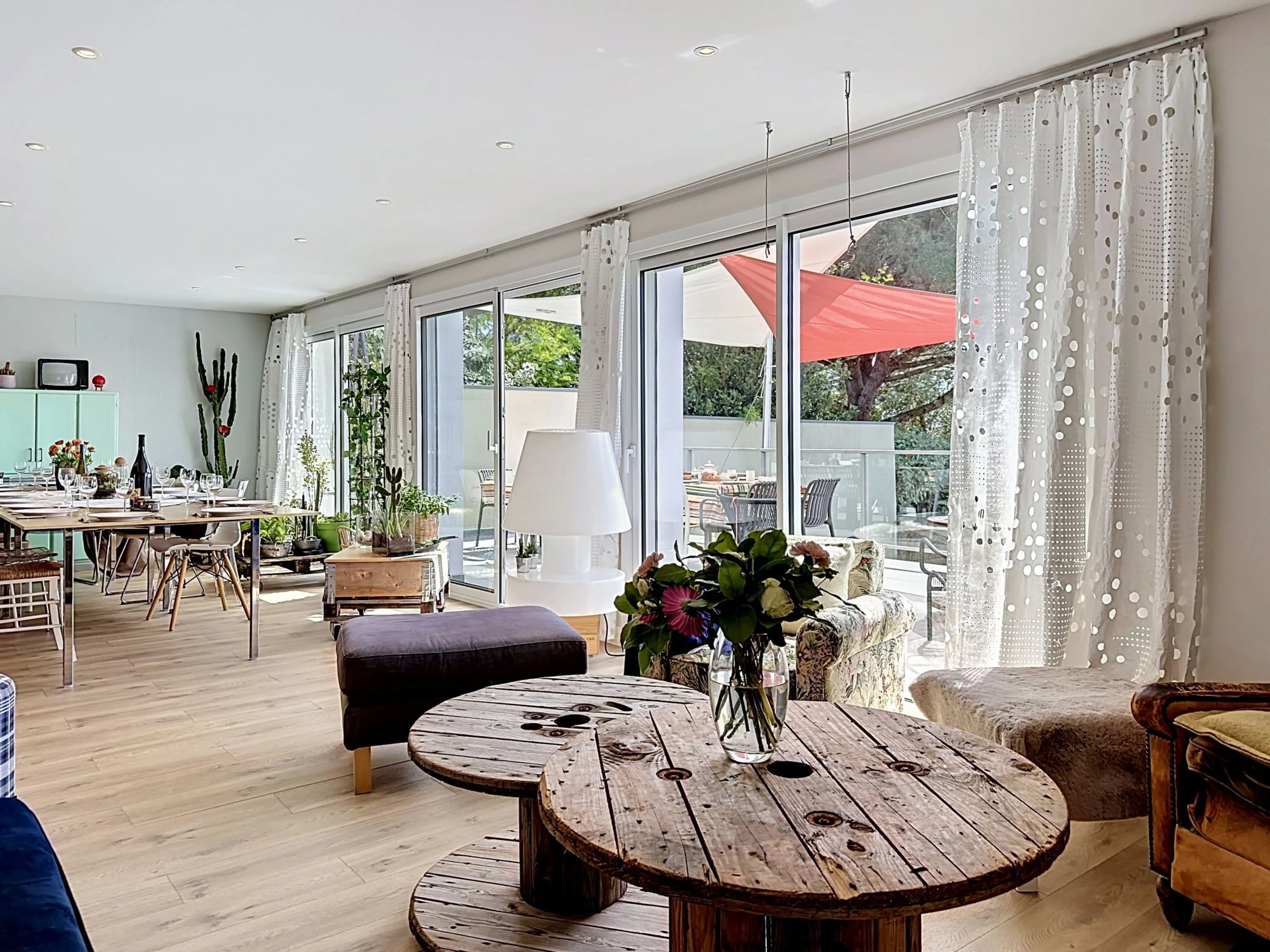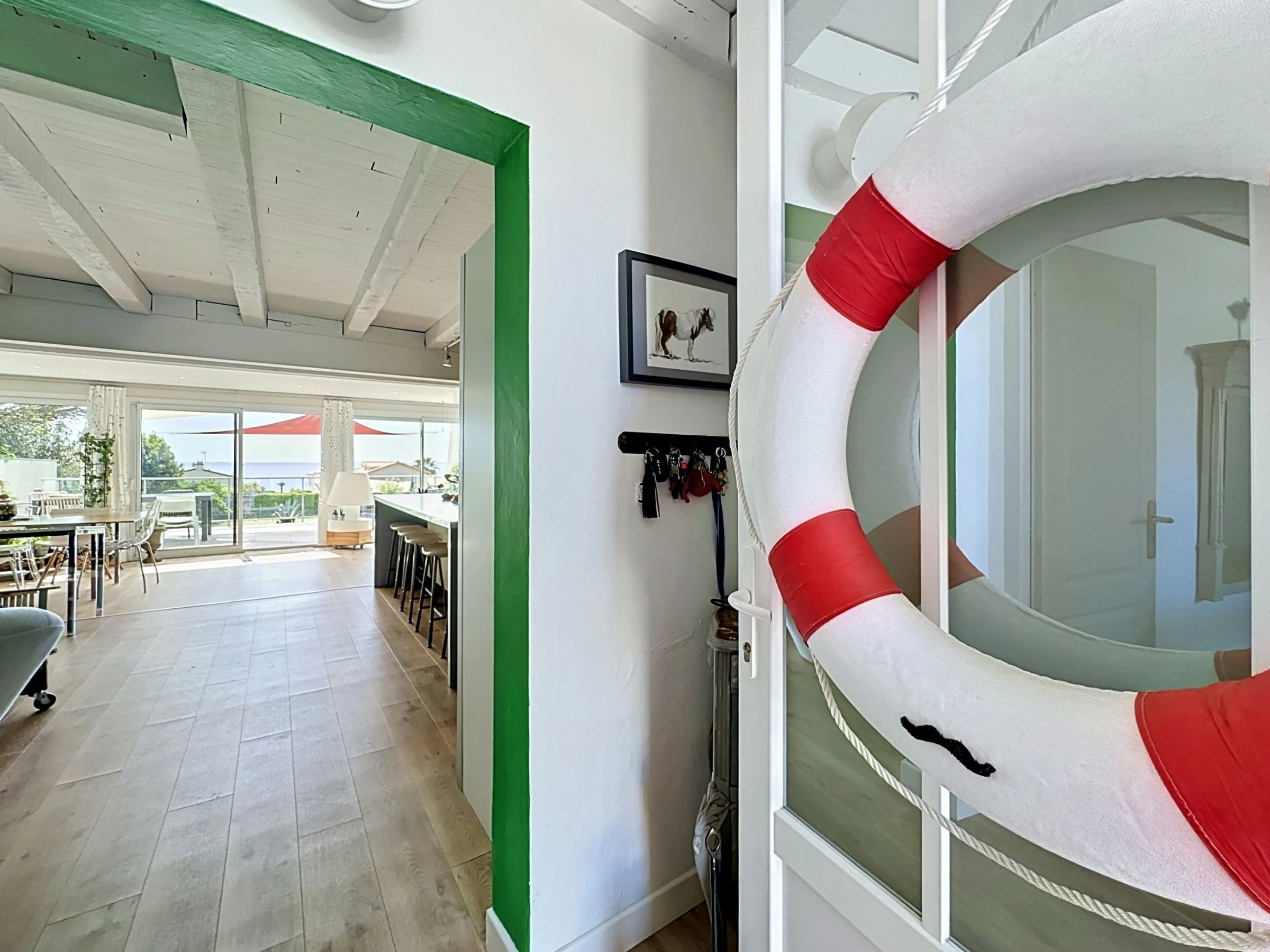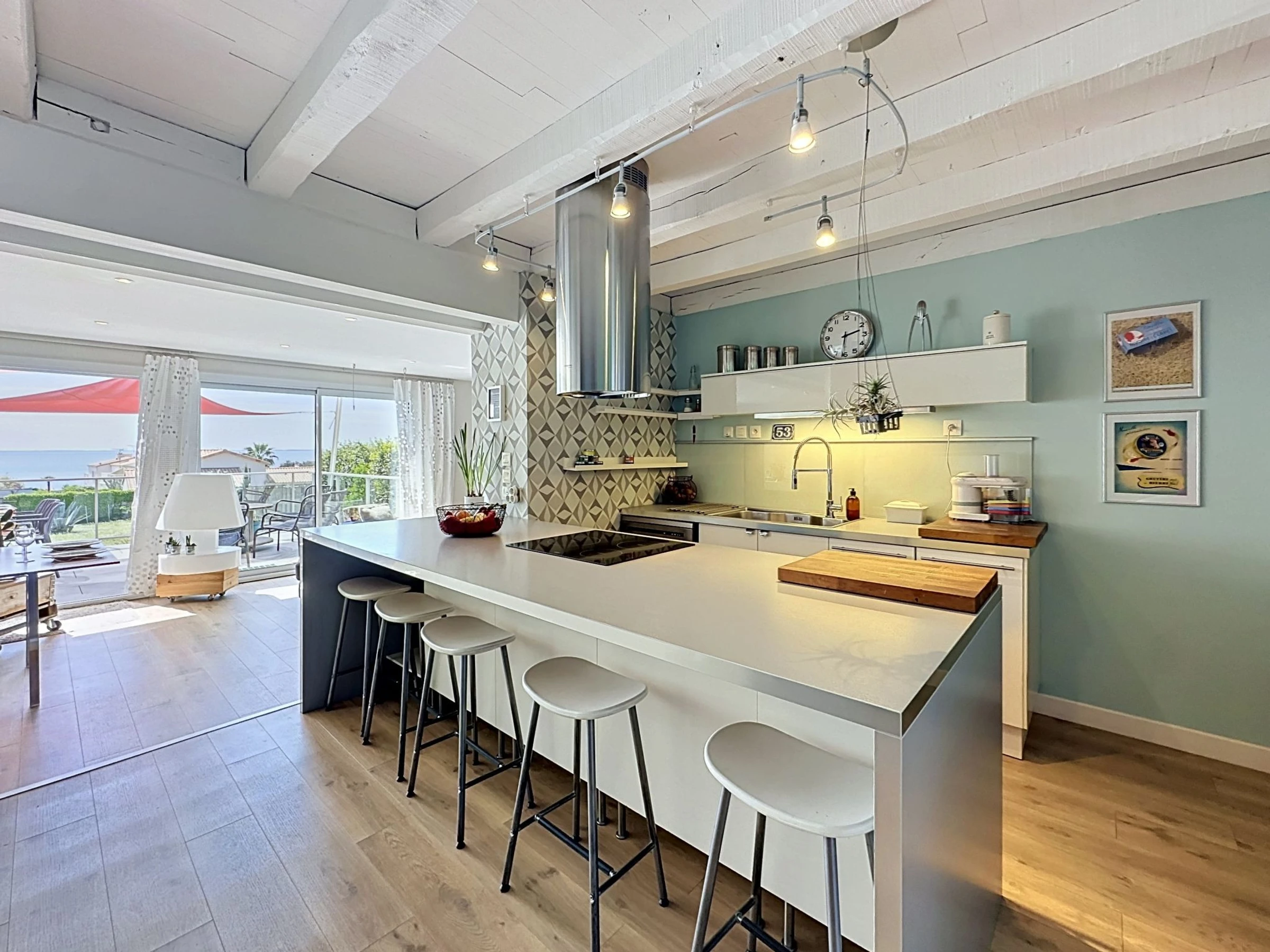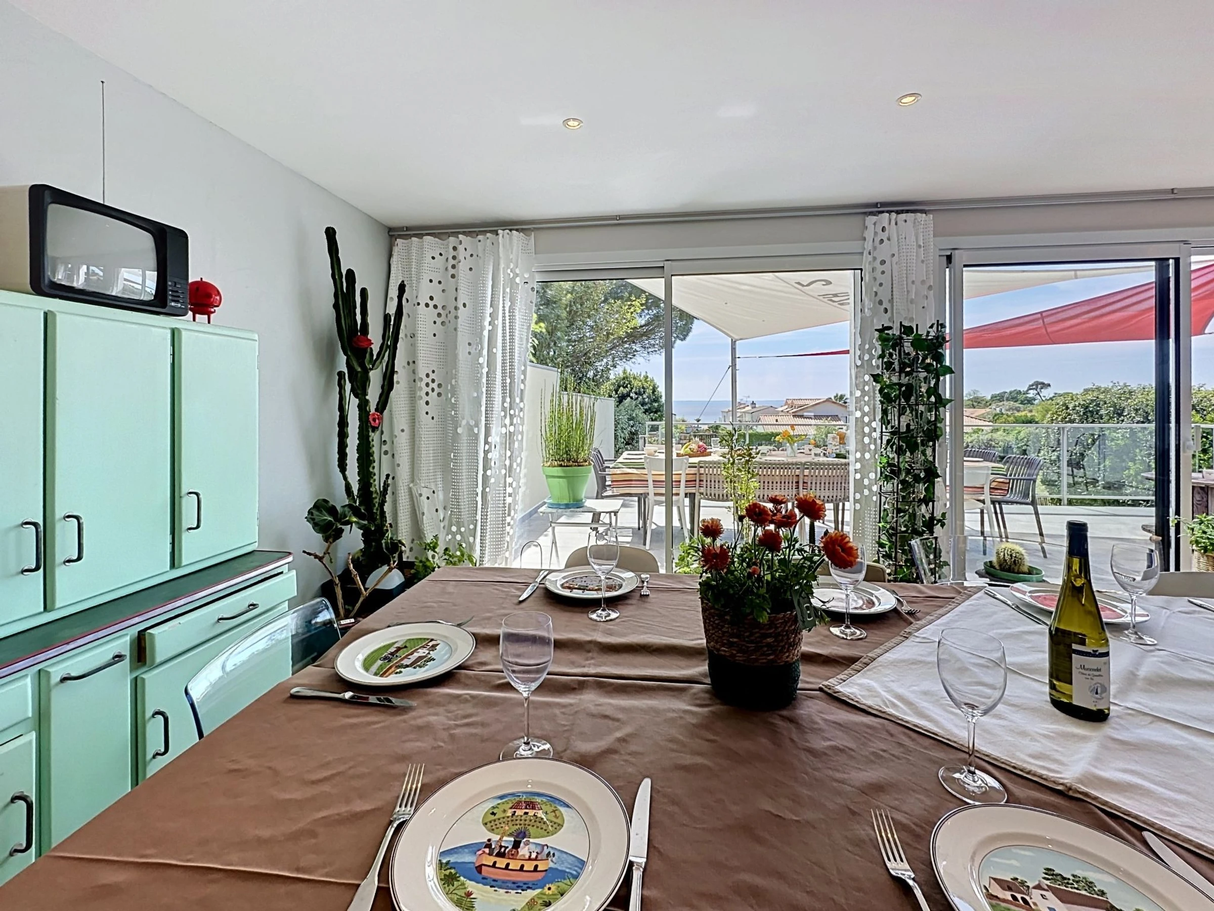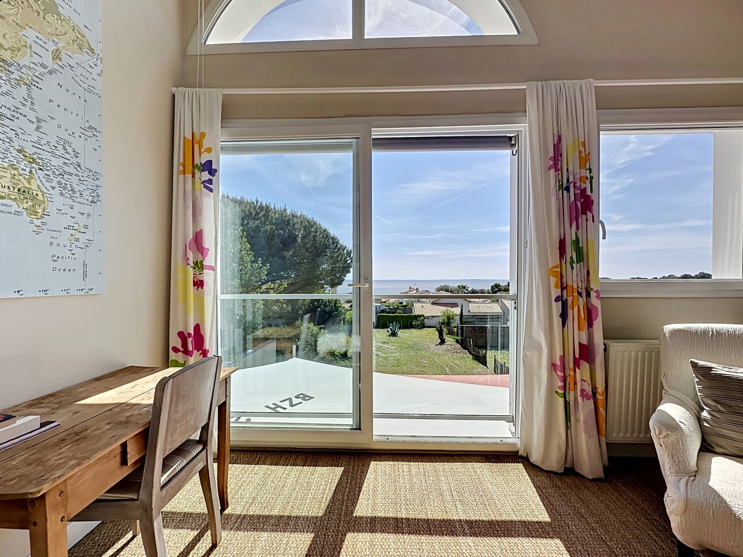 "L'Incroyable", 6-room house 195 m2 on 2 levels, south facing position. Spacious, beautiful furnishings: large living/dining room with TV (flat screen). Exit to the terrace, south facing position. 1 room with 1 french bed (1 x 140 cm, length 190 cm), hand-basin and shower. Open kitchen (oven, dishwasher, 3 induction hot plates, toaster, kettle, microwave, electric coffee machine, cooking island). Sep. WC. Upper floor: gallery with 1 double sofabed (1 x 140 cm, length 190 cm). 1 room with 2 beds (80 cm, length 200 cm). 1 large room with Dressing room with 2 beds (90 cm, length 200 cm), shower/WC. 1 room with 1 french bed (1 x 180 cm, length 200 cm). 1 room with 1 bed (90 cm, length 200 cm), 1 french bed (1 x 120 cm, length 190 cm). Bath/WC, double hand-basin. Gas heating. Terrace 32 m2, south facing position terrace 40 m2, south facing position, garden 400 m2, south facing position. Terrace furniture, barbecue, deck chairs. Very beautiful view of the sea and the ocean. Facilities: washing machine, safe, iron, baby cot for up to 2 year olds, hair dryer. Internet (WiFi, free). Parking (fenced 2 cars). E-charging station. Please note: non-smoking house. Maximum 1 pet/ dog allowed. Smoke alarm. Offer by a private individual according to Art. 155, IV of CGI. [hidden]