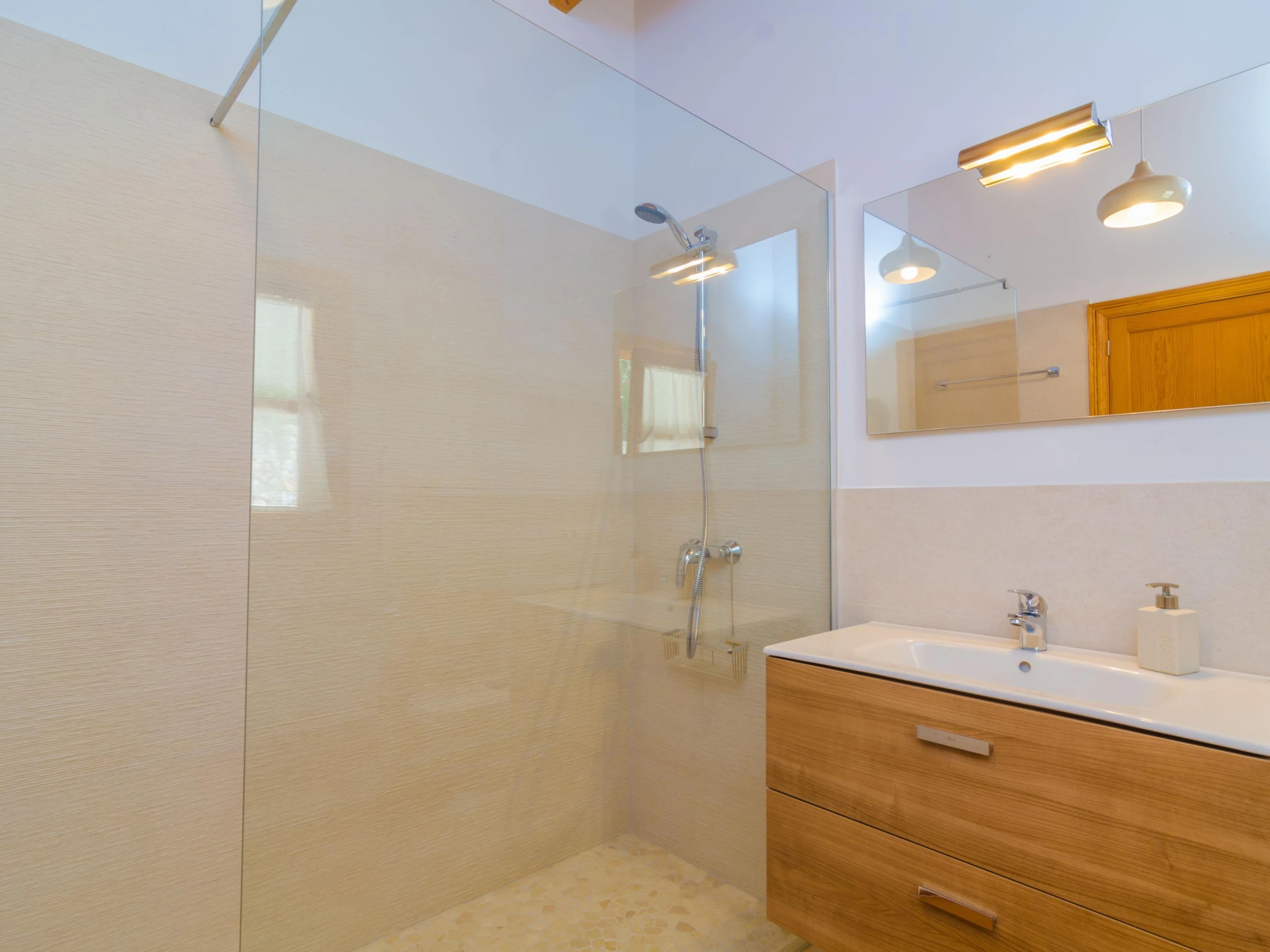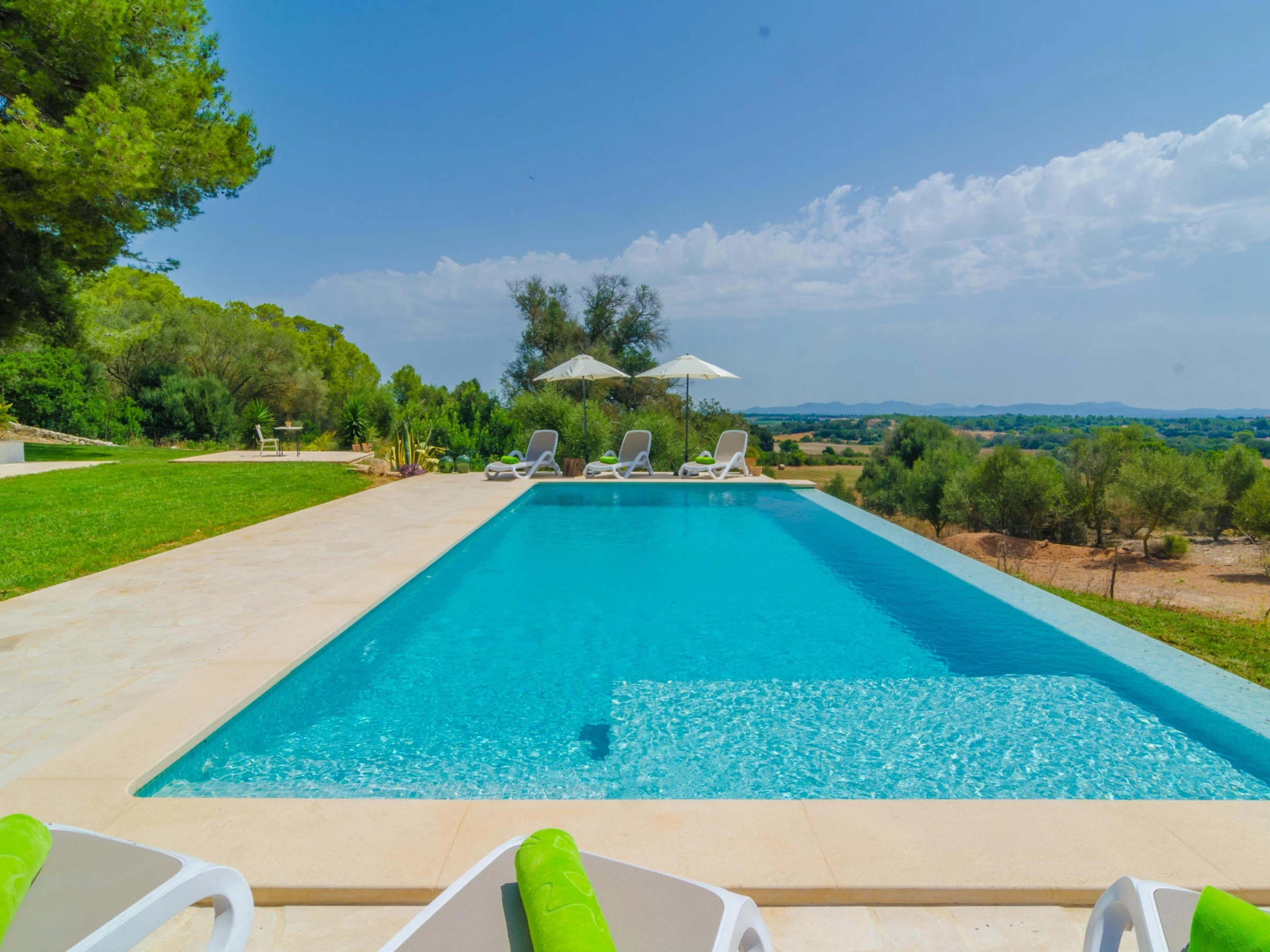 Set in a quiet area surrounded by fields, this house is in the center of Mallorca. Take a refreshing bath in the private, 9 meters x 4 meters chlorine pool with a depth ranging from 1 meter to 1.8 meters. Afterwards, enjoy basking in the sun on one of the six loungers or, if you prefer shade, you can use two parasols. Make a pick-nick with your family in the garden or have a tasty barbecue underneath the starry sky. There's a porch furnished with a table and six seats where you can eat together, share laughs and talks. The plot is fenced and there are no next-door neighbours.