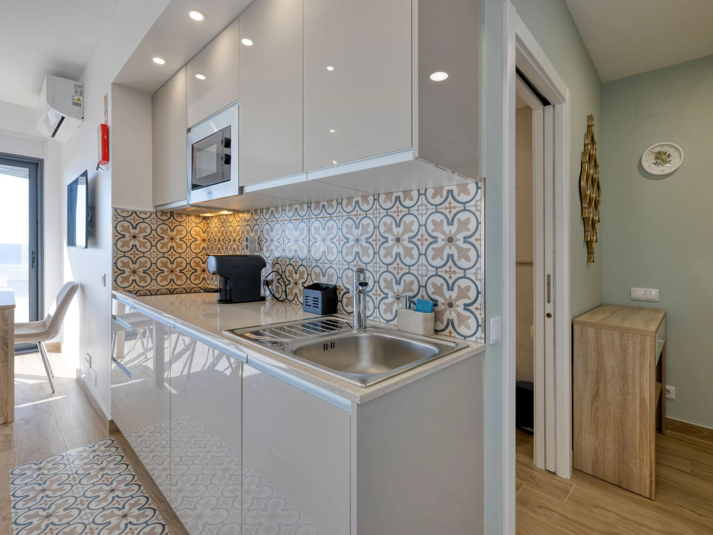 The apartment features an elegant bedroom equipped with a comfortable double bed and an additional sofa bed, ensuring restorative rest after a day of exploration. The social area is complemented by a modern and practical environment, with air conditioning to maintain comfort at all times.