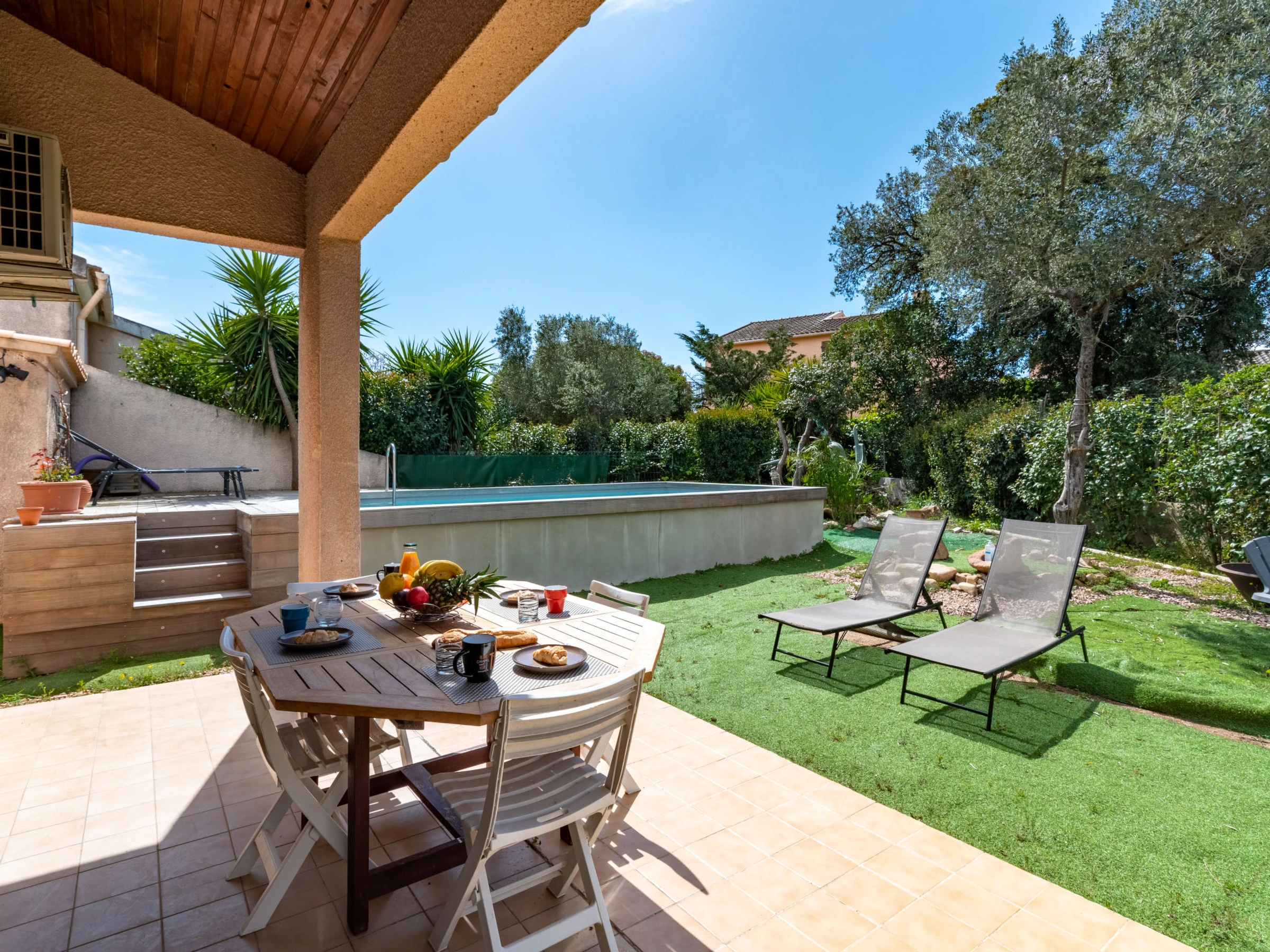 Single-family house "Villa Vaccaja". In the resort Porto-Vecchio, excellent location: right in the centre but still quiet, traffic calmed area, 1 km from the sea, 2 km from the beach, in a cul-de-sac. Private: small, well-kept garden 150 m2 (fenced), swimming pool (above ground) angular (6 x 3 m, depth 140 cm, seasonal availability: [hidden] - [hidden] Pool maintenance by the owner/gardener. Parking (for 2 cars) on the premises. Shop, shopping centre, restaurant, bakery 500 m, 20 minute walk to the centre, bus stop 300 m, sandy beach "Plage de Palombaggia" 12 km. Sports harbour 2 km. Nearby attractions: centre ville Porto-Vecchio 2 km, Plage de Santa Giulia 10 km, Bonifacio 30 km. Well-known lakes can easily be reached: Lac de l'Ospédale 20 km. Hiking paths: Aiguilles de Bavella 45 km. Please note: car recommended.