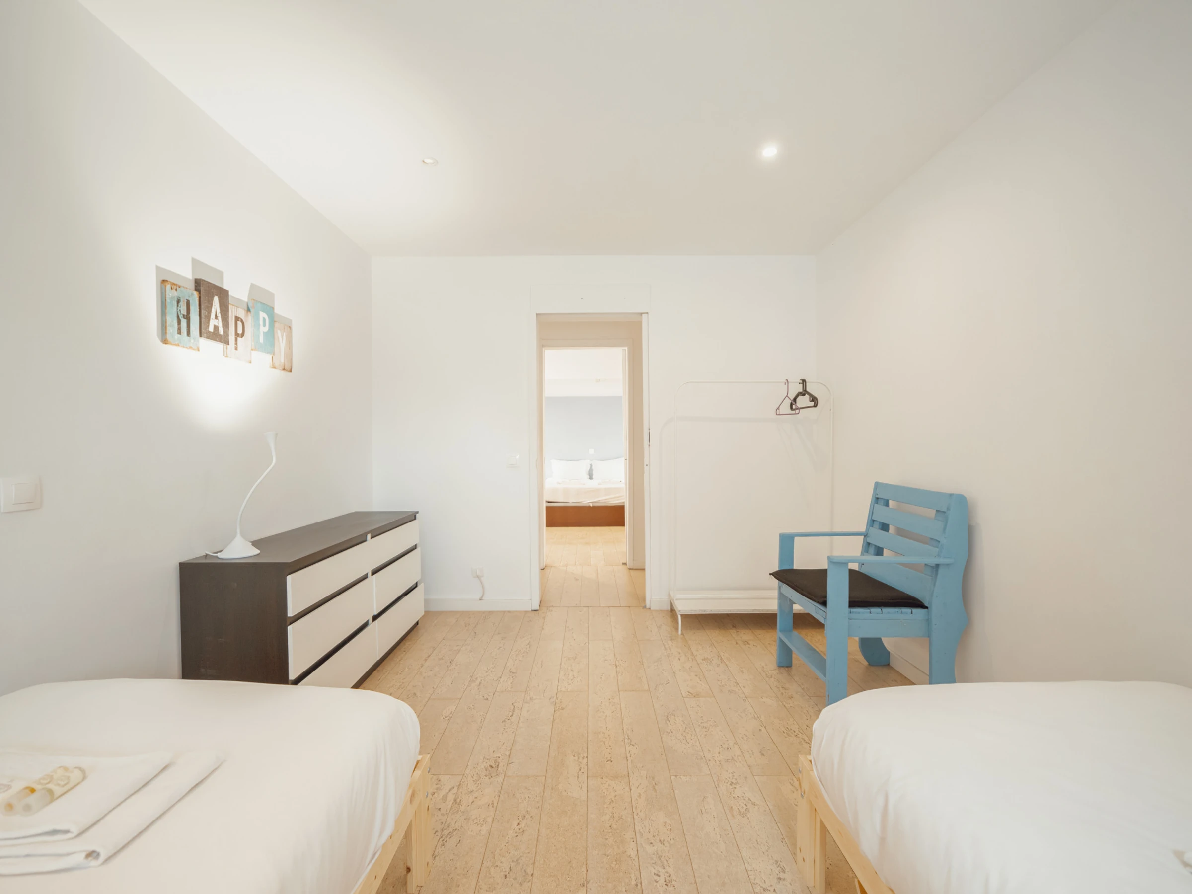 The two-bedroom apartment, one room with a double bed and one room with two single beds as well as a comfortable sofa bed for two people in the living room, which gives capacity to accommodate 6 people.