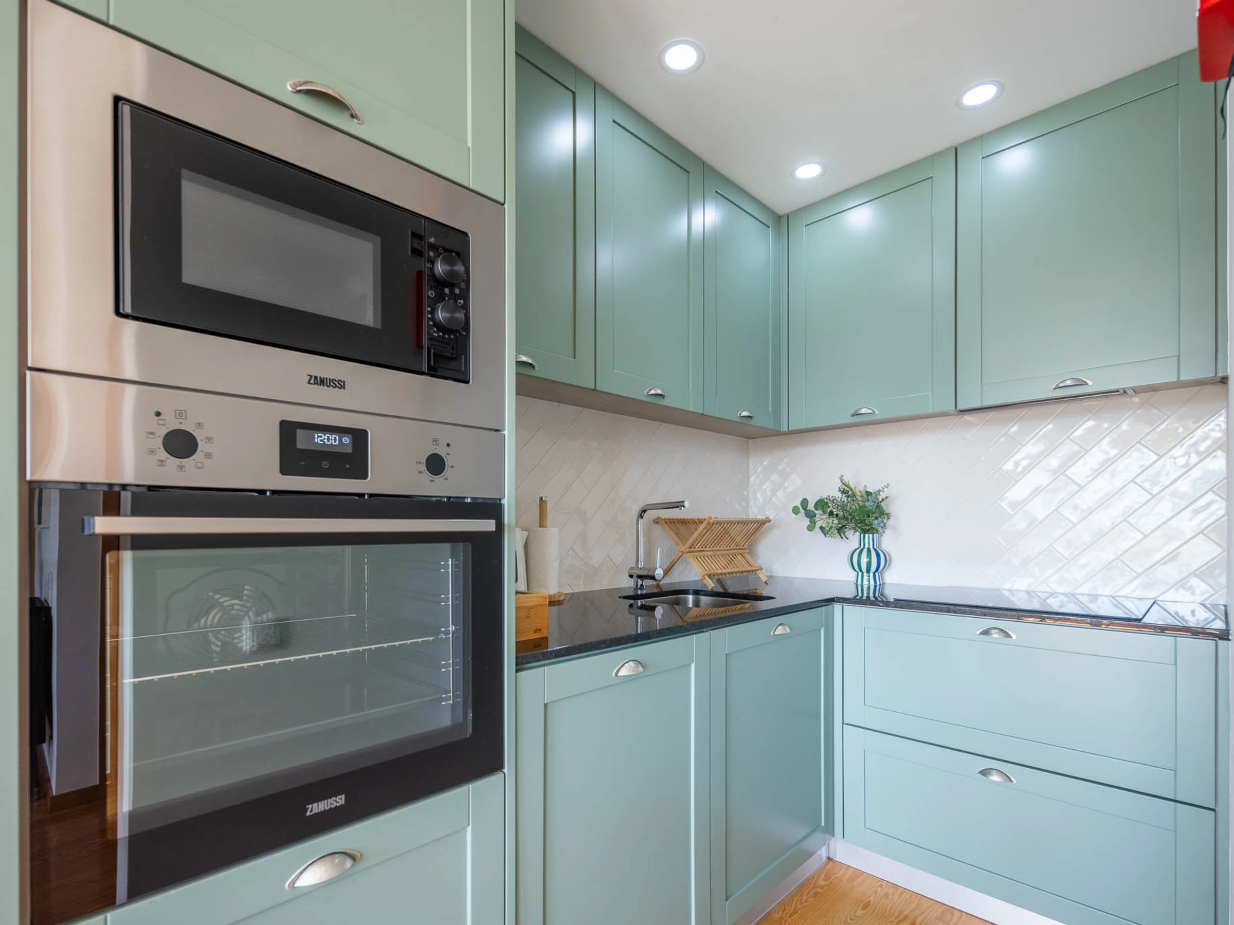 - The kitchen is in American style (open), modern and functional, equipped with induction hob.