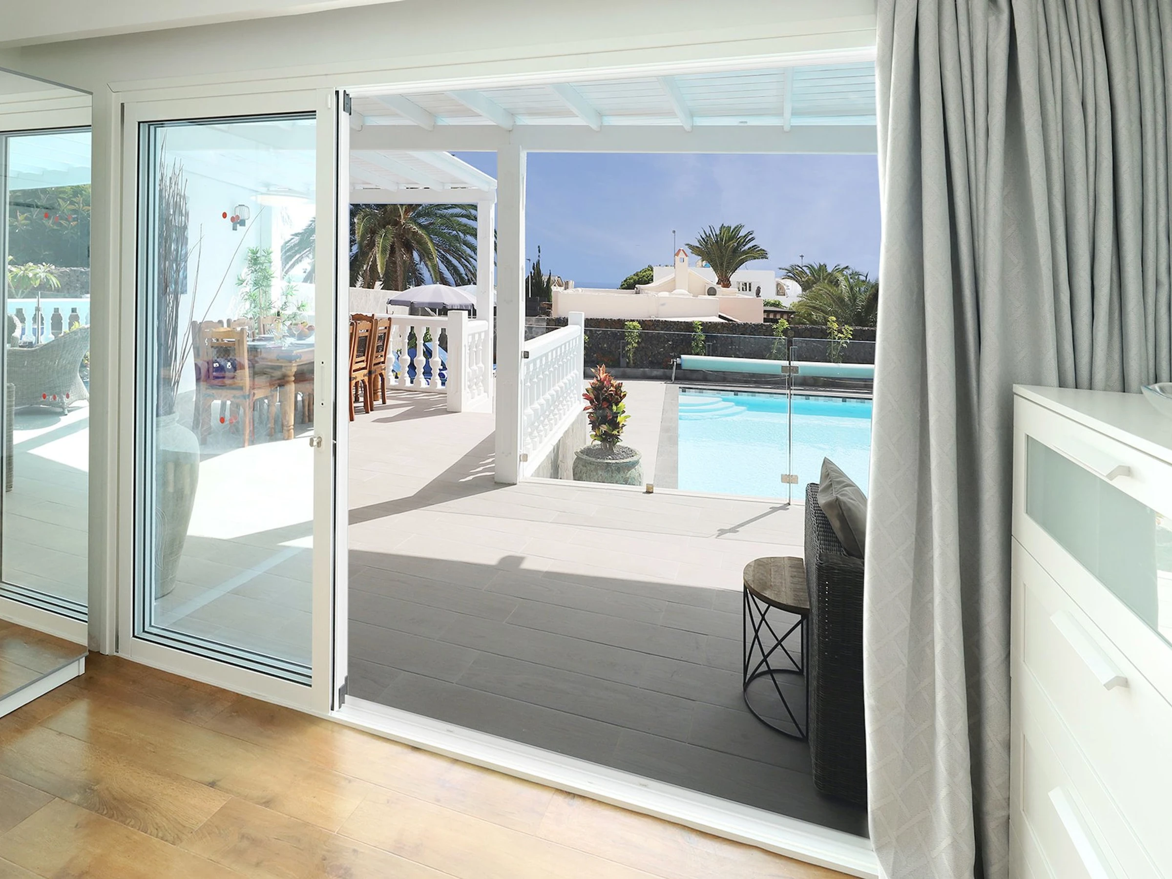 Villa Vega Del Carmen is in Los Mojones, a quiet sought-after residential area close to the Old town of Puerto Del Carmen. The busy resort of Puerto Del Carmen started life as a fishing village and now boasts all the facilities and amenities of a Spanish holiday town, with an abundance of shops, restaurants, and bars. A variety of restaurants offer multiple options for the visitor to decide where to eat. From traditional restaurants, offering typical local products and establishments specialized in national and international cuisine with dishes from around the world. There is a long sandy beach (Playa Grande) where sun beds & umbrellas are available for hire and in addition various water sports available. There is a reliable and inexpensive bus and taxi service allowing you to explore all areas easily. The popular Marina of Puerto Calero is a short drive, or you can take the taxi boat from the Old Town Harbour to spend a relaxing afternoon watching the boats. Activities include: Rancho Texas Theme park, boat trips, Deep sea fishing, island excursions, golf course, diving, mini golf, go karting, tennis, sports centre, bike hire, shopping centre, spas and wellness centres, horse riding (in Macher village), whale museum (Puerto Calero) Water Park (Costa Teguise).