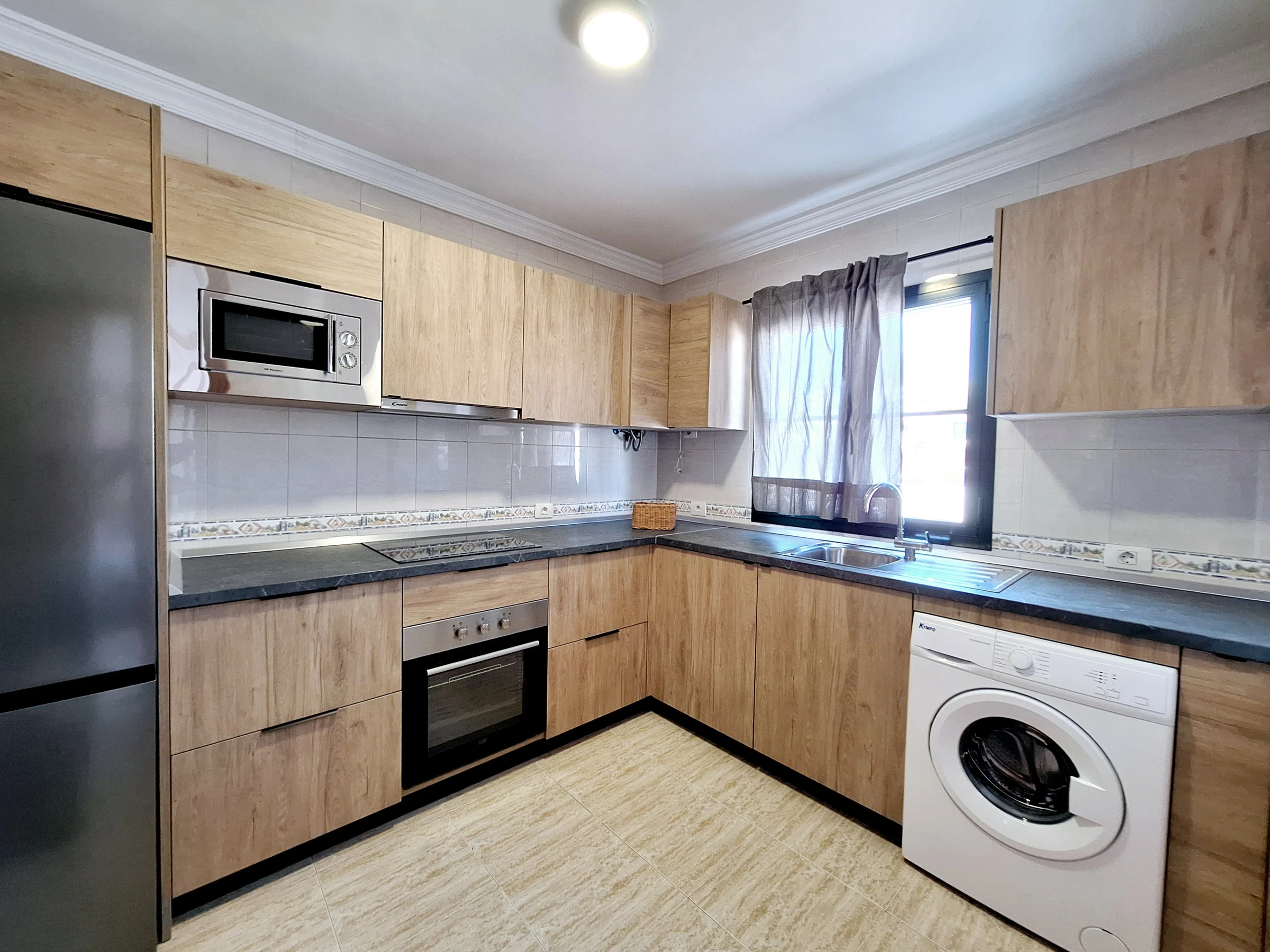 The kitchen, is equipped with refrigerator, microwave, oven, freezer, dishes/cutlery, kitchen utensils, coffee machine, toaster, kettle and juicer.
