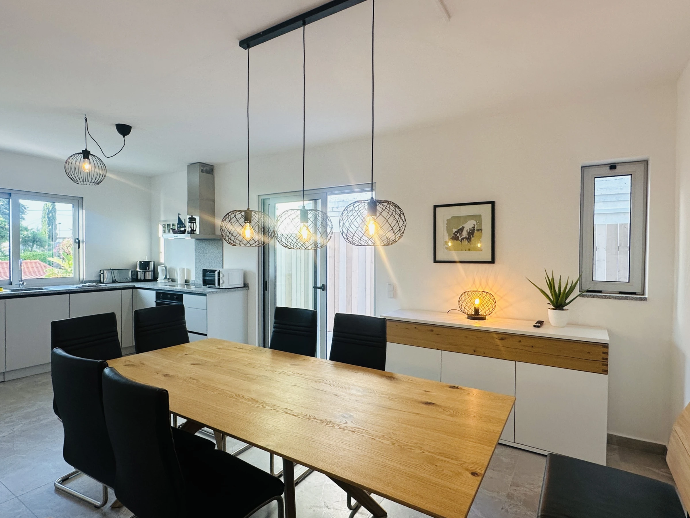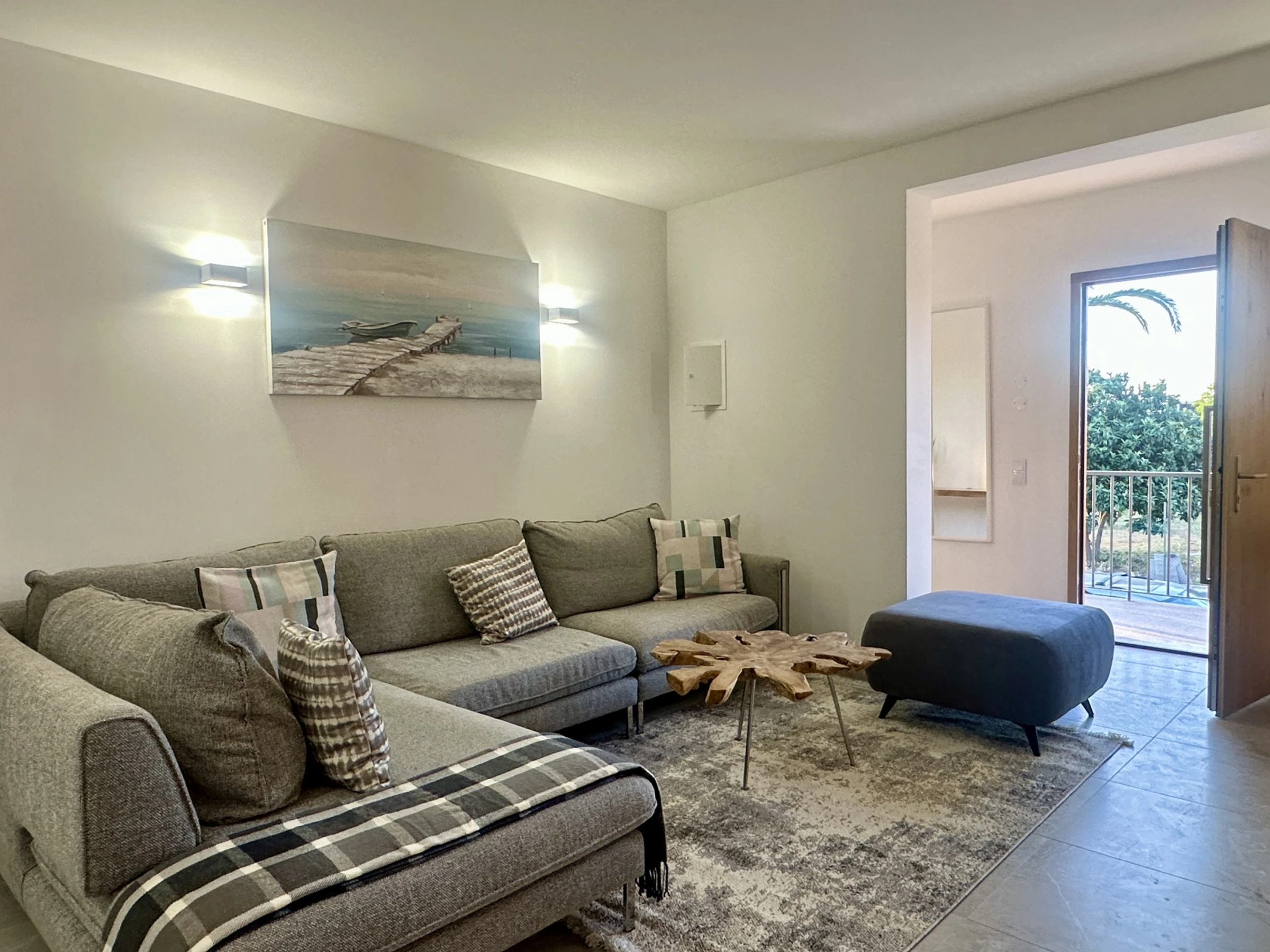 β€’ Spacious and bright living room, with dining area and direct access to the swimming pool