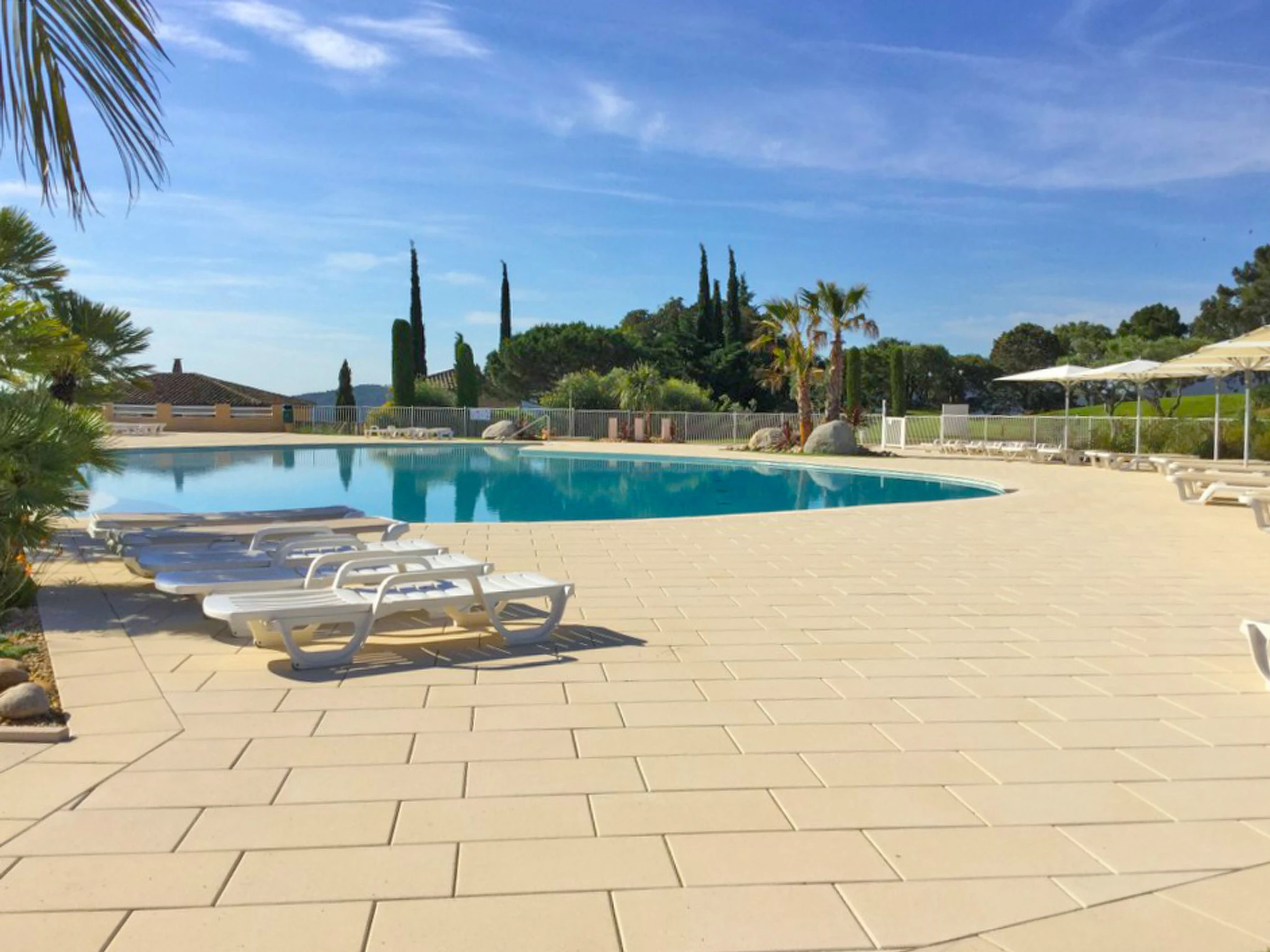 Beautiful residence "Golf de Roquebrune". Outside the resort, 8 km from the centre of Roquebrune sur Argens, in an elevated position on a slope, 8 km from the sea, 8 km from the beach. For shared use: swimming pool (15 x 30 m, depth 80 - 250 cm, seasonal availability: [hidden] pool opening hours: 09:00-20:00). Children's pool, tennis, parking. Shop 8 km, grocery 4 km, shopping centre 10 km, sandy beach "Plage de Saint Aygulf" 8 km. Golf course 700 m, riding stable 1 km, sports centre 2 km. Nearby attractions: Club Hippique 1 km, Saint Aygulf 7 km, Aqualand, Lunapark 9 km, Fréjus 10 km, Saint Raphael 12 km, Saint Tropez 35 km. Please note: car recommended. Guarded residence. Residence with electric gates.