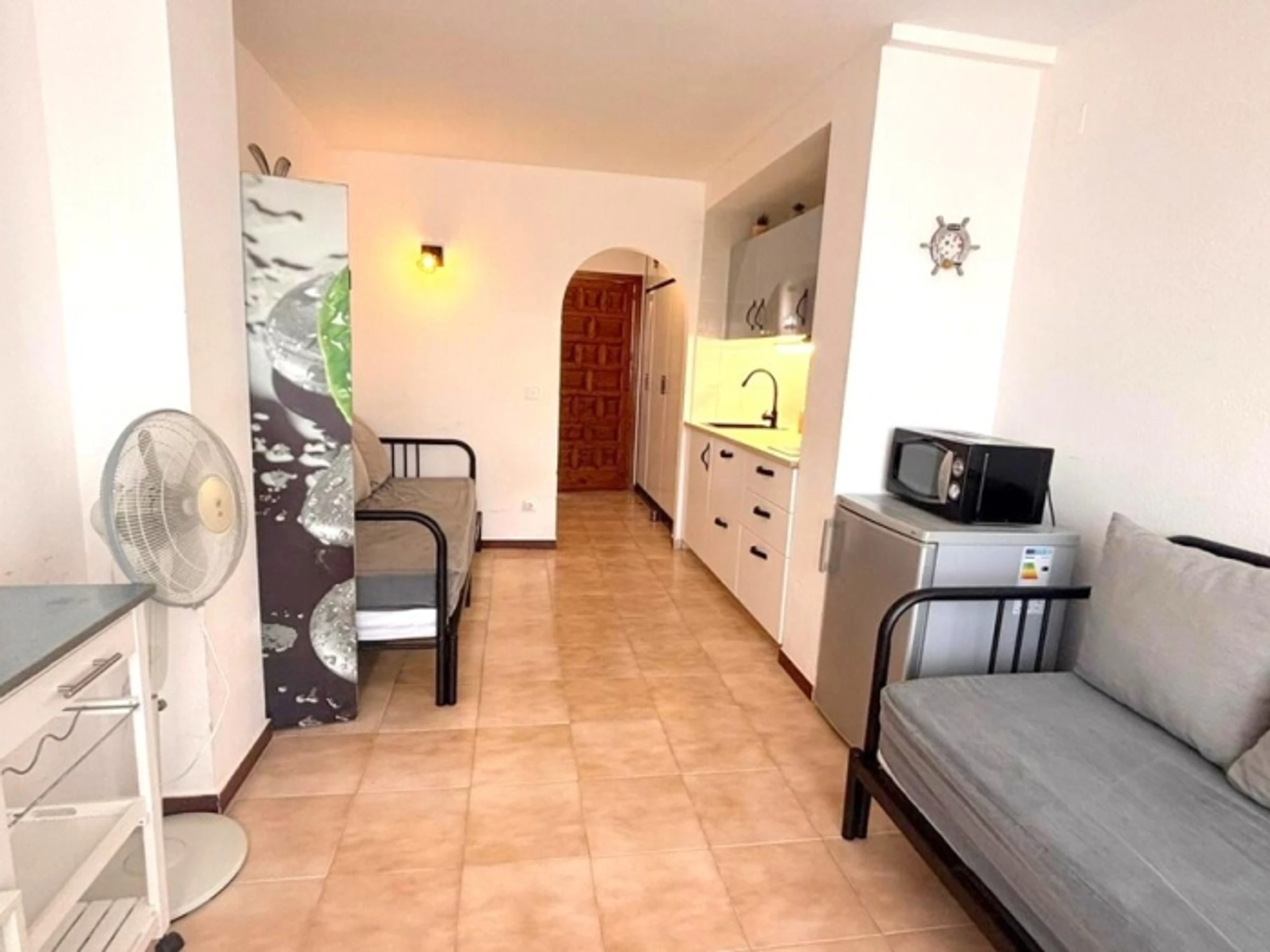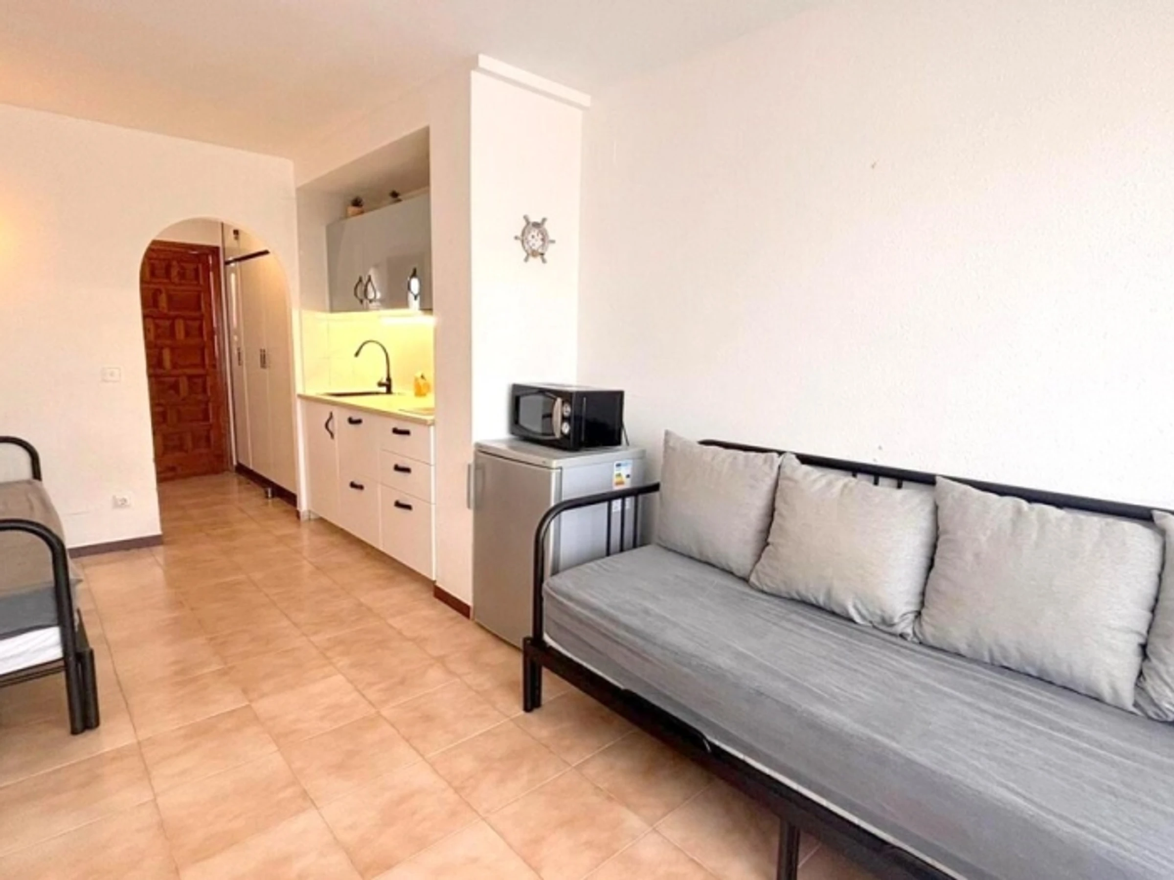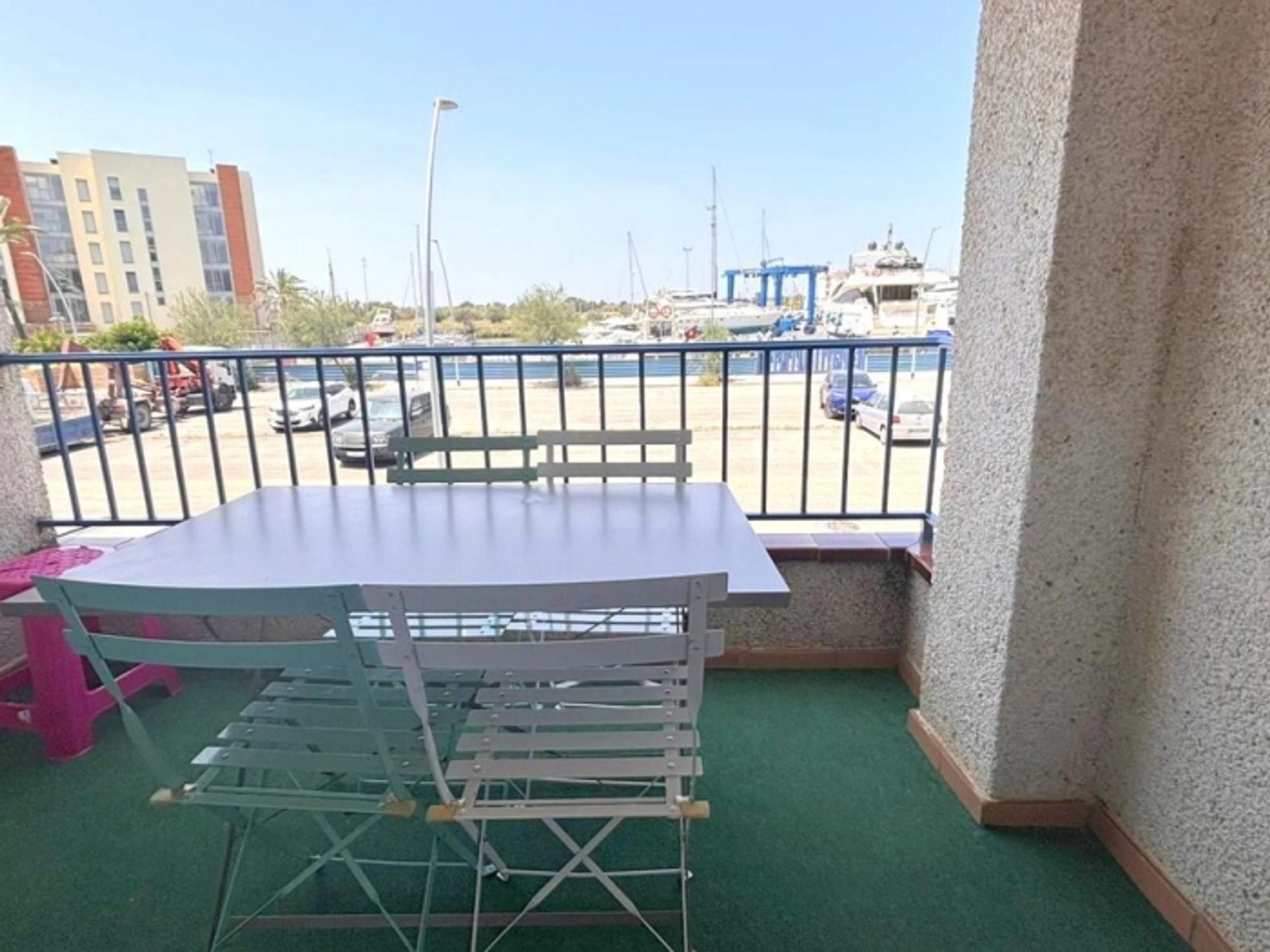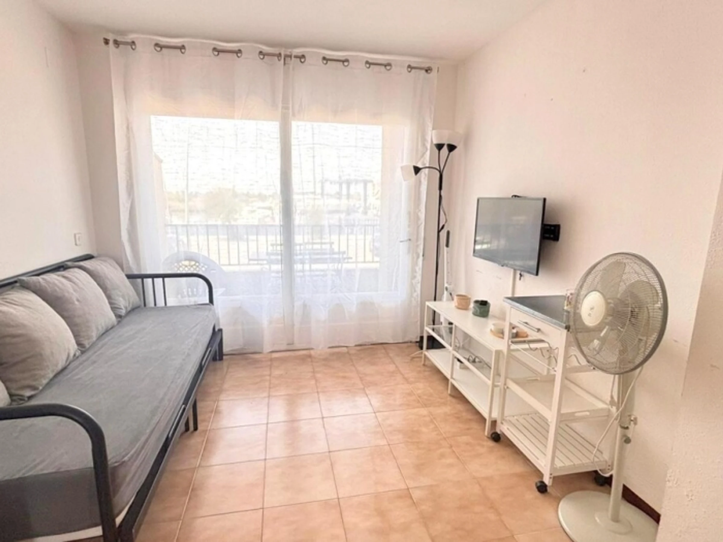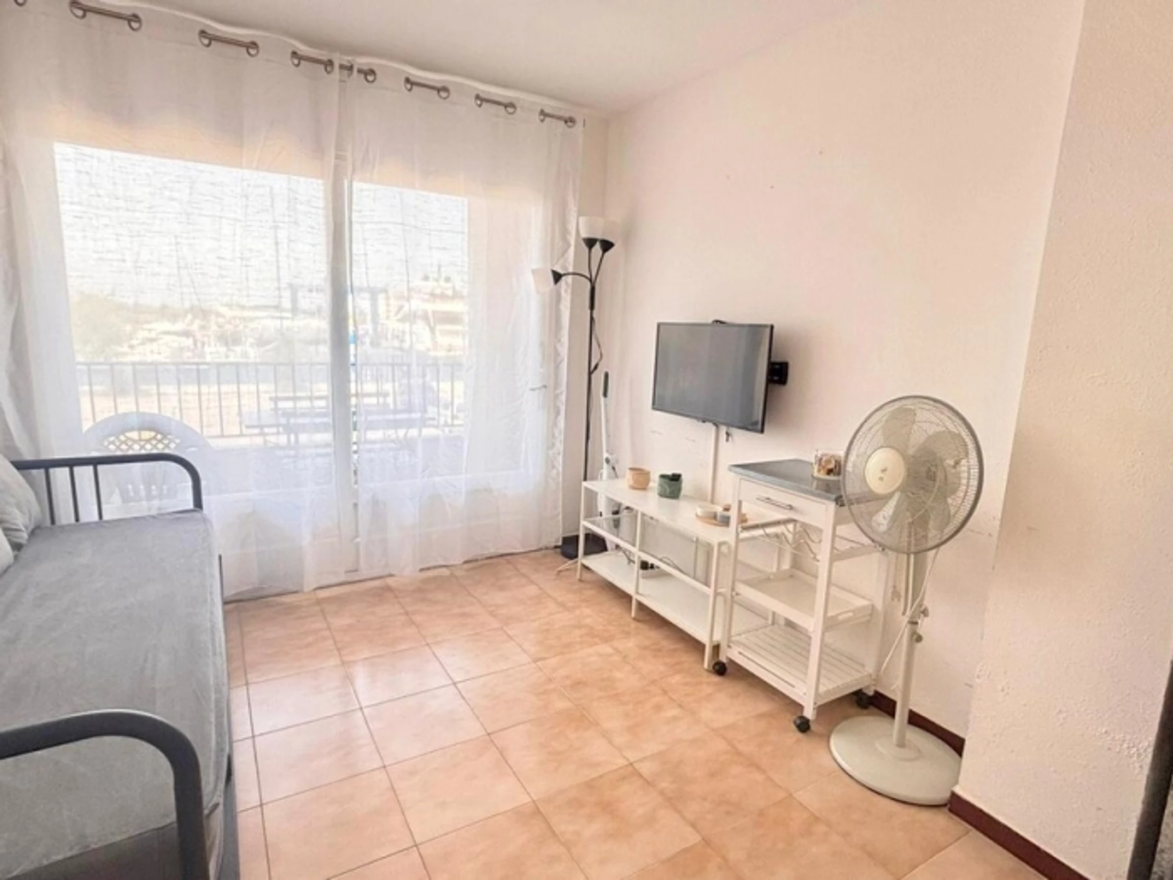 Studio located in the Santa Margarita area with community [hidden] accommodation has capacity for 4 people and has a living room with 2 double sofa beds (140 cm), a terrace with terrace furniture, a kitchenette and 1 full bathroom with a bathtub.Lift. Washing [hidden] accommodation is located a 15-minute walk from the center and the beach of Santa Margarita, and 3 kilometers from the center of Roses.Sheets and towels are not included in the price.
