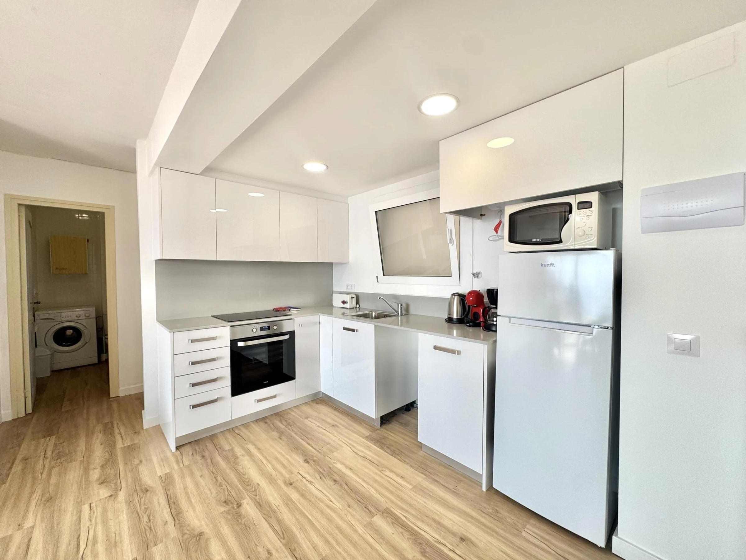 * Fully equipped American kitchen with fridge, freezer, dishwasher, oven, Dolce Gusto coffee machine, microwave, toaster, kettle...)