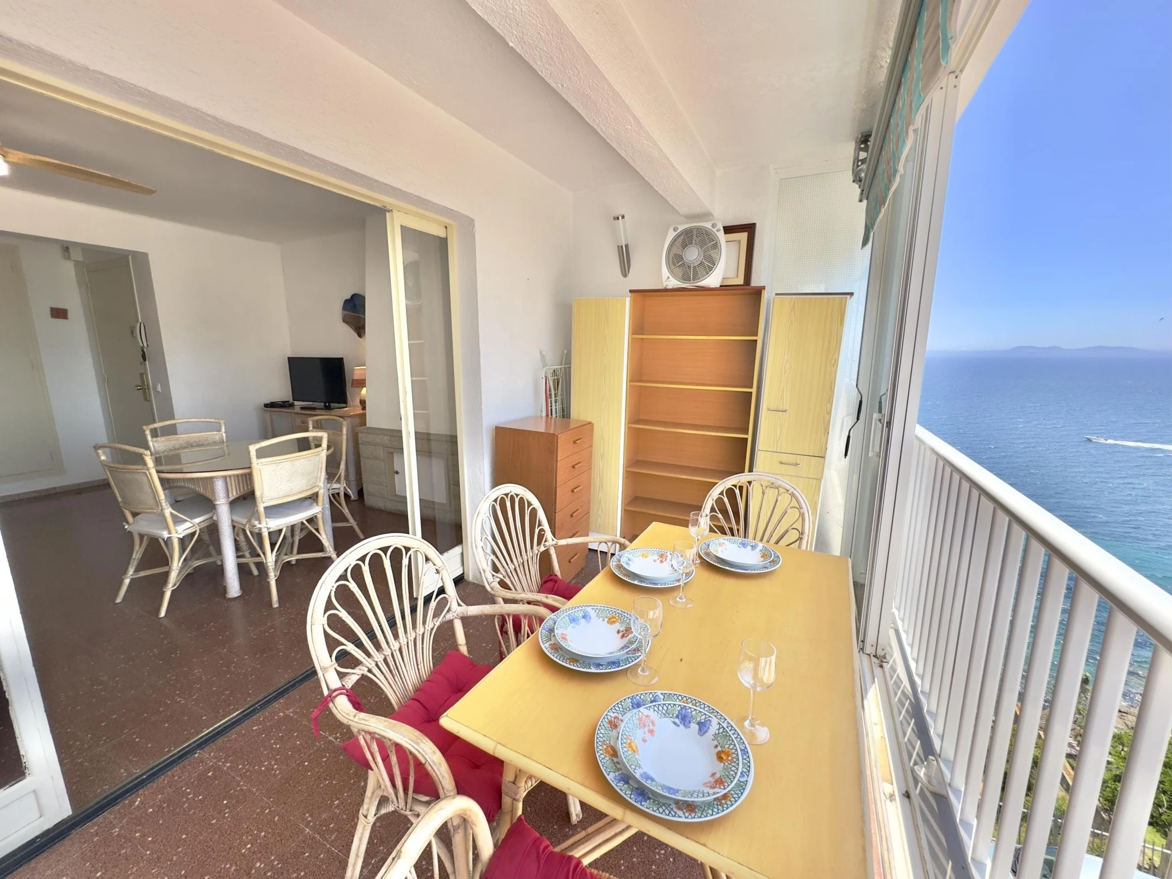 Spacious two-bedroom apartment with beautiful sea views, located in the Blaumar Building, near the sea and the 'Camí de Ronda'. It has a lift. Capacity for 1–4 people