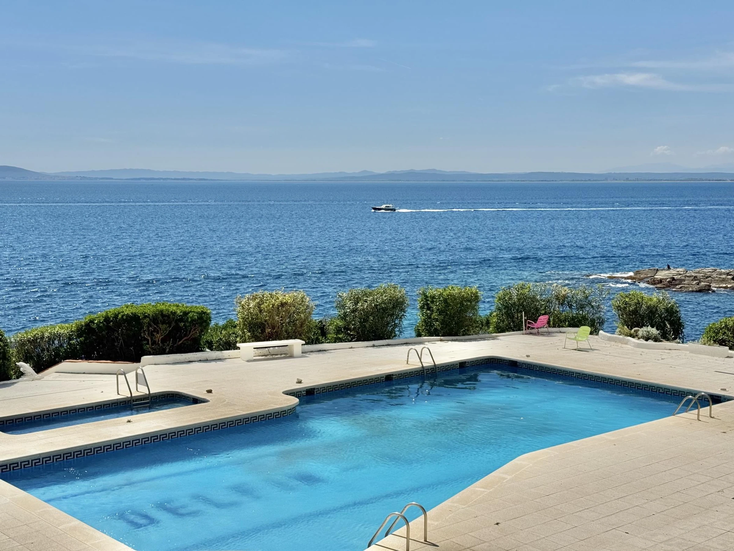 * Access to a communal swimming pool located right above the sea (June–October).