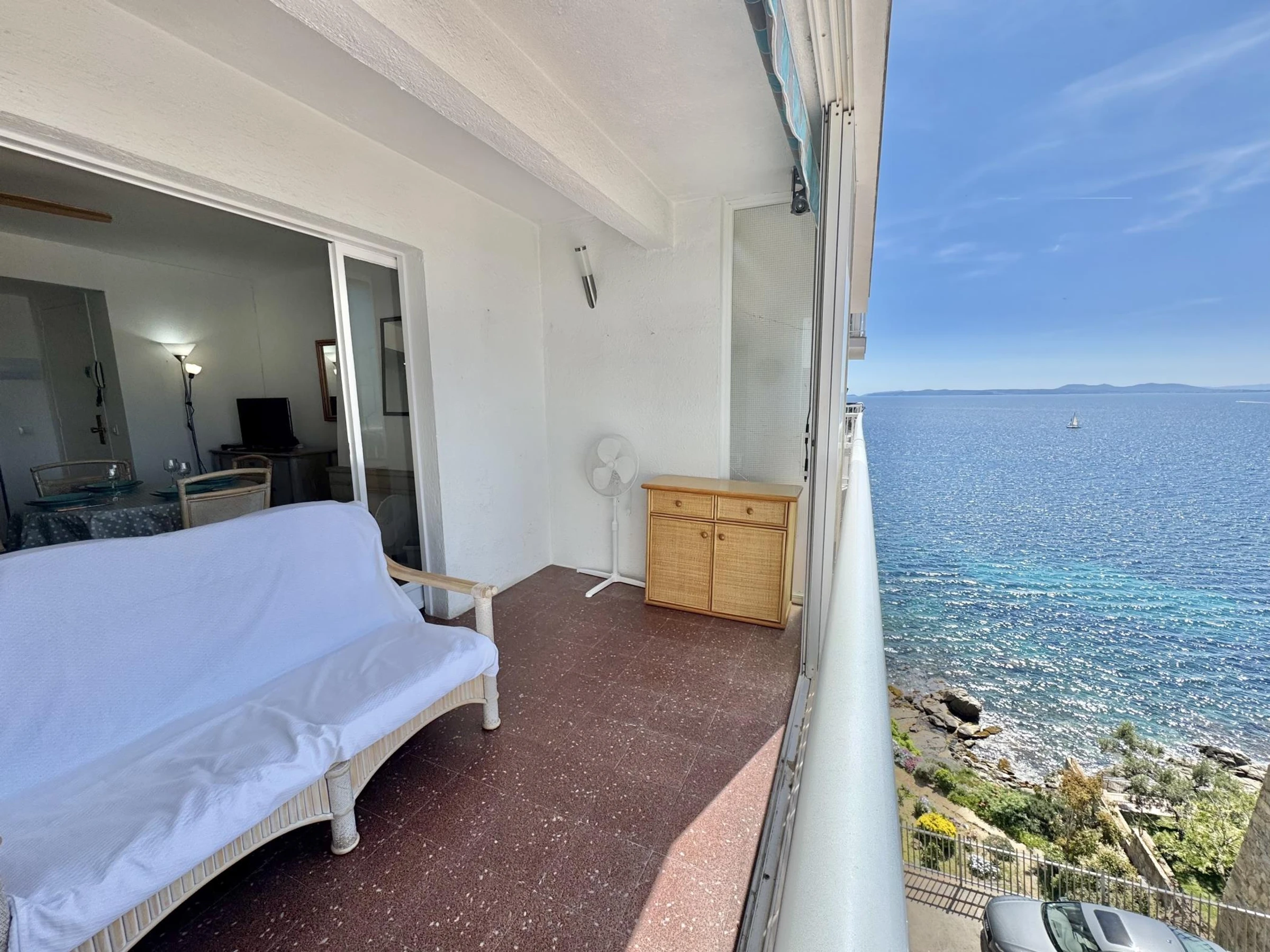 * Covered balcony with sea views.