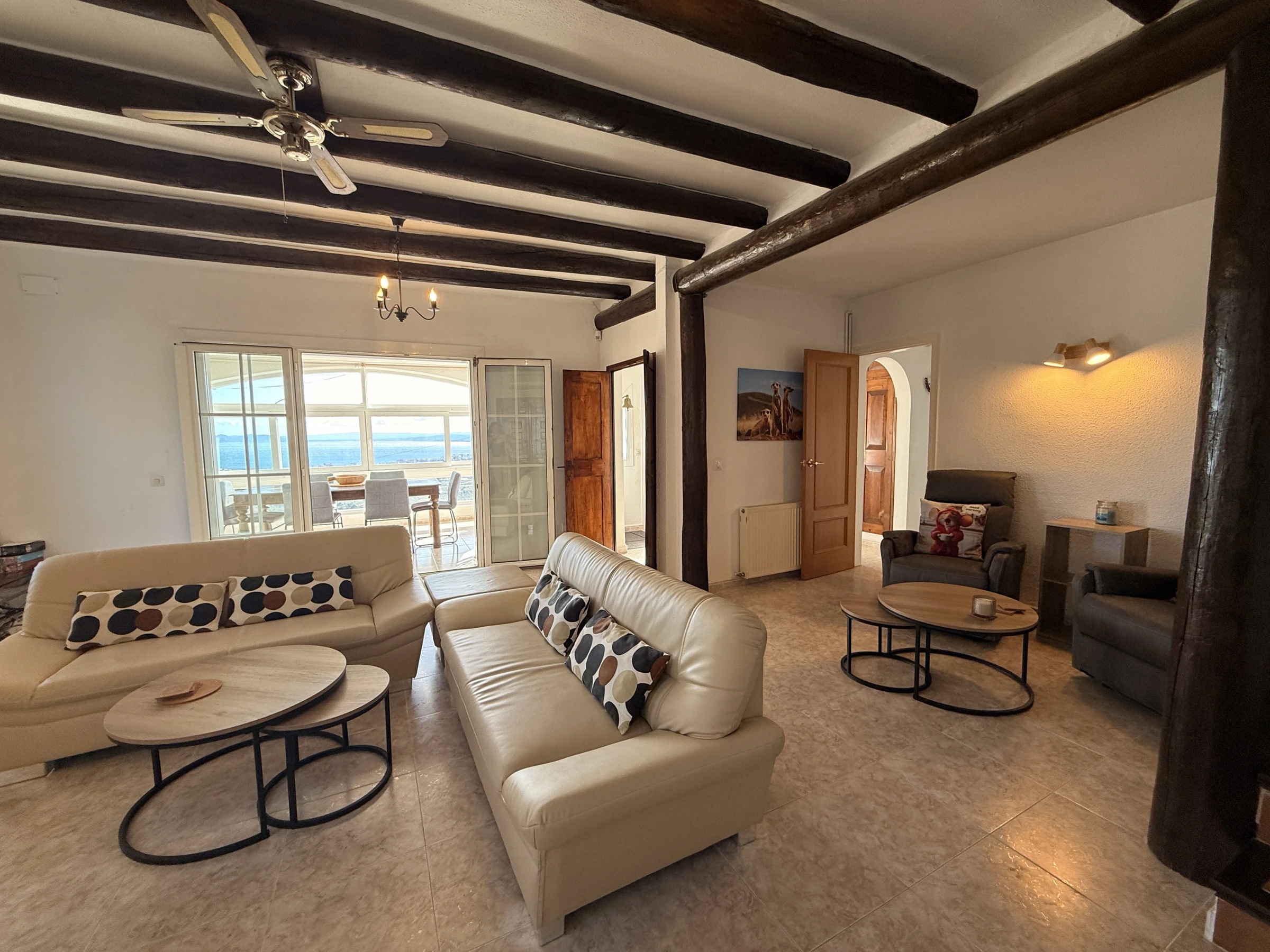 The living room, with views of the impressive bay, is a bright and cozy place.