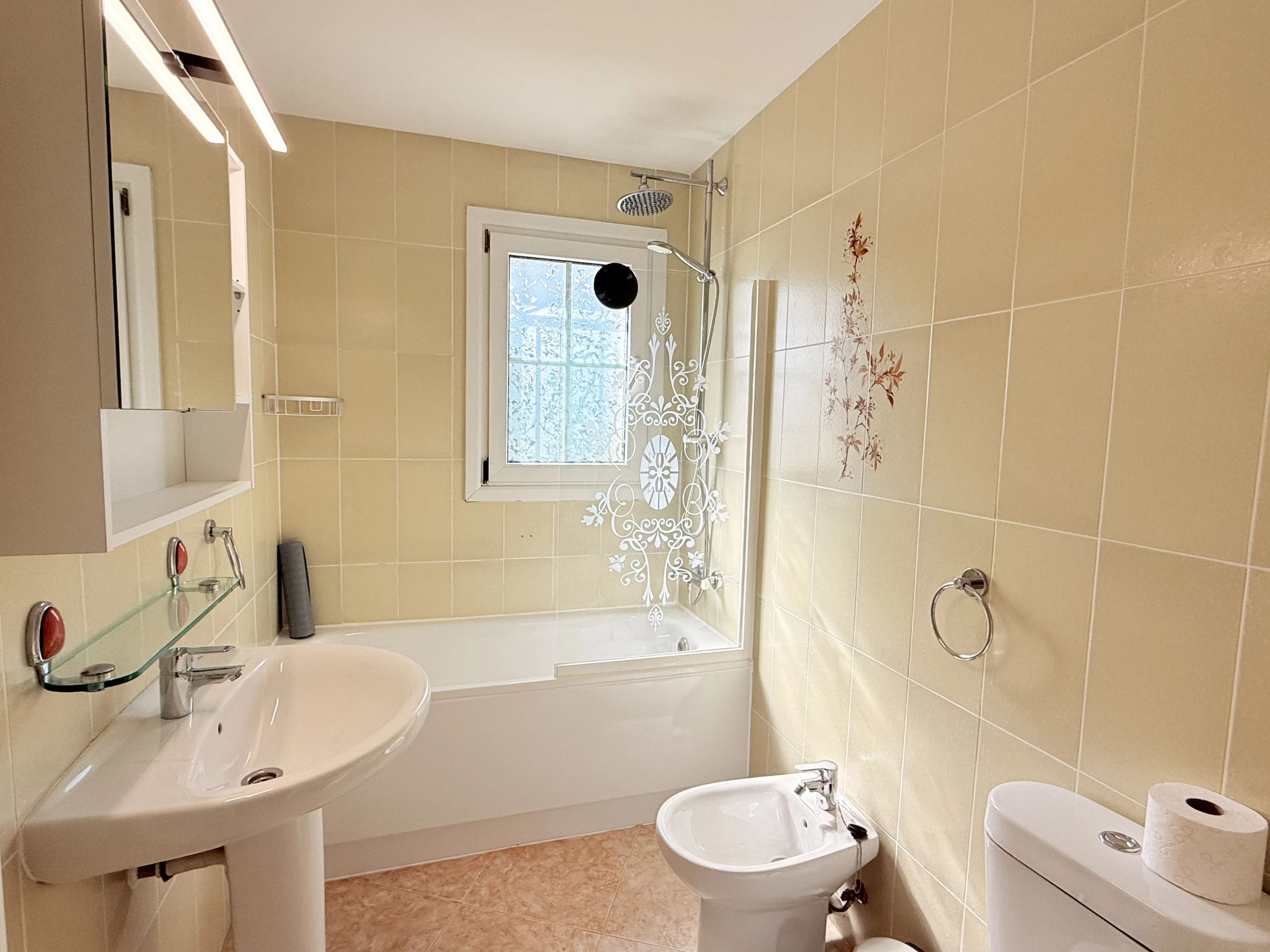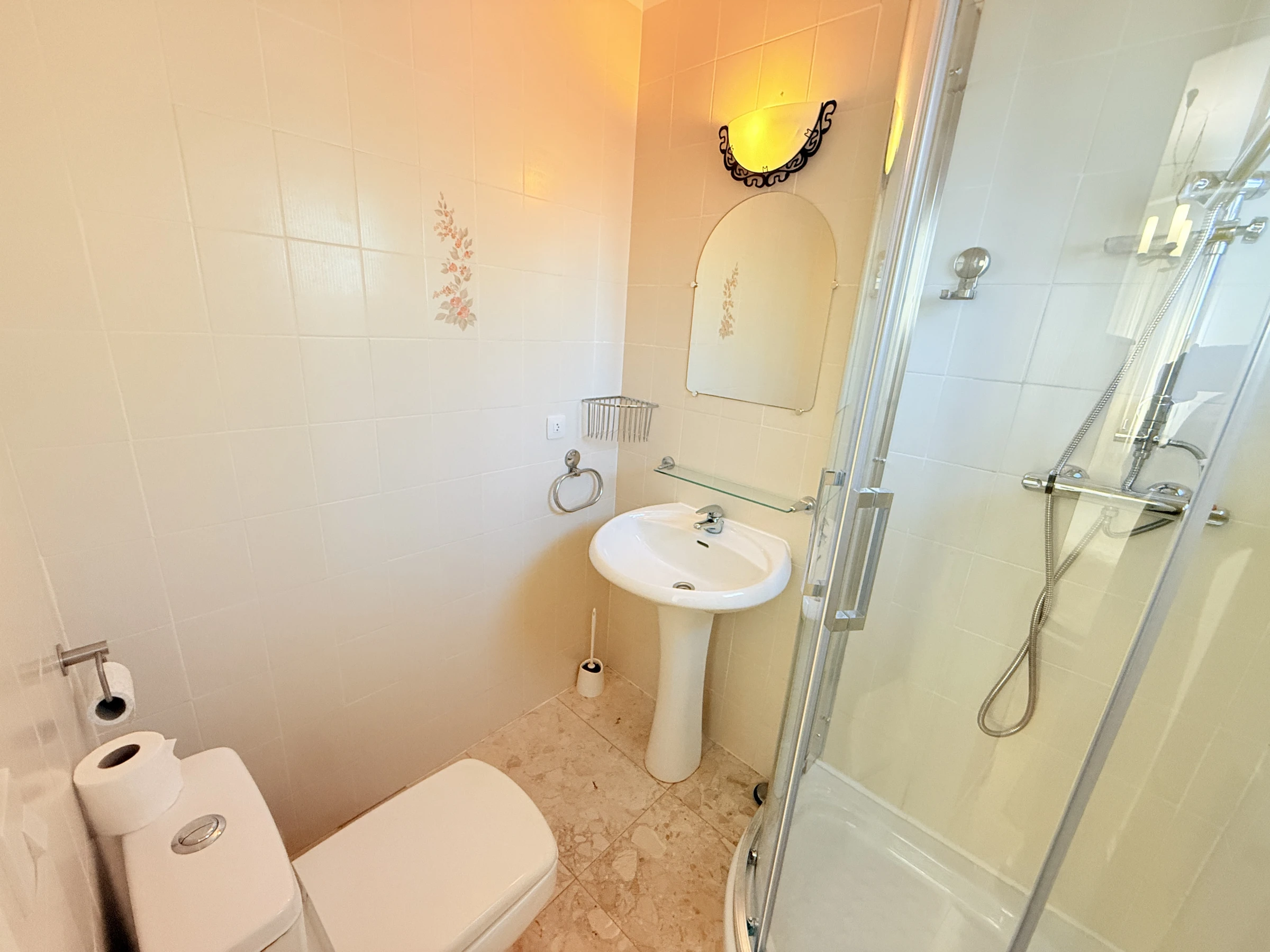 On the ground floor, at the level of the pool, you will find an additional studio with a double bed and its own bathroom with a shower.